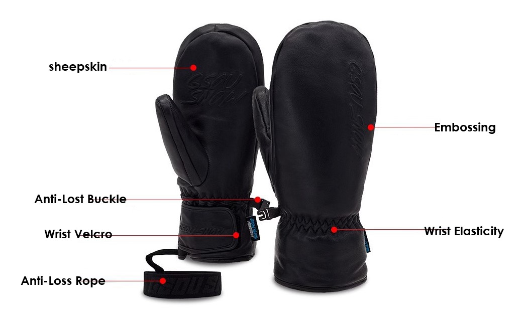 Women sheepskin snow gloves waterproof ski snowboard mittens hiking cold weather glove