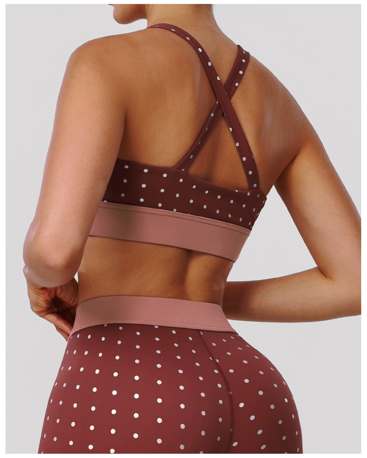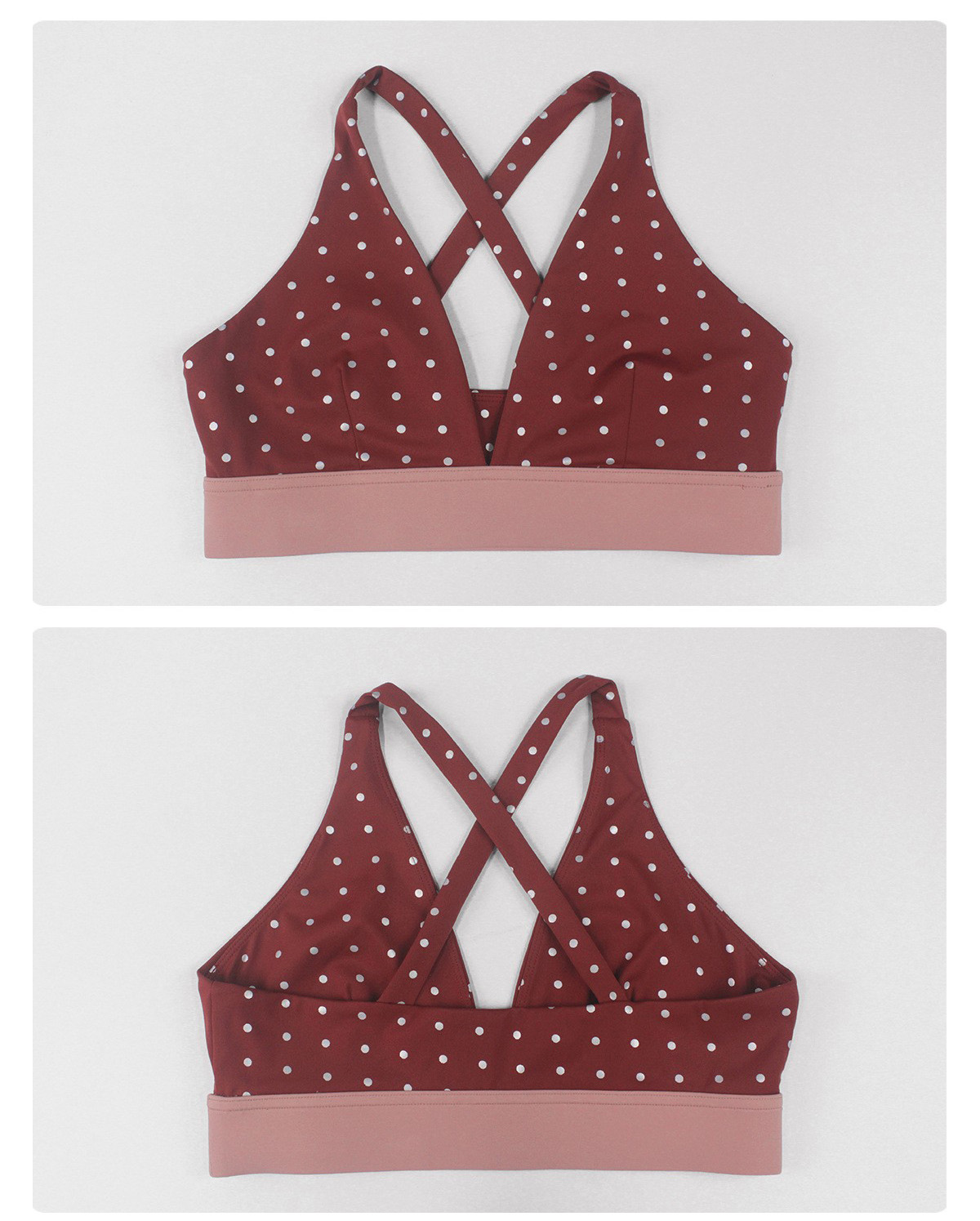 Bulk Custom Cross Beauty Back Yoga Bra – Color Block Polka Dot High-Stretch Sexy Gym Running Activewear