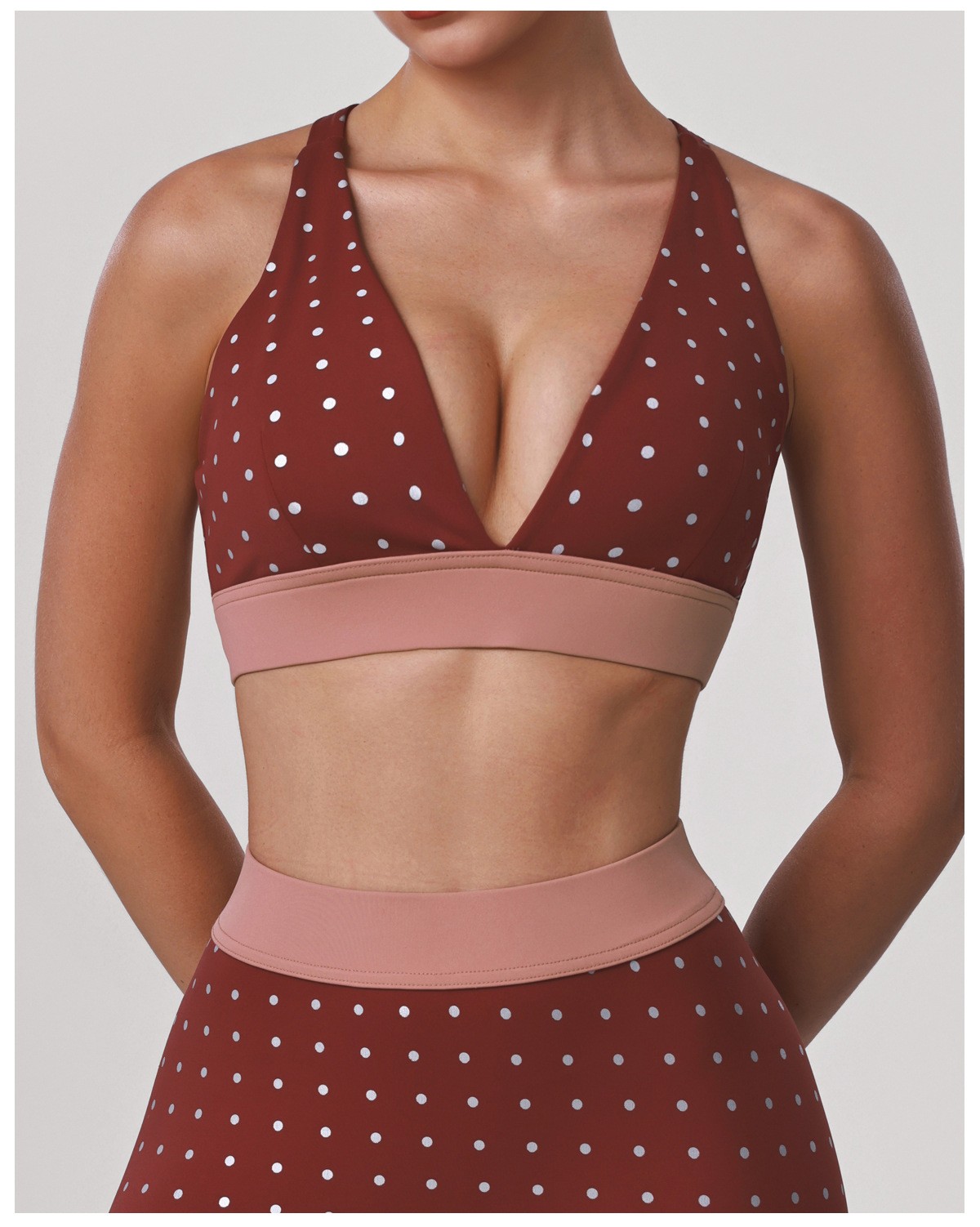 women's color block polka dot yoga bra