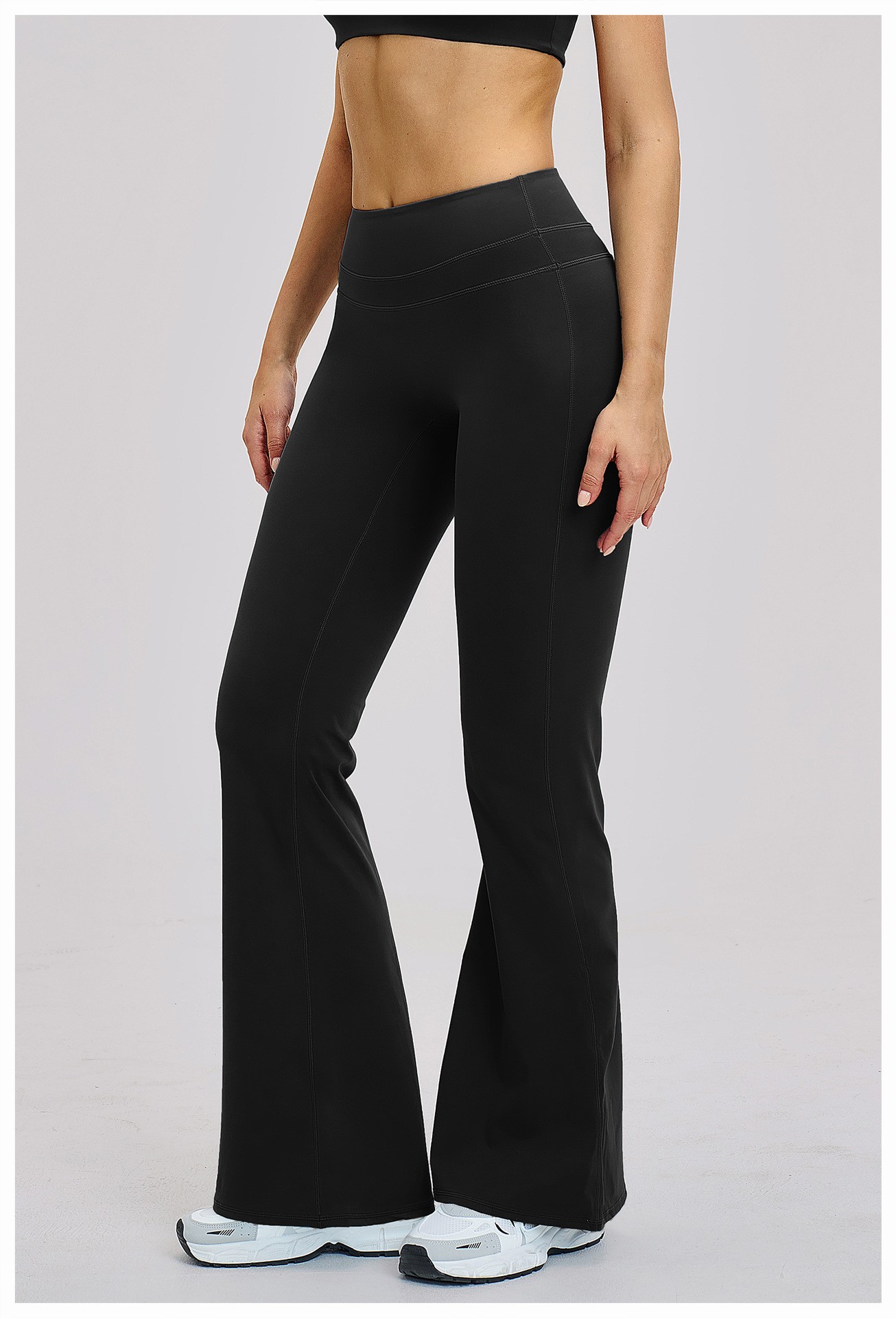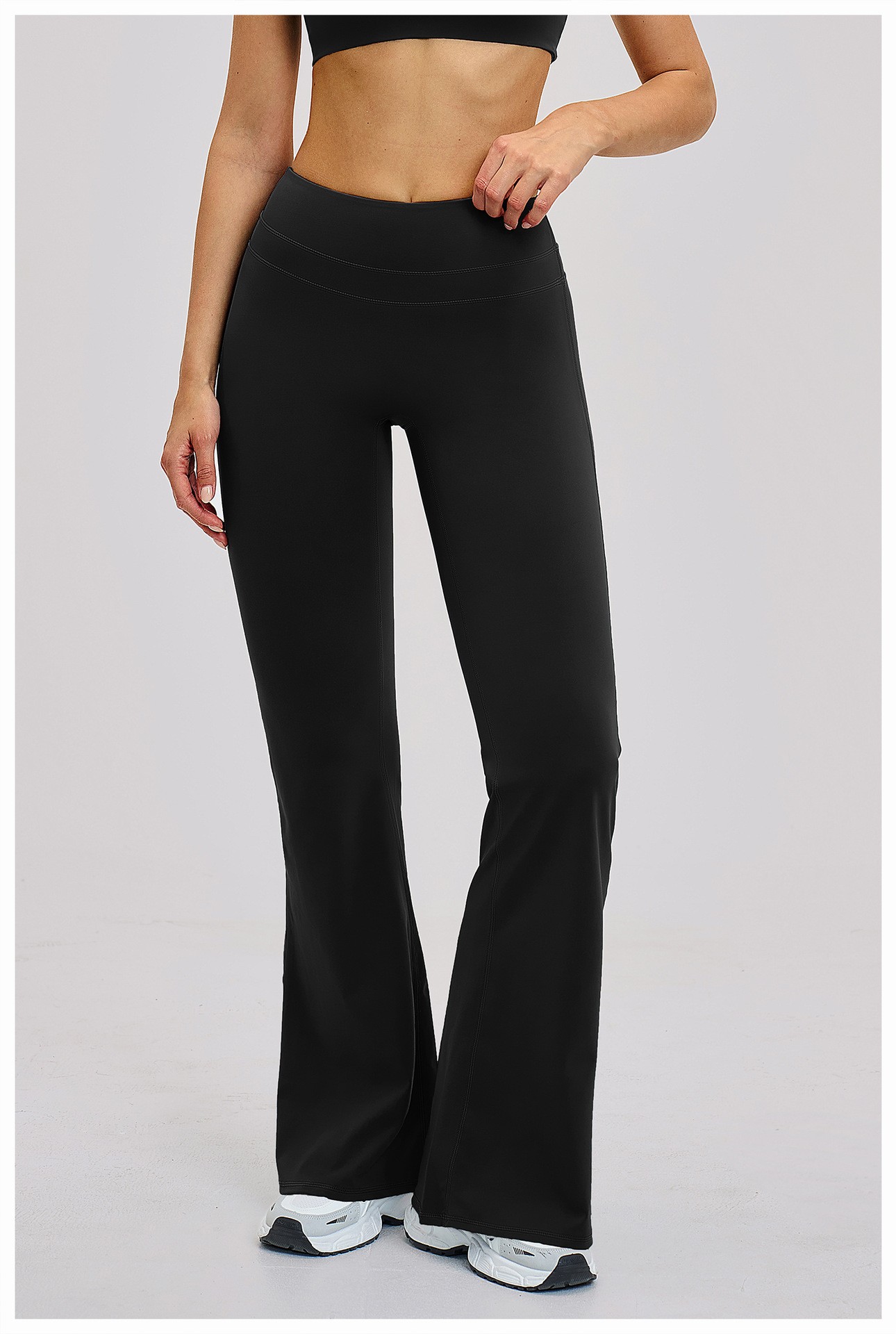 Bulk Custom High Waist Bootcut Yoga Pants - Breathable Butt Lifting Fitness Gym Pants: Women's high waist flared yoga pants with butt lifting design, tummy control high waistband, slim fit and stylish flare leg. Breathable, moisture-wicking, soft and high stretch fabric for yoga, gym, fitness and daily wear. Comfortable, no see-through, no chafing. Perfect for shaping hips and legs. Support custom logo, color, size XS-5XL, flexible MOQ for wholesale.