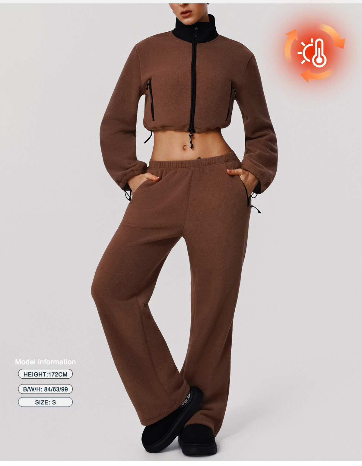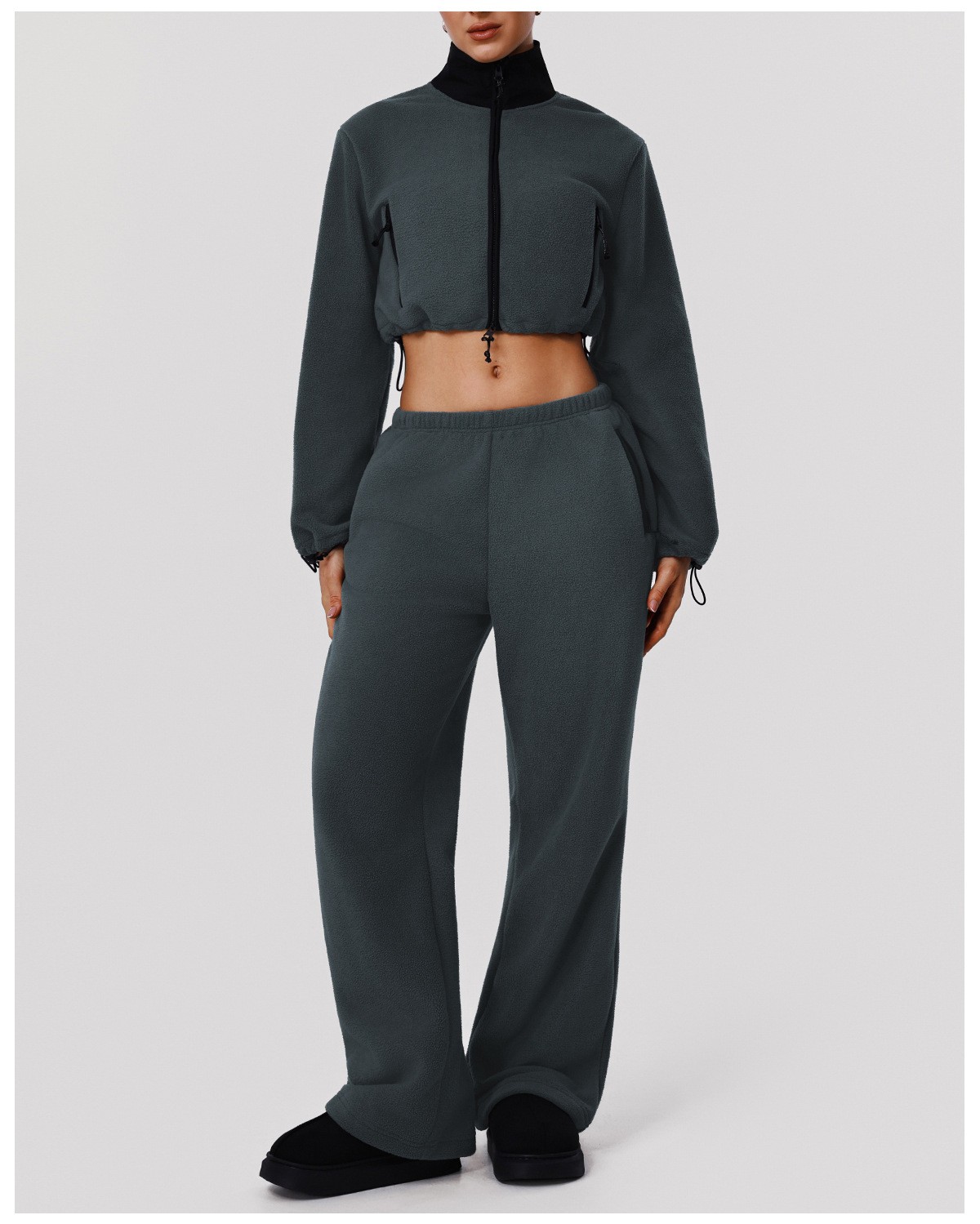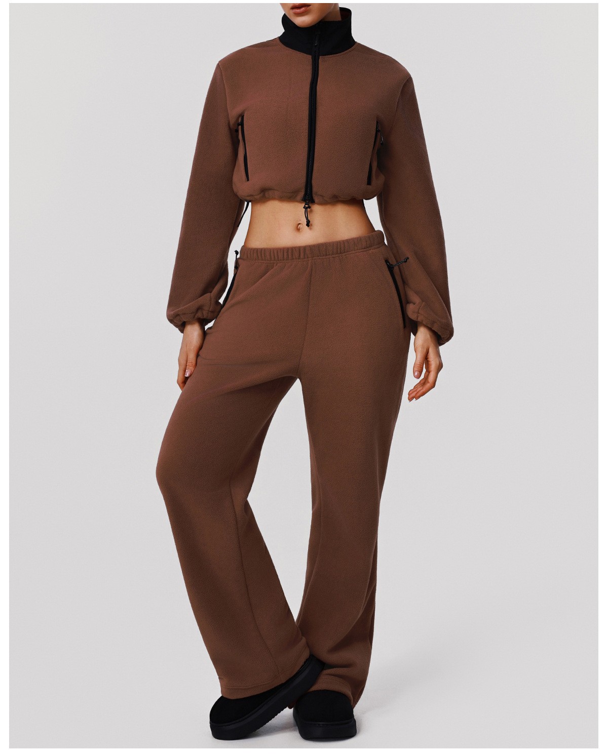 Custom Fleece Lounge Set – Women’s Winter Warm Stand Collar Jacket & Wide-Leg Pants Sports Suit