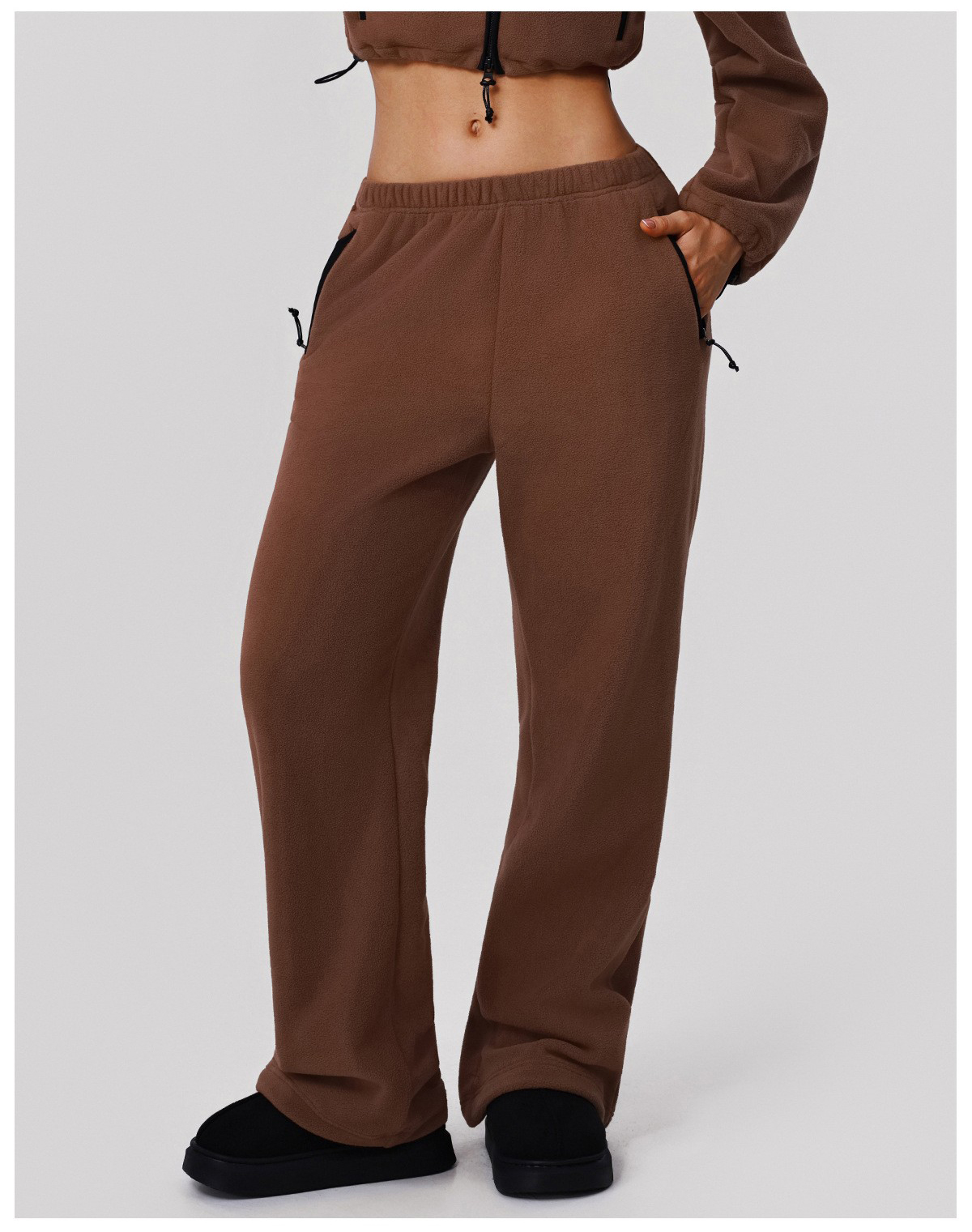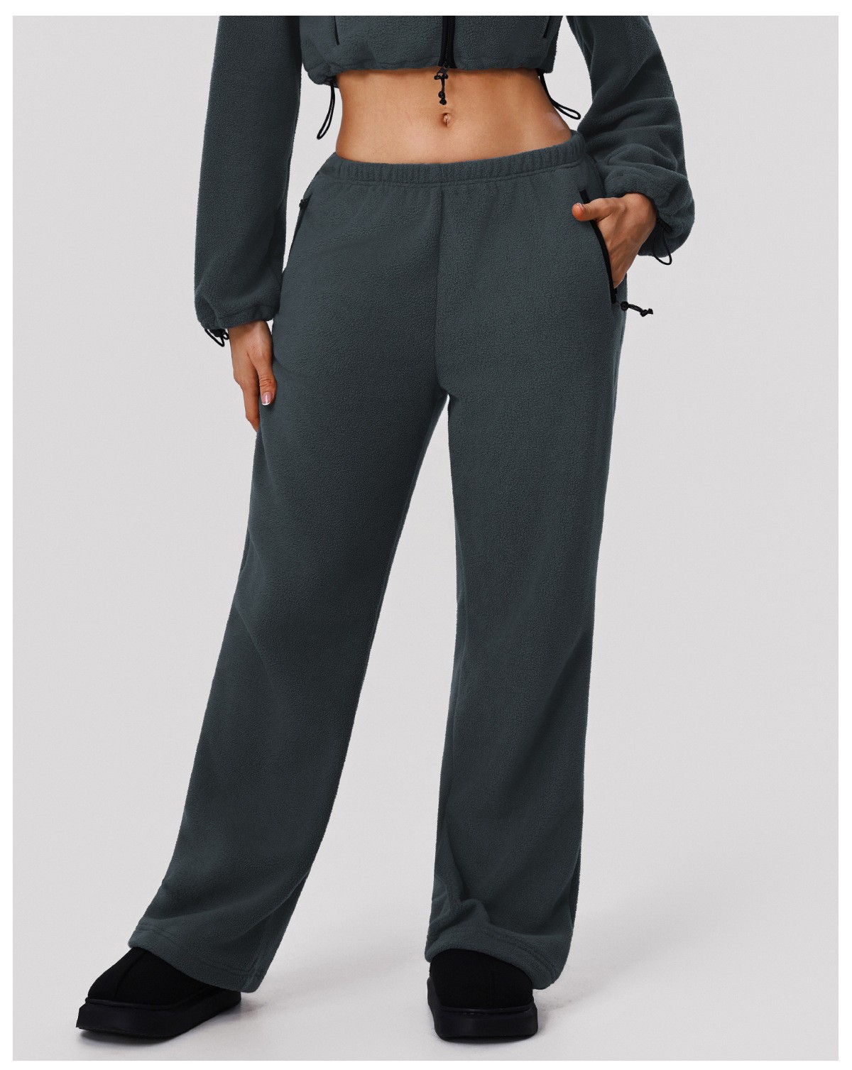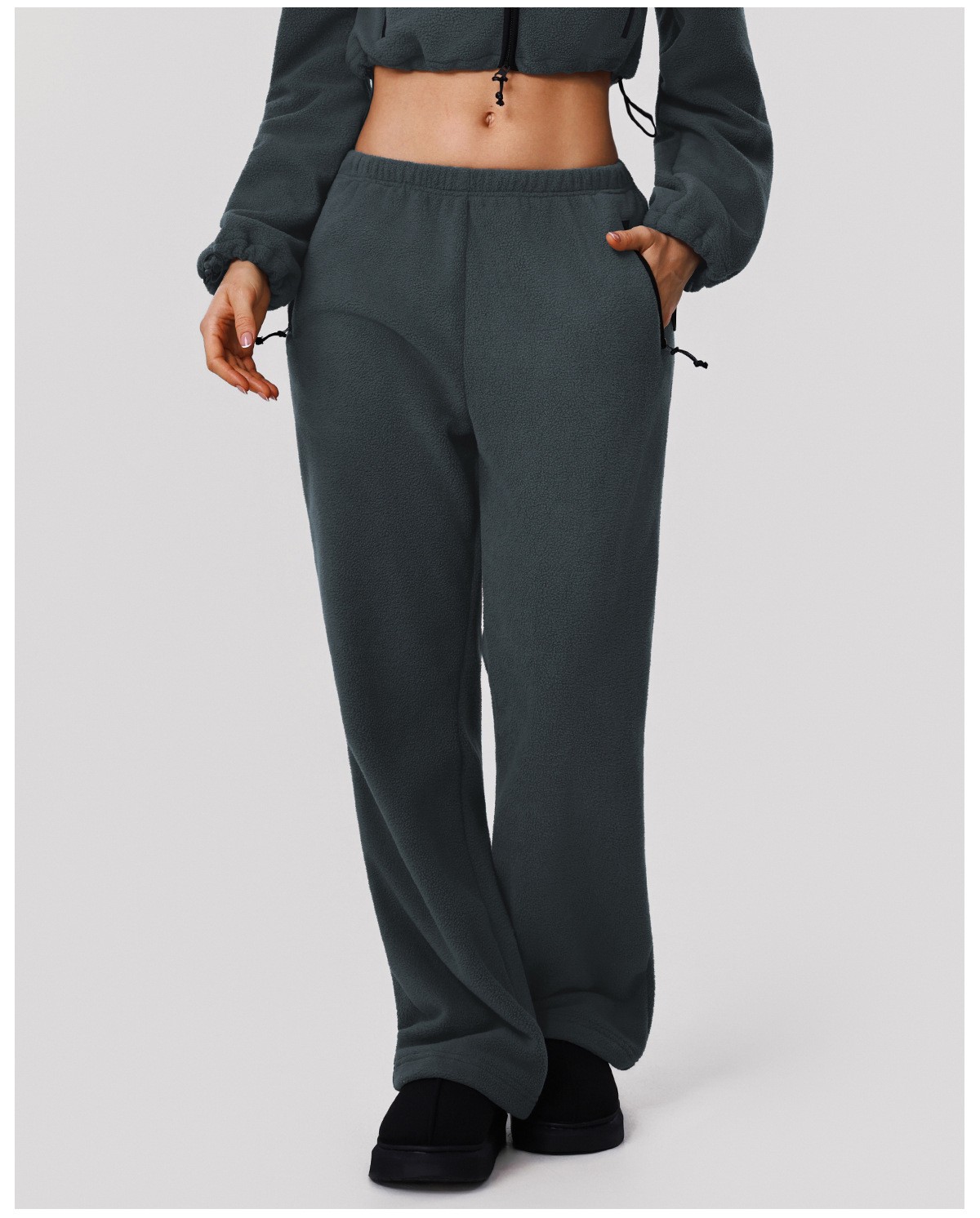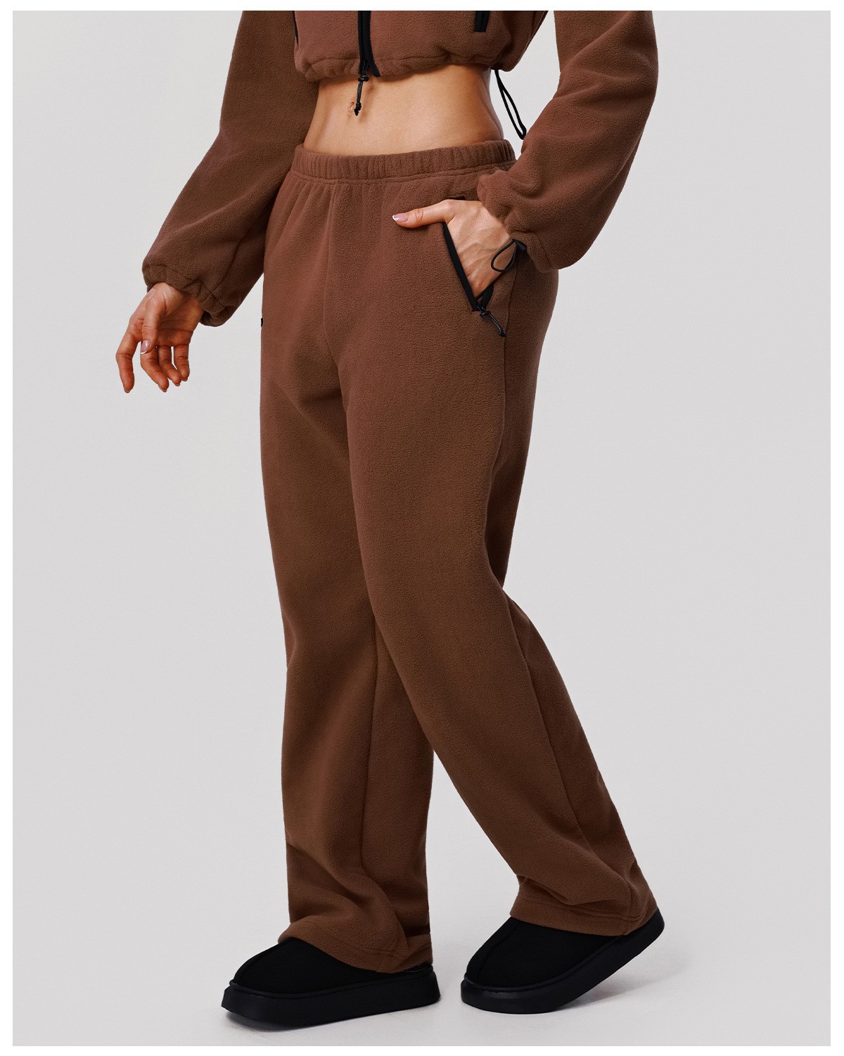 Custom Fleece Lounge Set – Women’s Winter Warm Stand Collar Jacket & Wide-Leg Pants Sports Suit