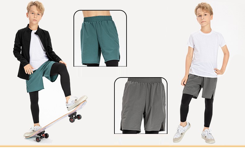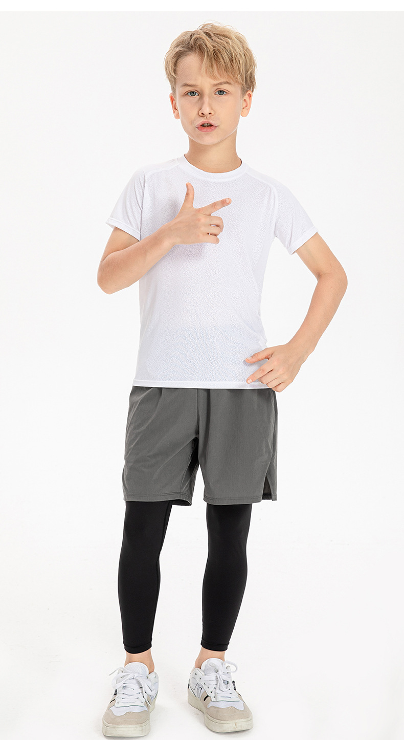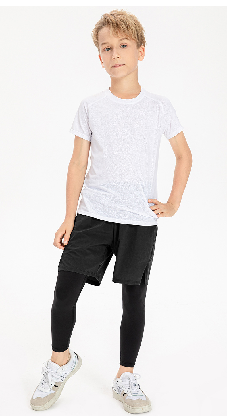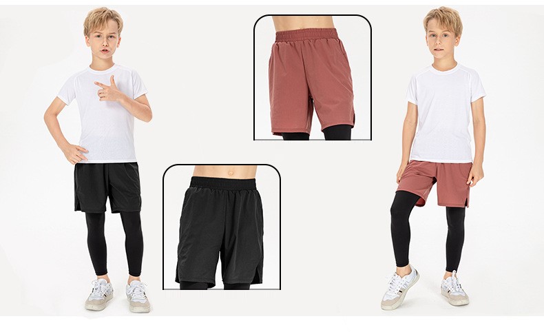 Children fake two piece sports pants breathable quick dry running loose basketball sweatpants