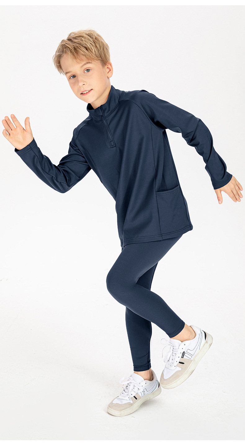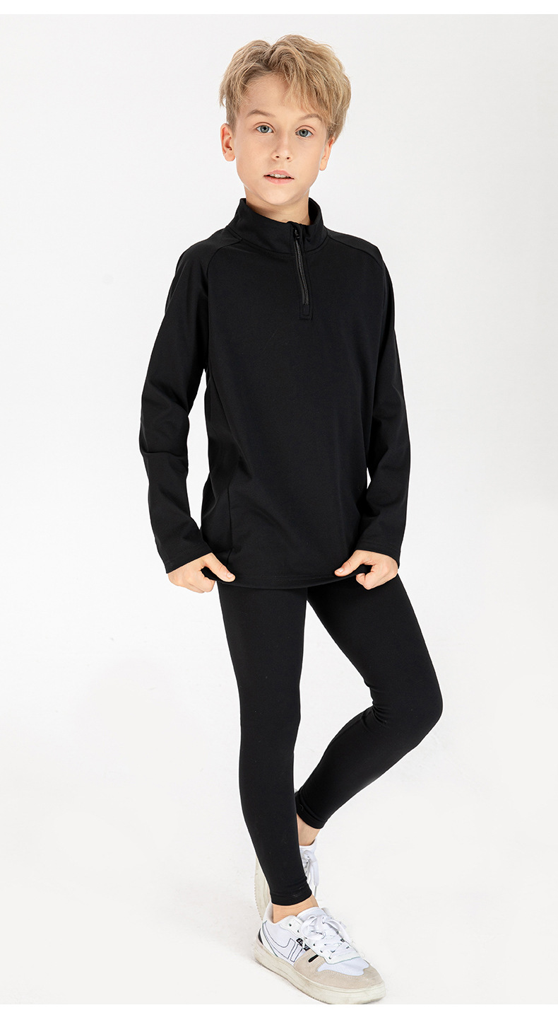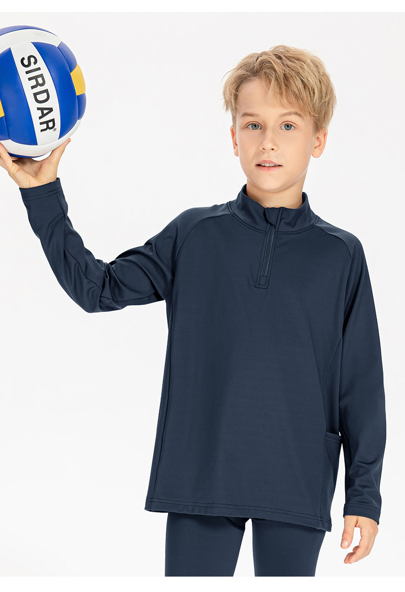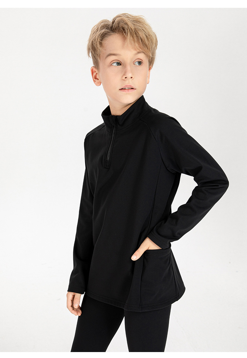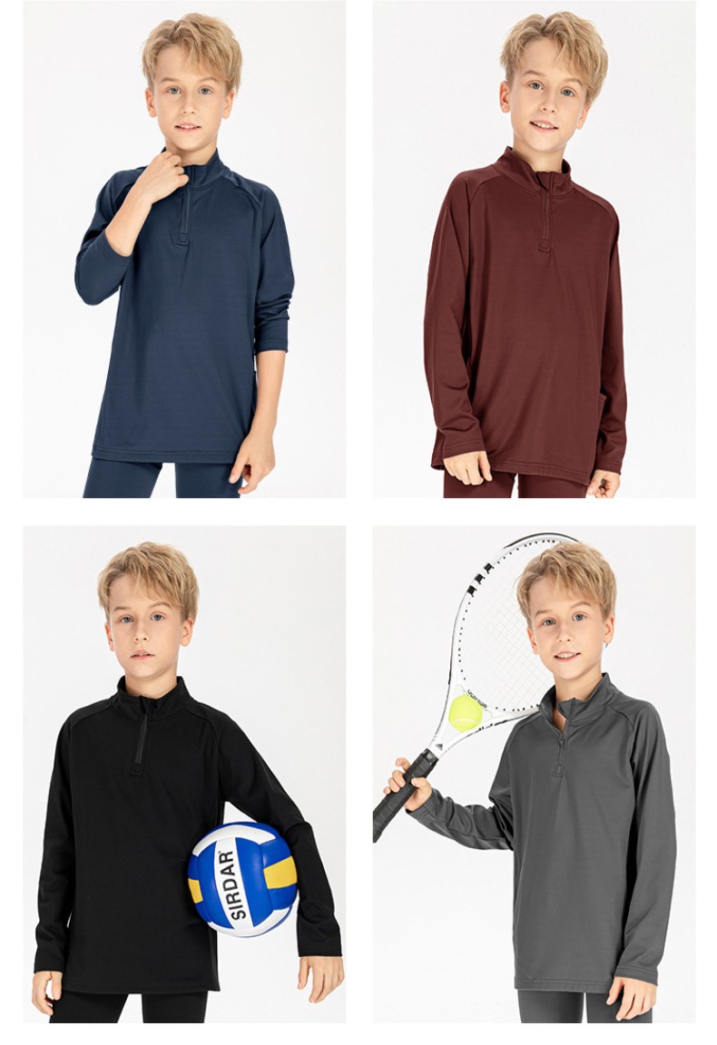 Children long sleeve 1/4 zip sweatshirts warm loose high stretch running training fitness kids top