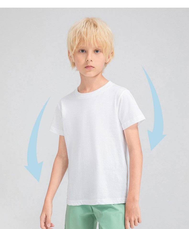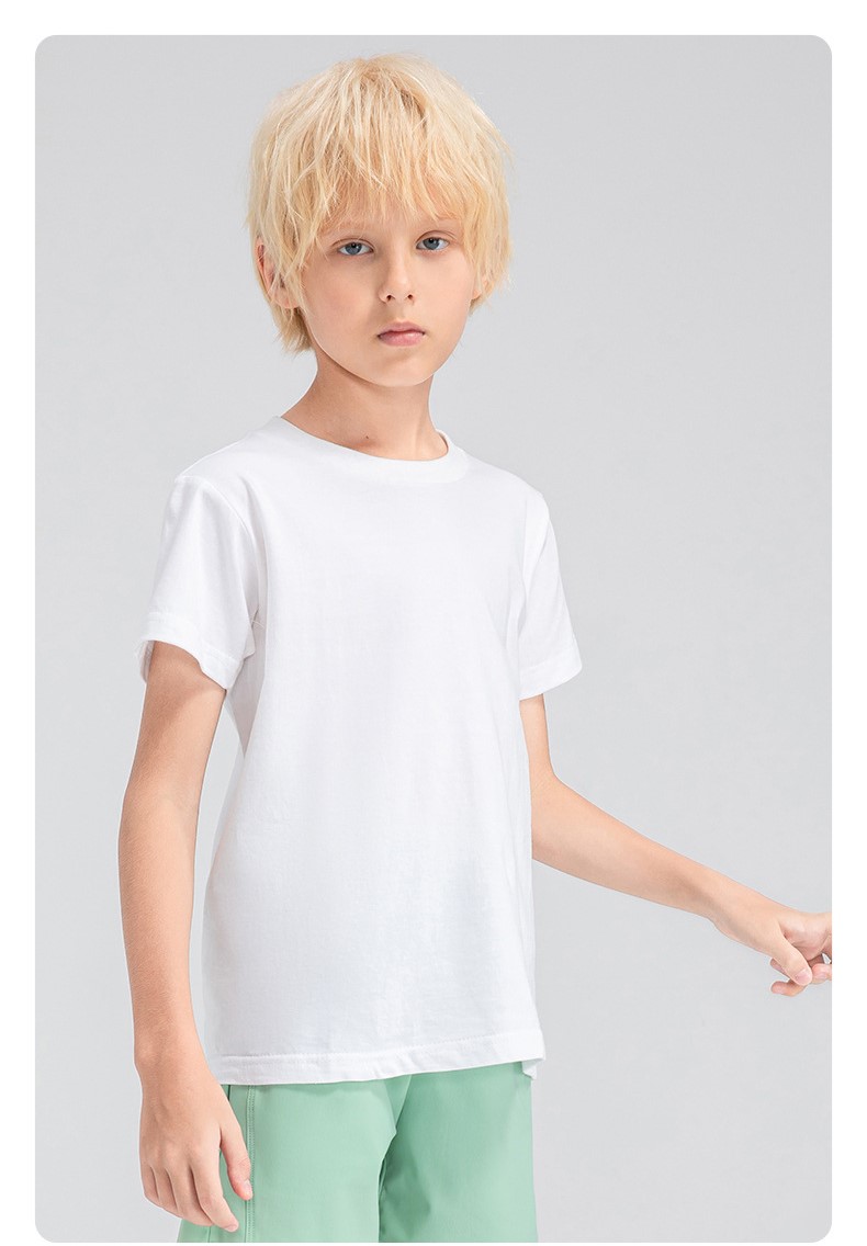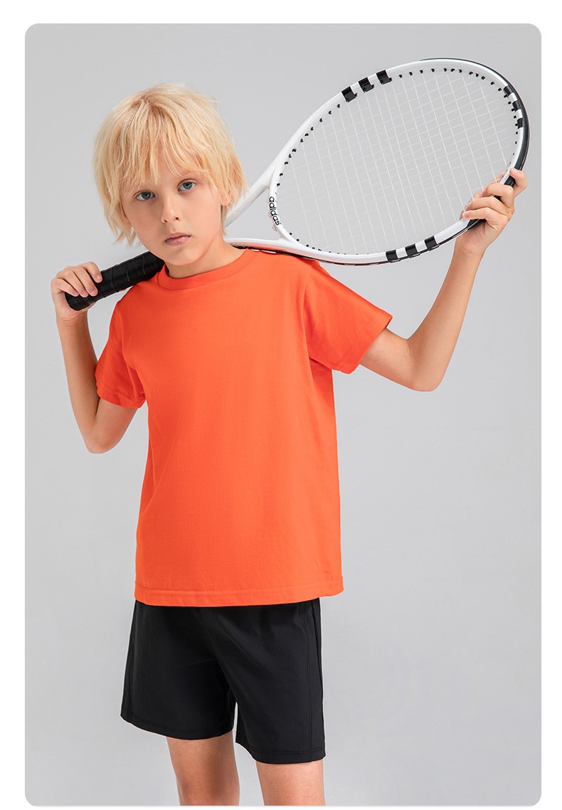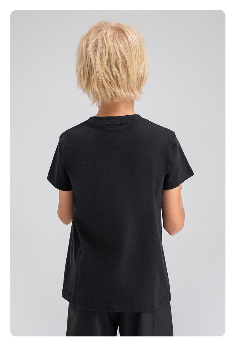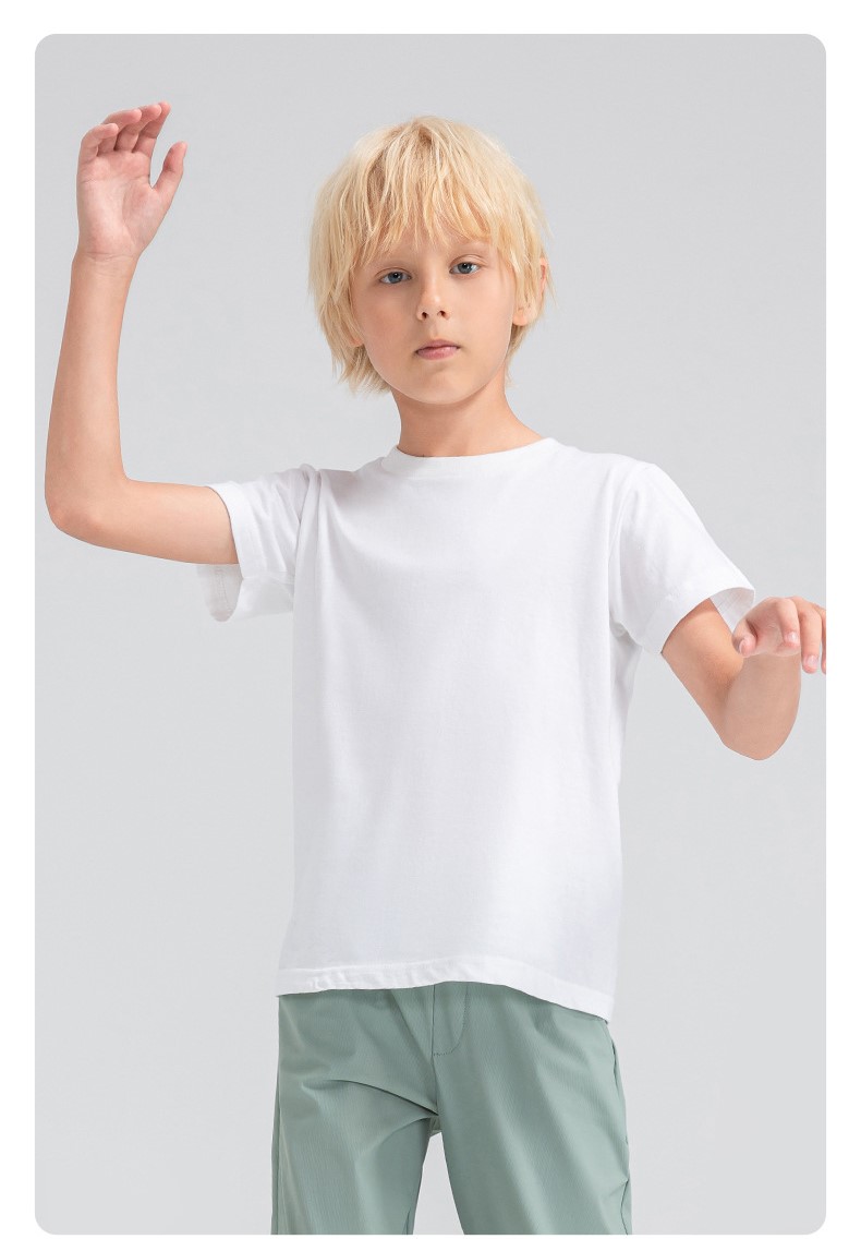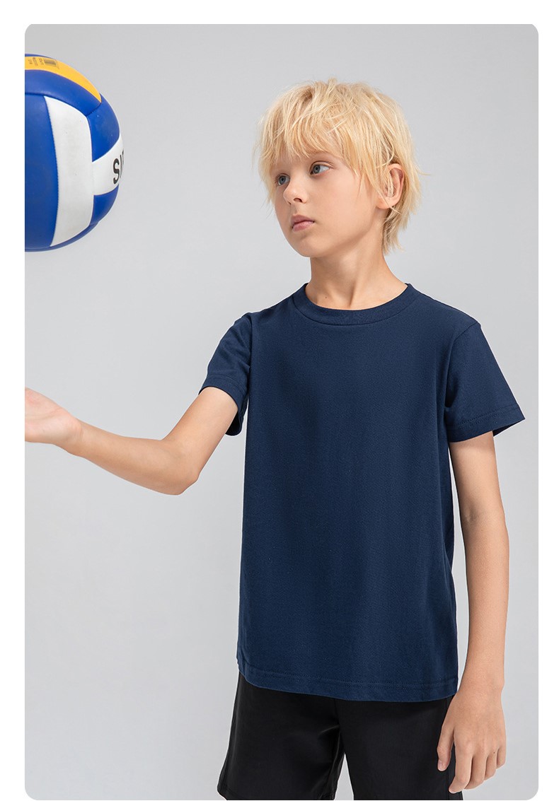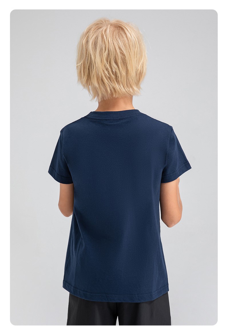 Children round neck 100% cotton loose short sleeve t-shirts breathable active running fitness top