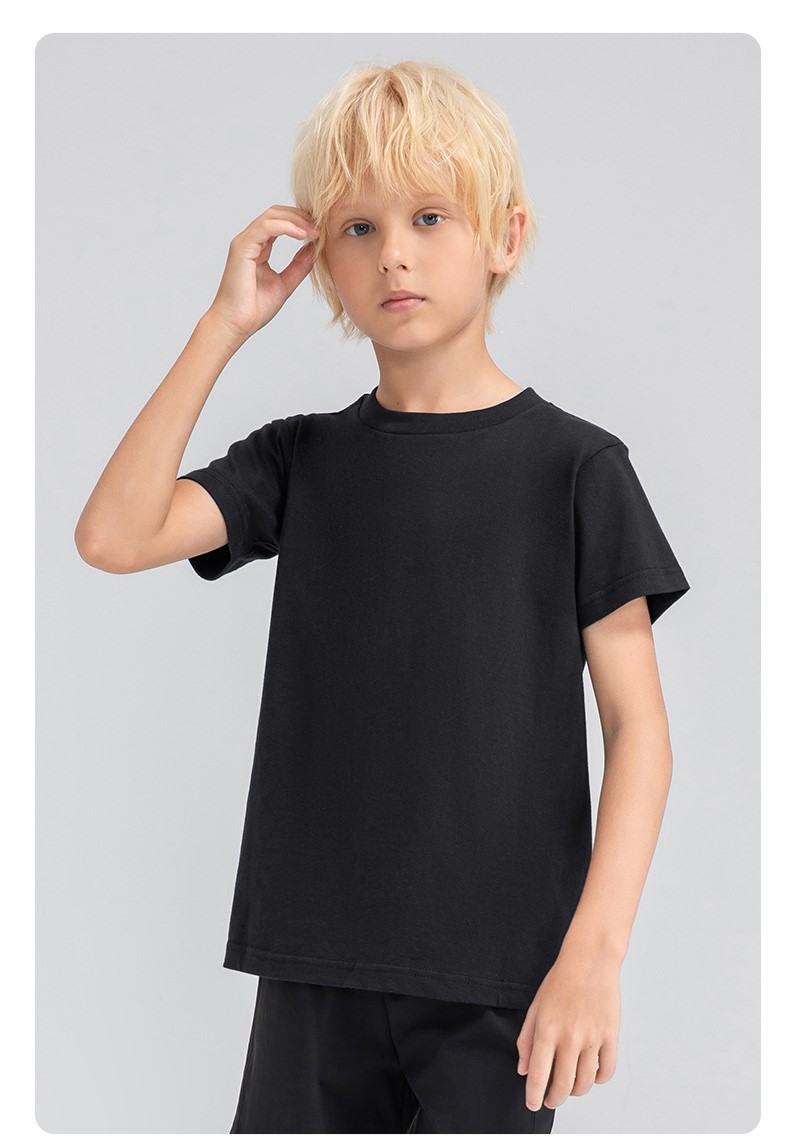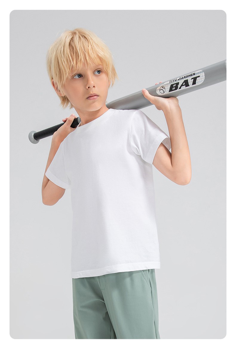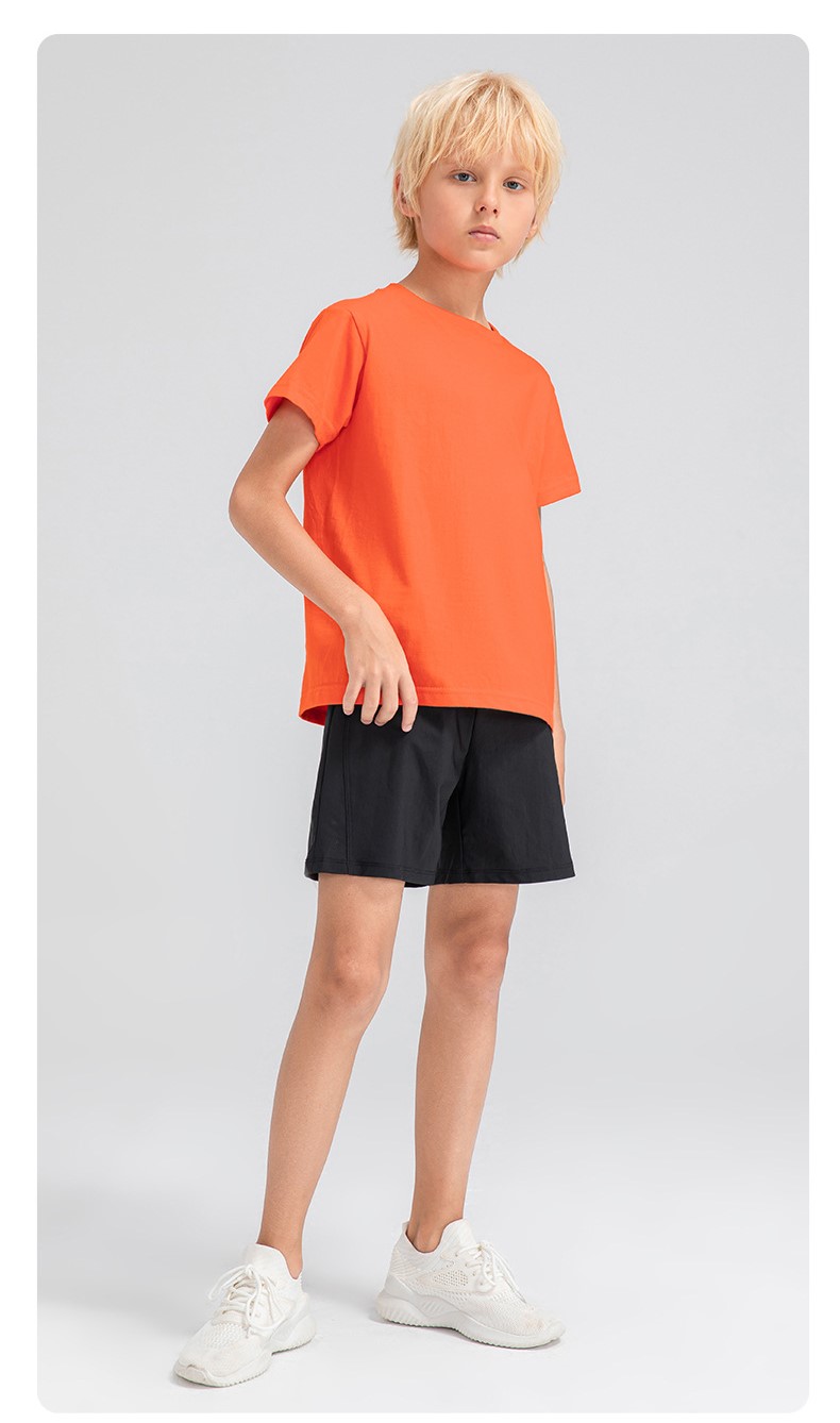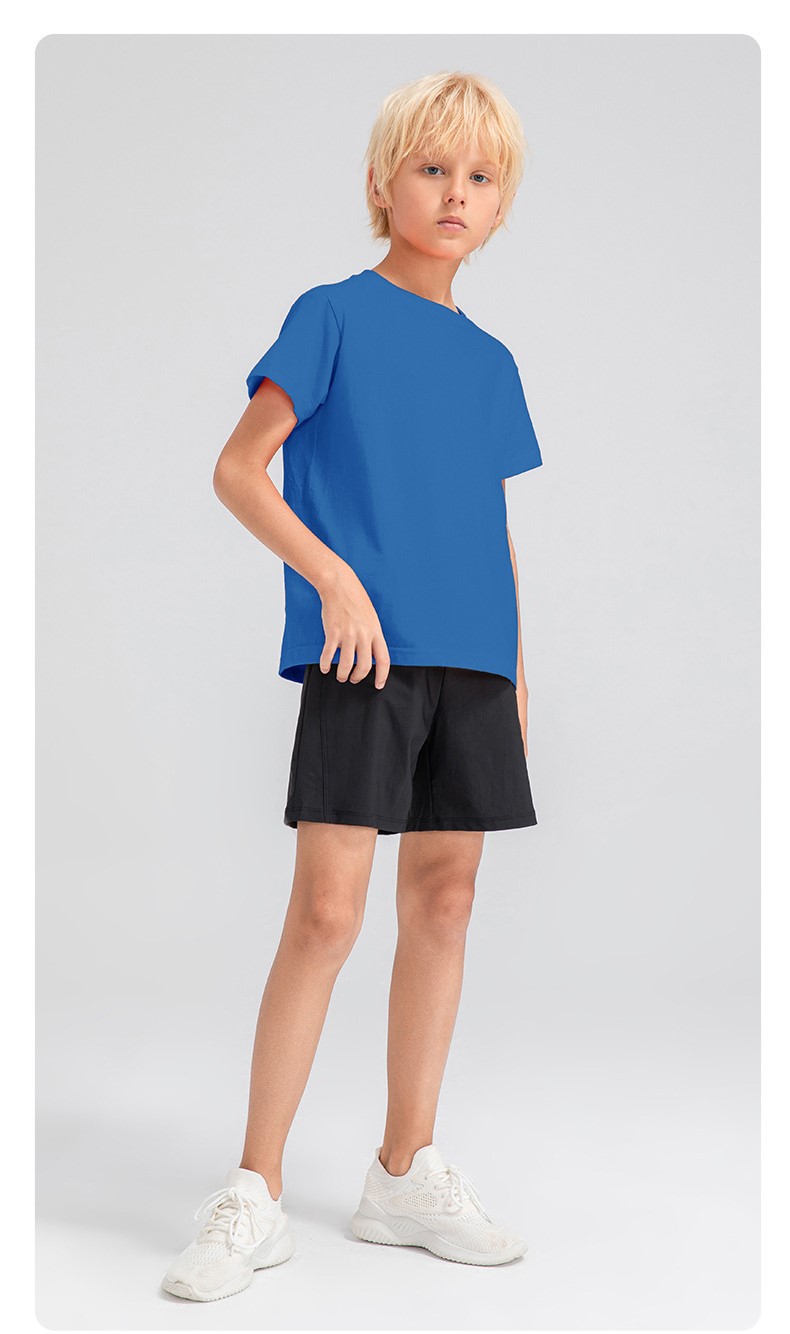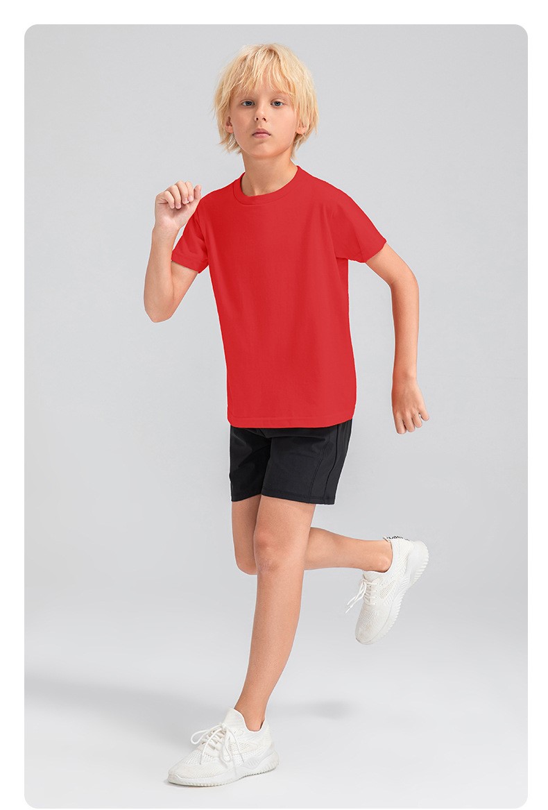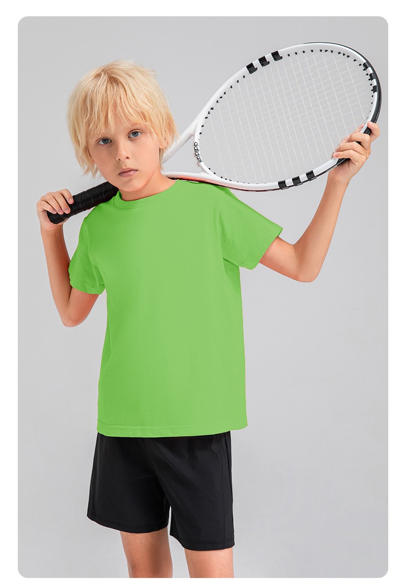 Children round neck 100% cotton loose short sleeve t-shirts breathable active running fitness top