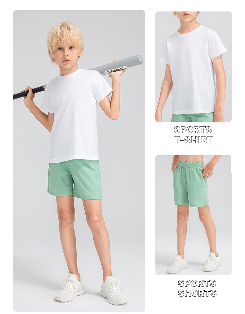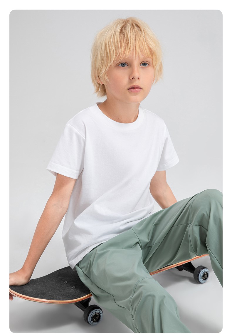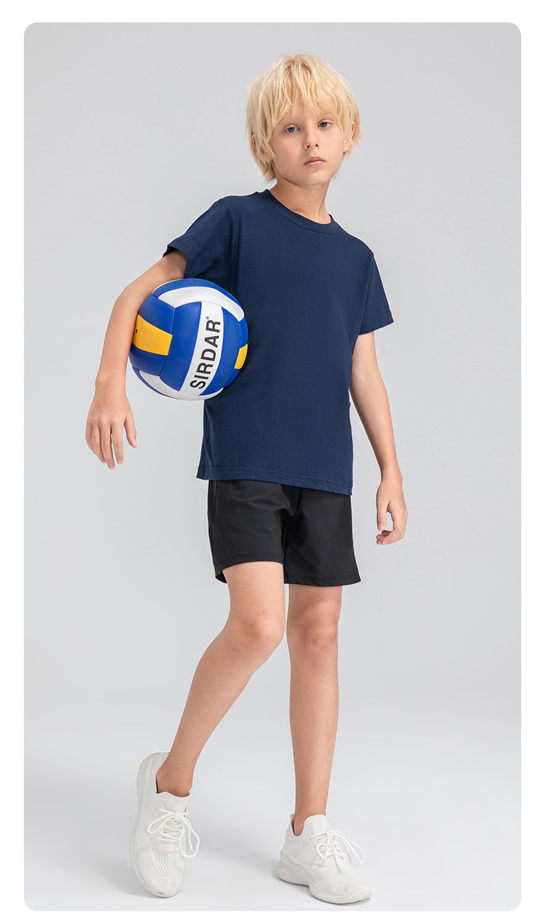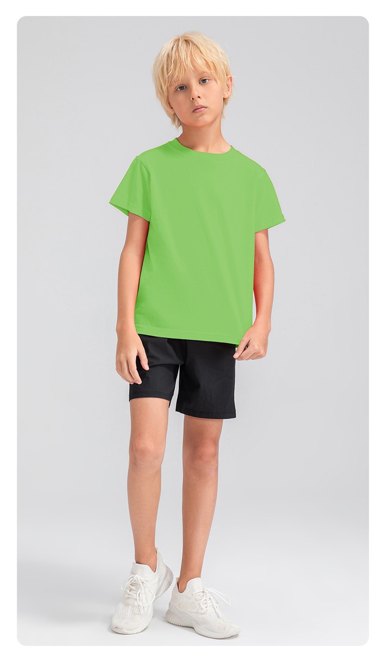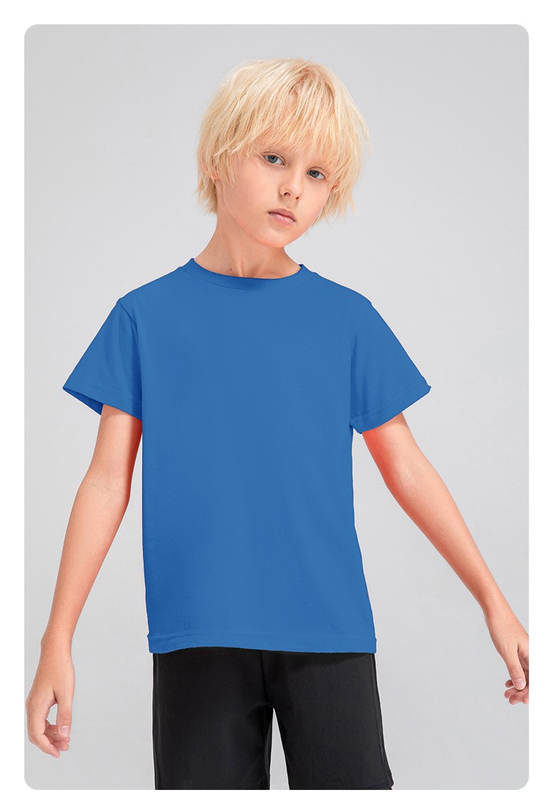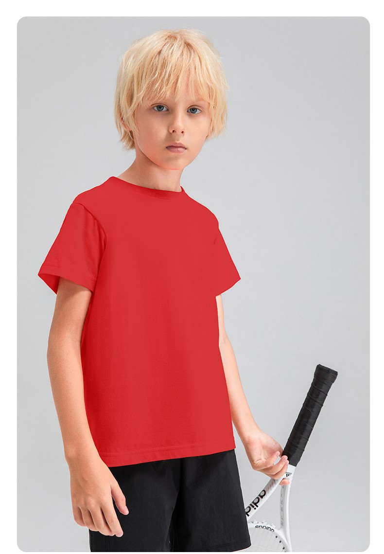 Children round neck 100% cotton loose short sleeve t-shirts breathable active running fitness top