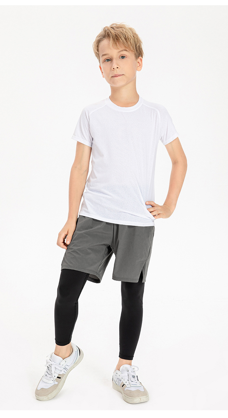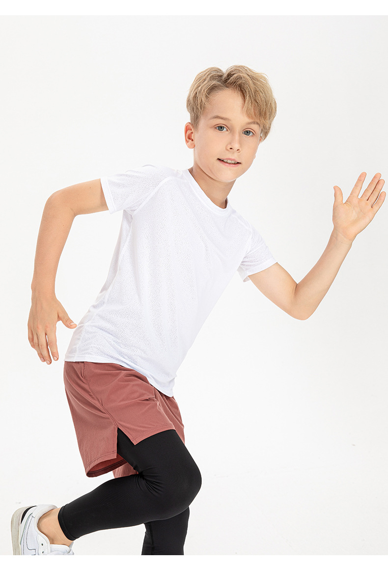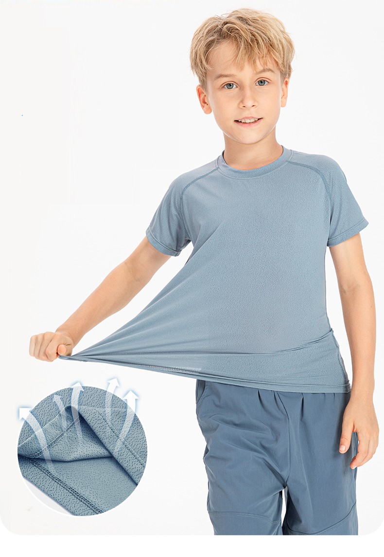 Children short sleeve mesh t-shirts quick dry loose breathable workout fitness kids running tshirt