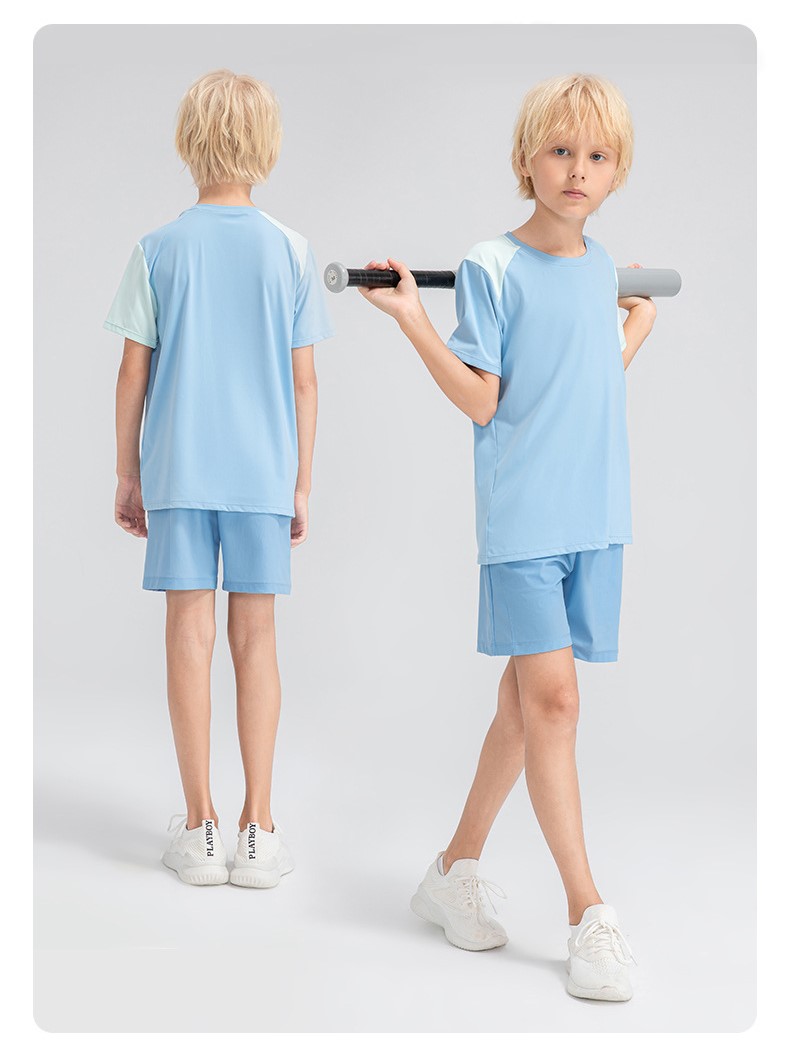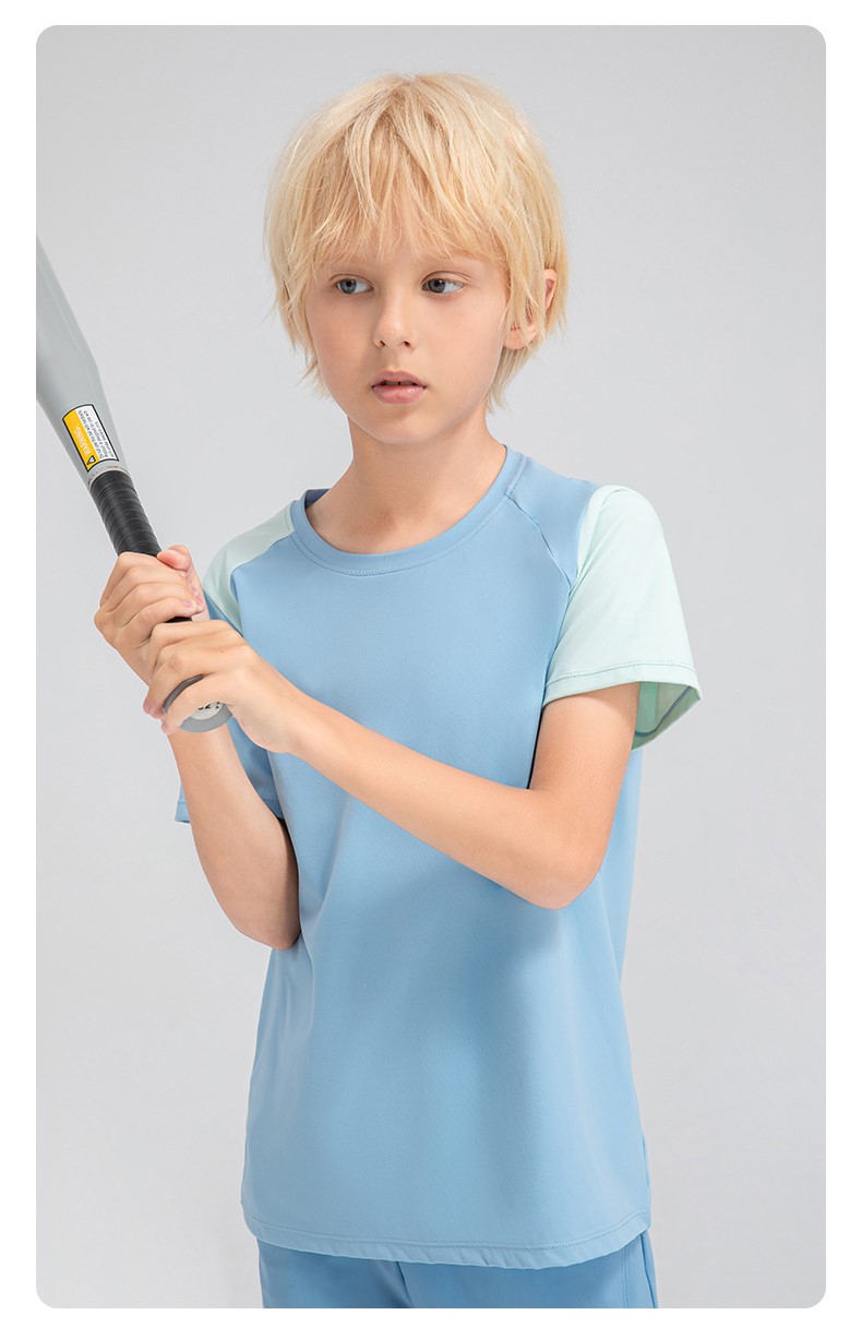 Children summer loose sports short sleeve breathable trainning top color block running t-shirt