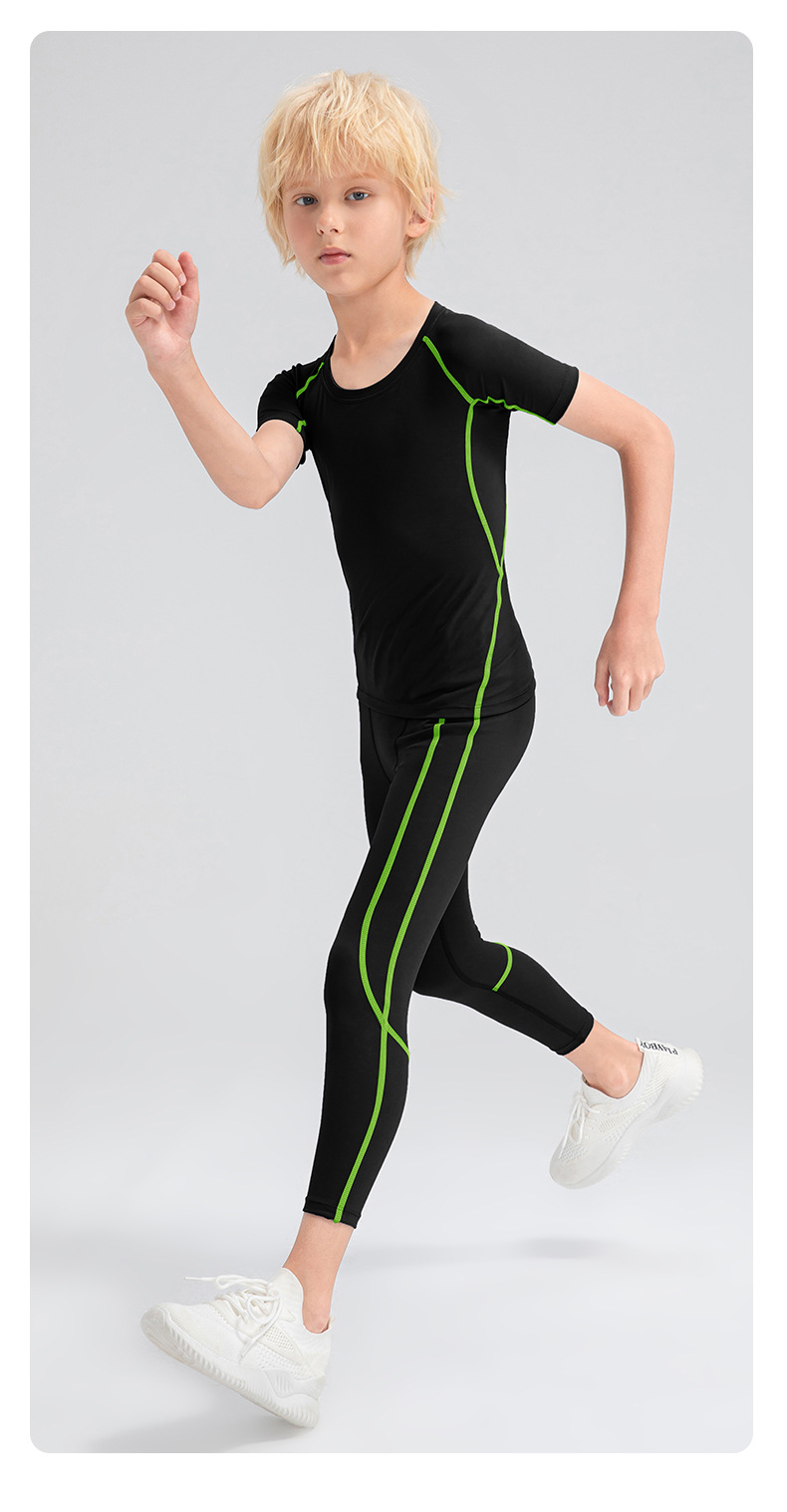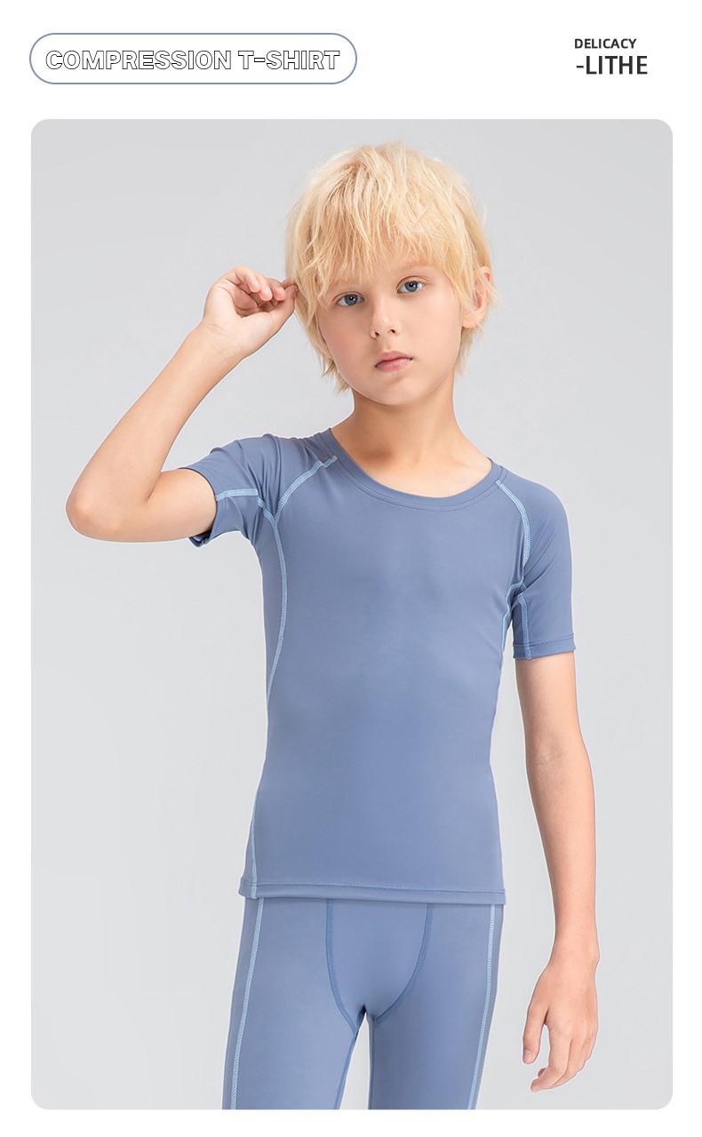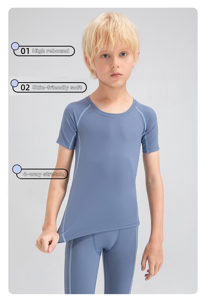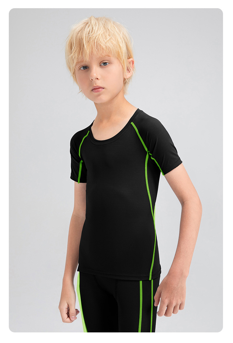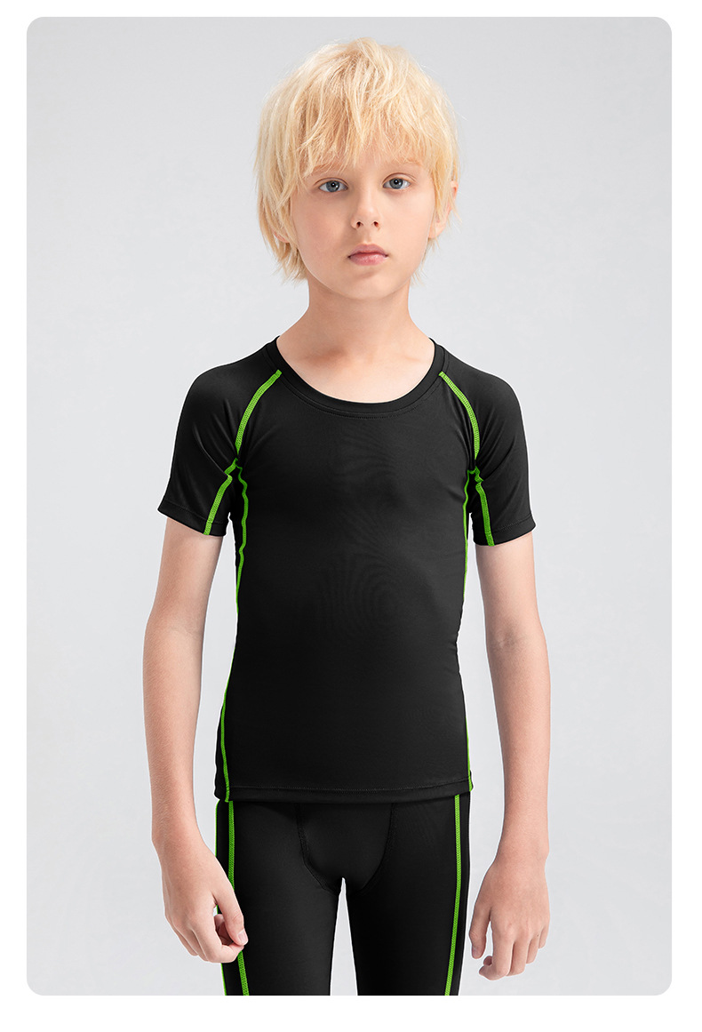 Children tights fitness short sleeve high stretch quick dry basketball training compression tee