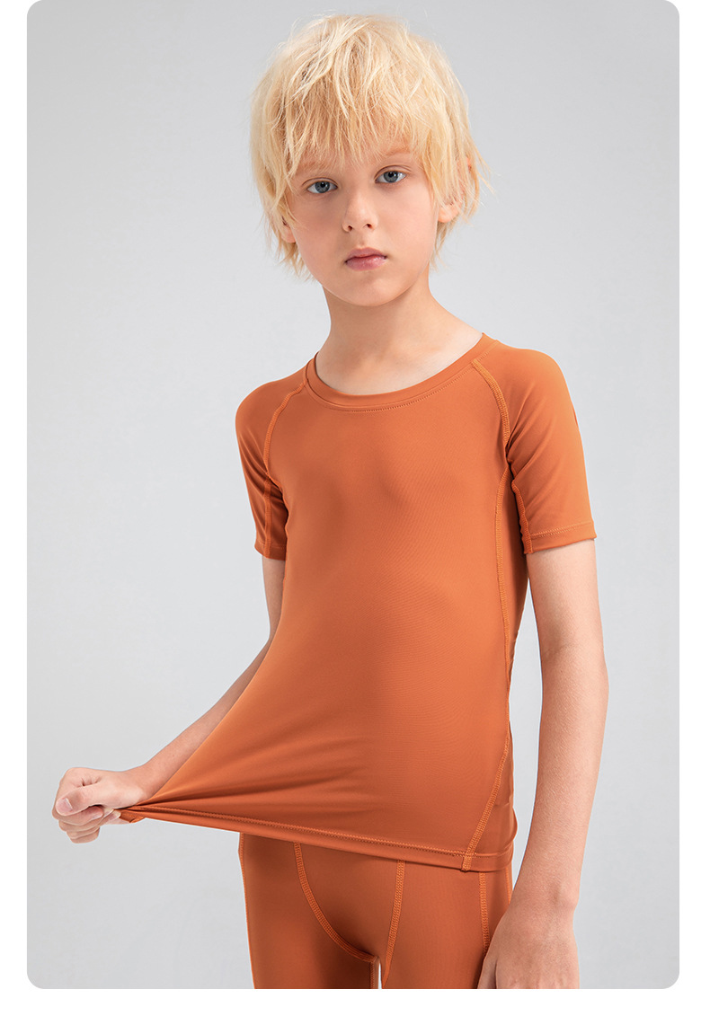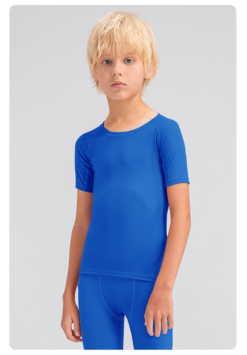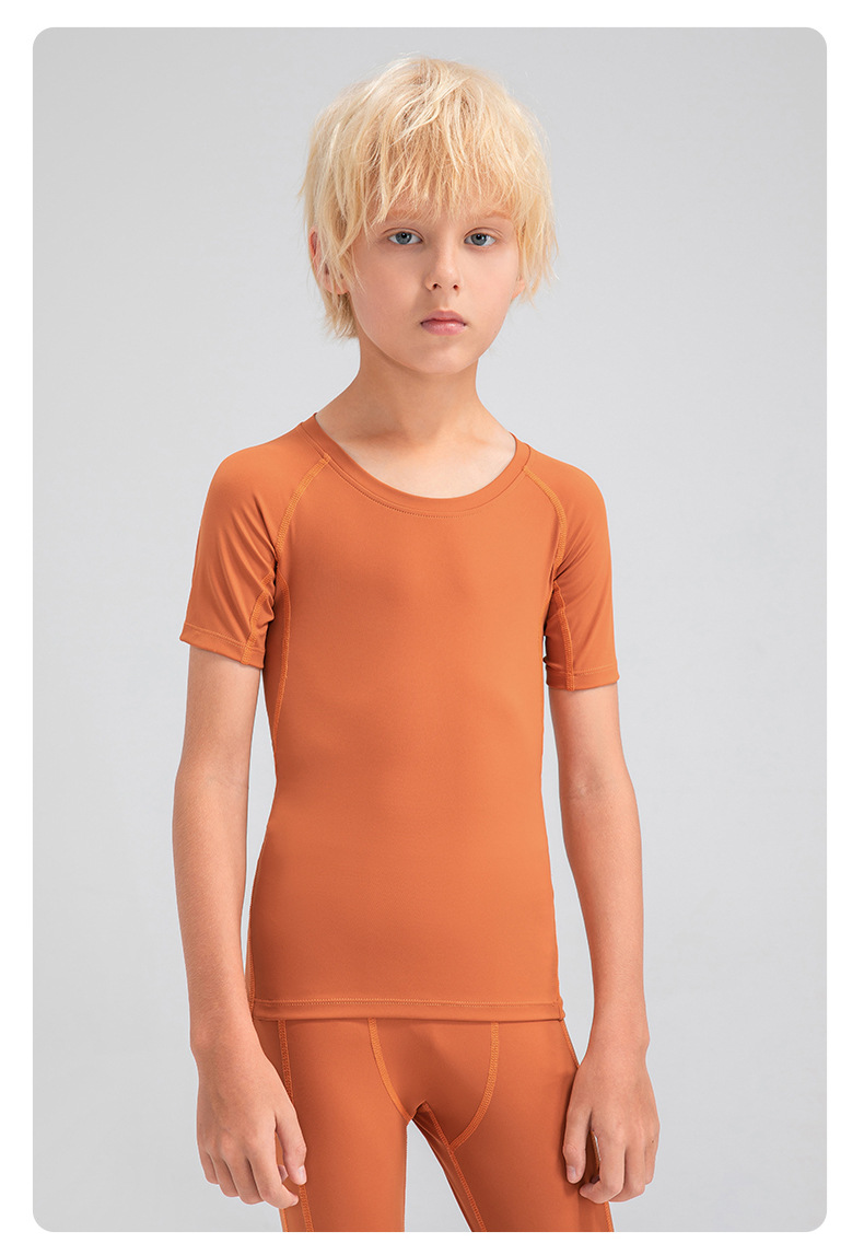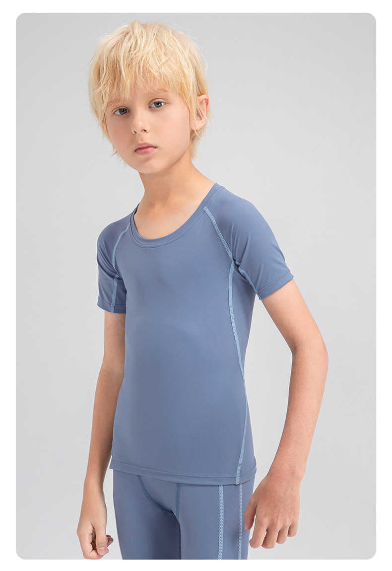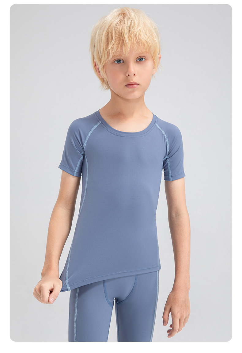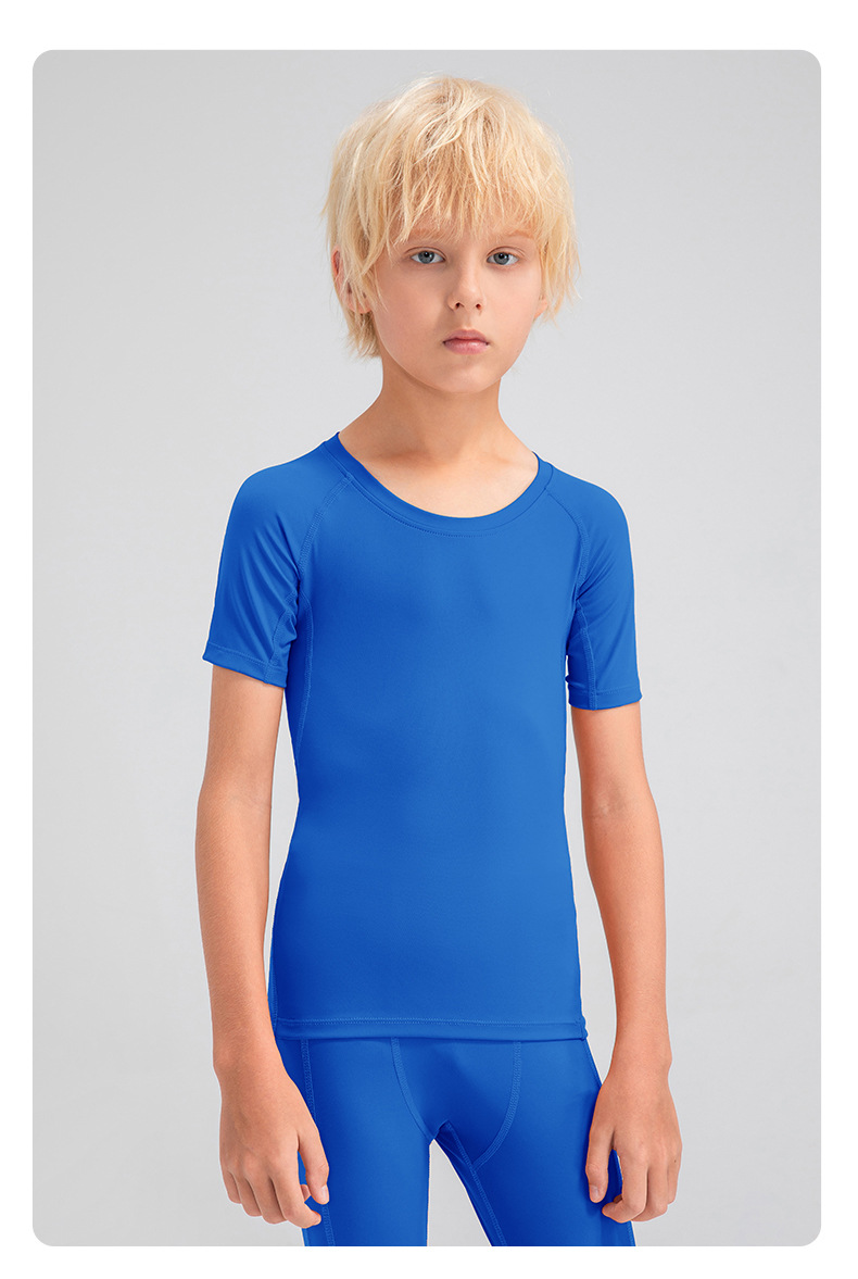 Children tights fitness short sleeve high stretch quick dry basketball training compression tee