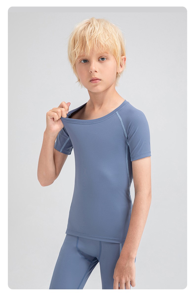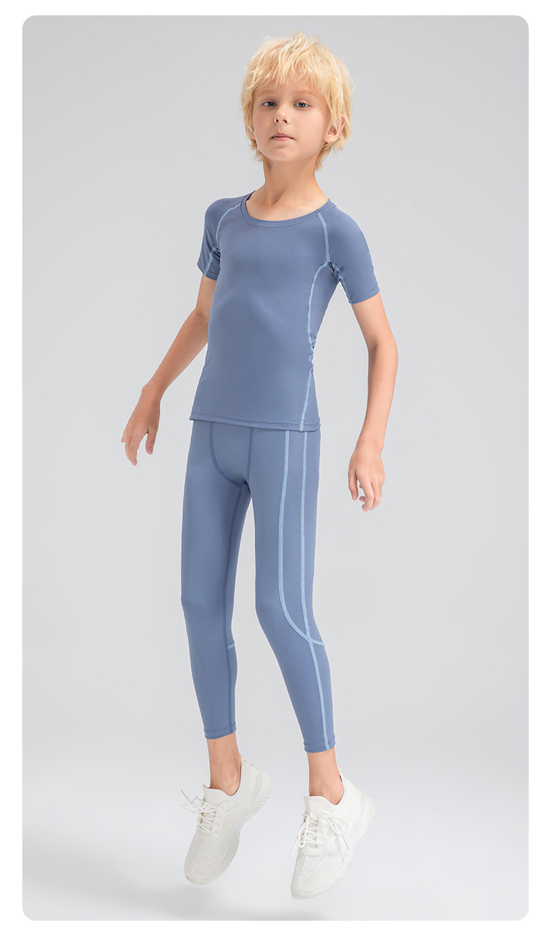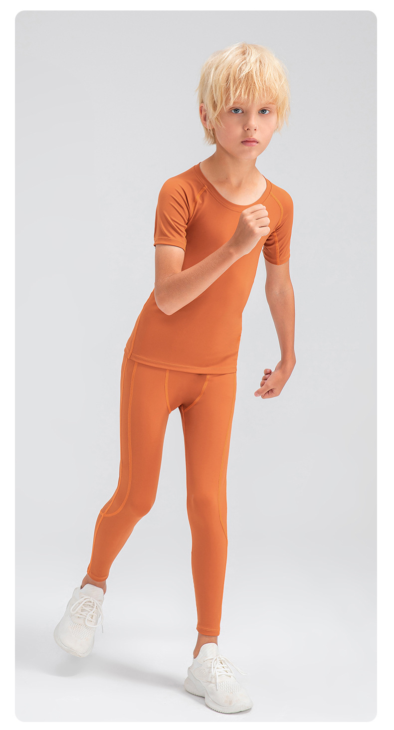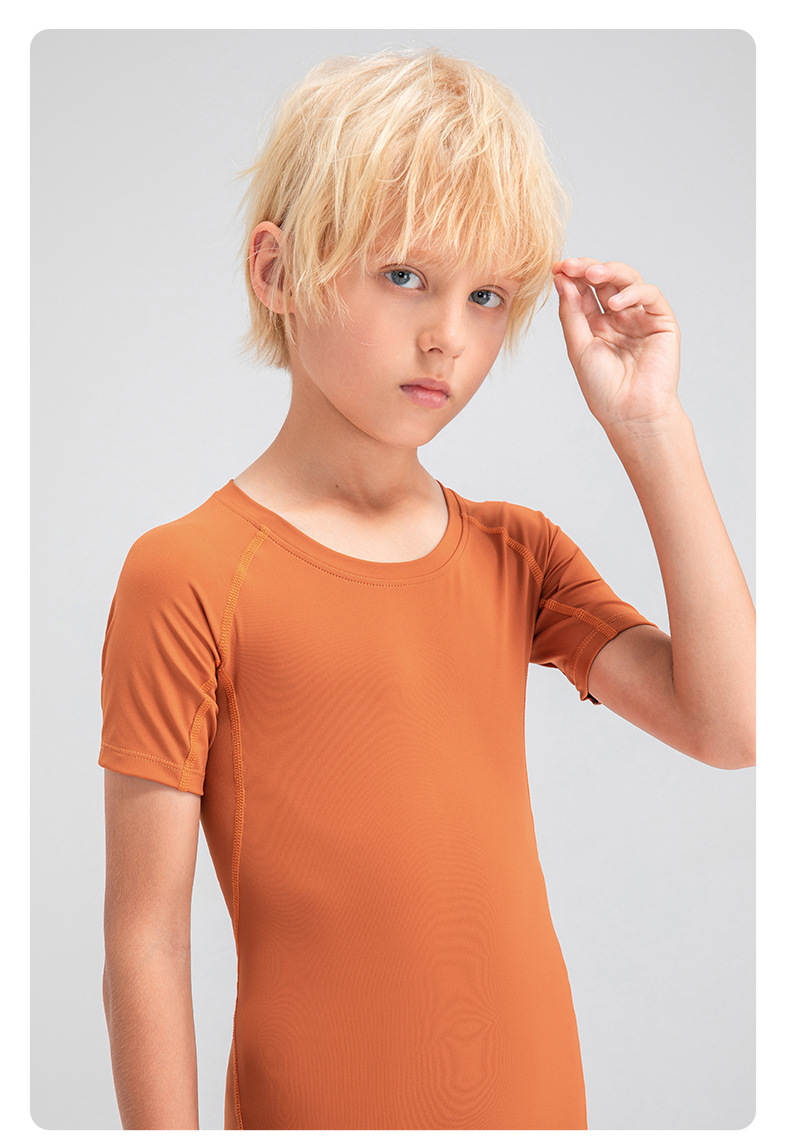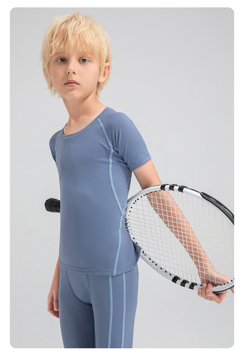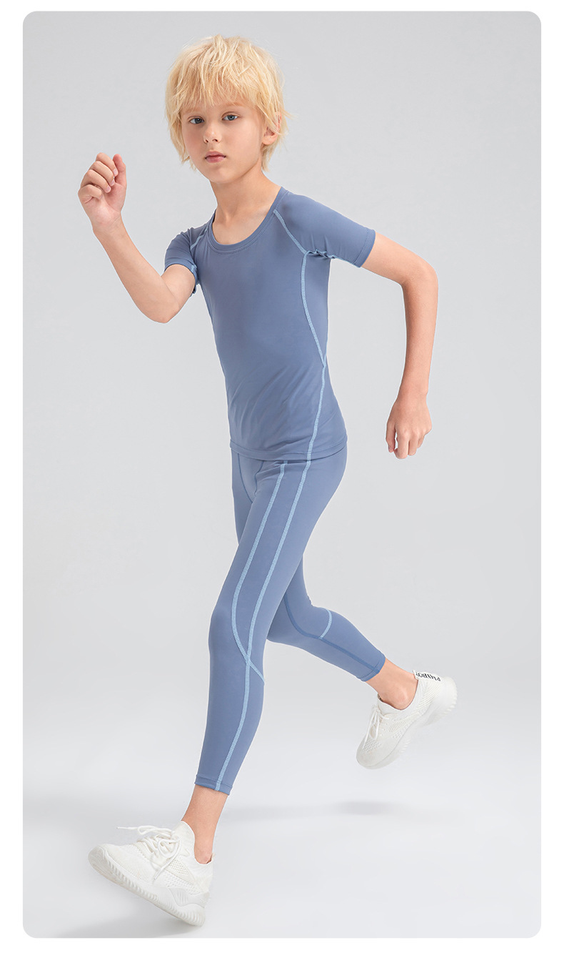 Children tights fitness short sleeve high stretch quick dry basketball training compression tee