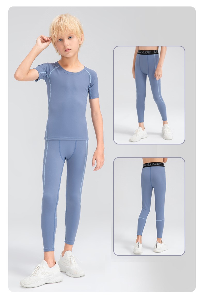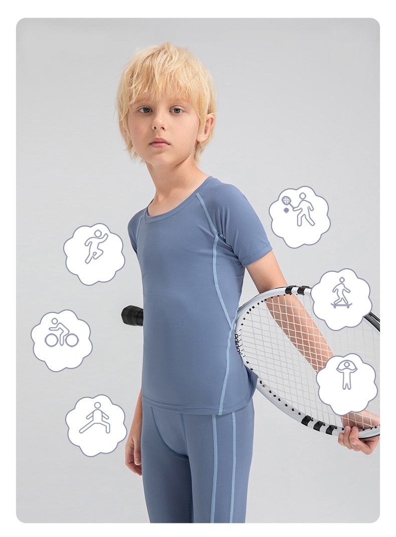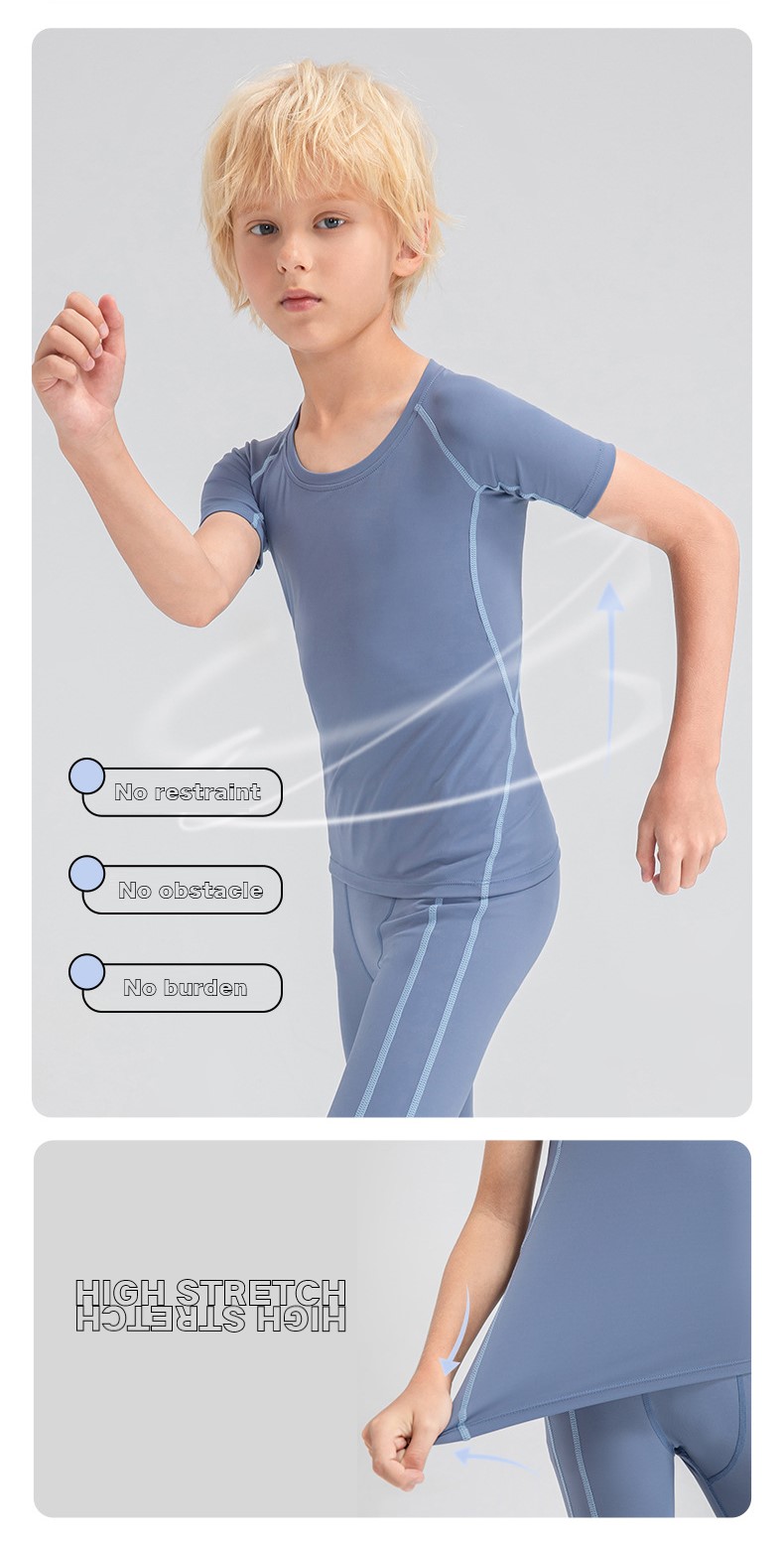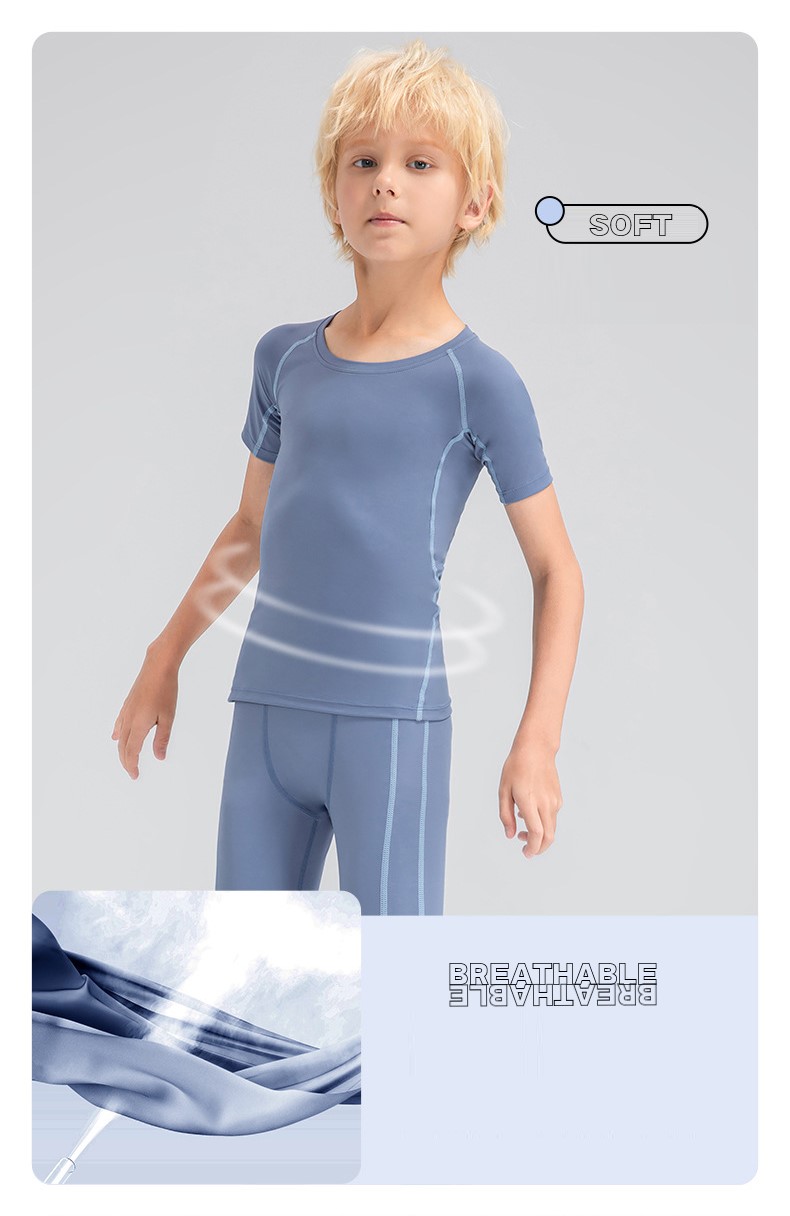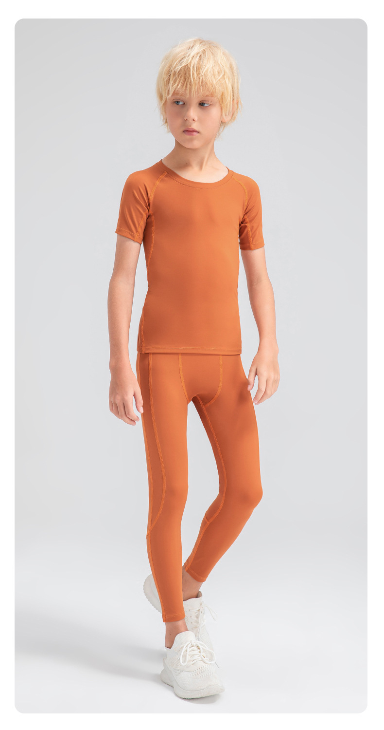 Children tights fitness short sleeve high stretch quick dry basketball training compression tee