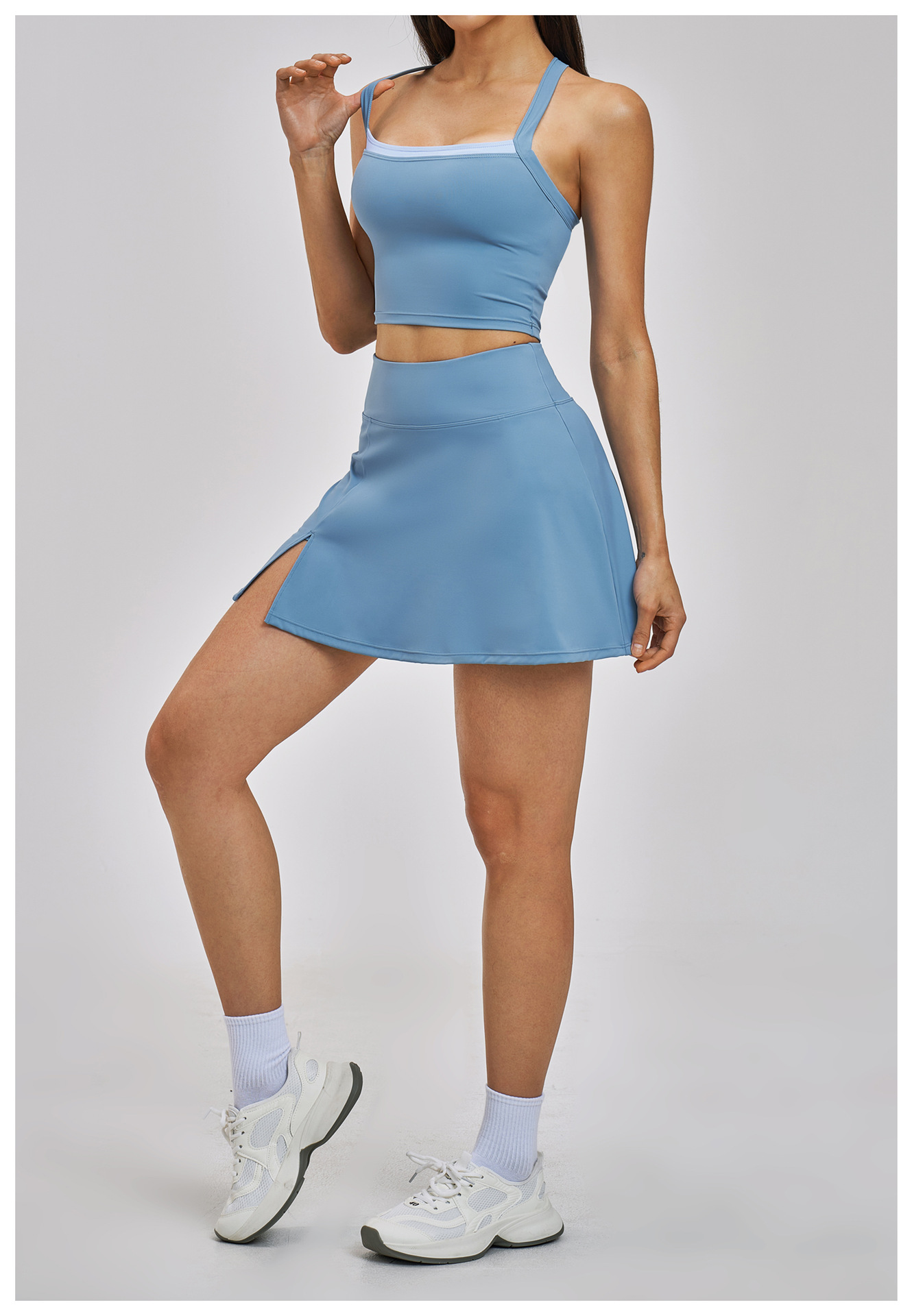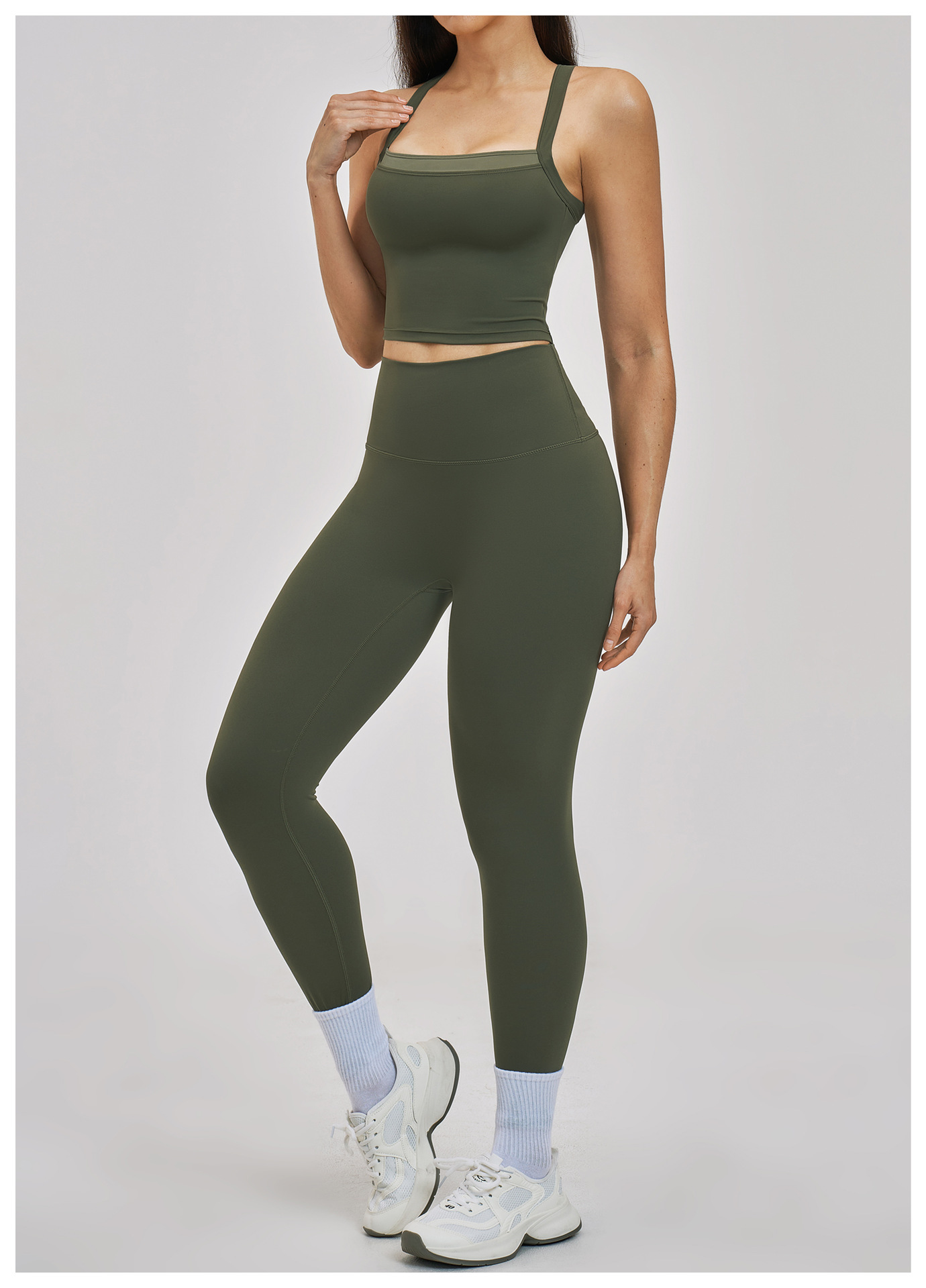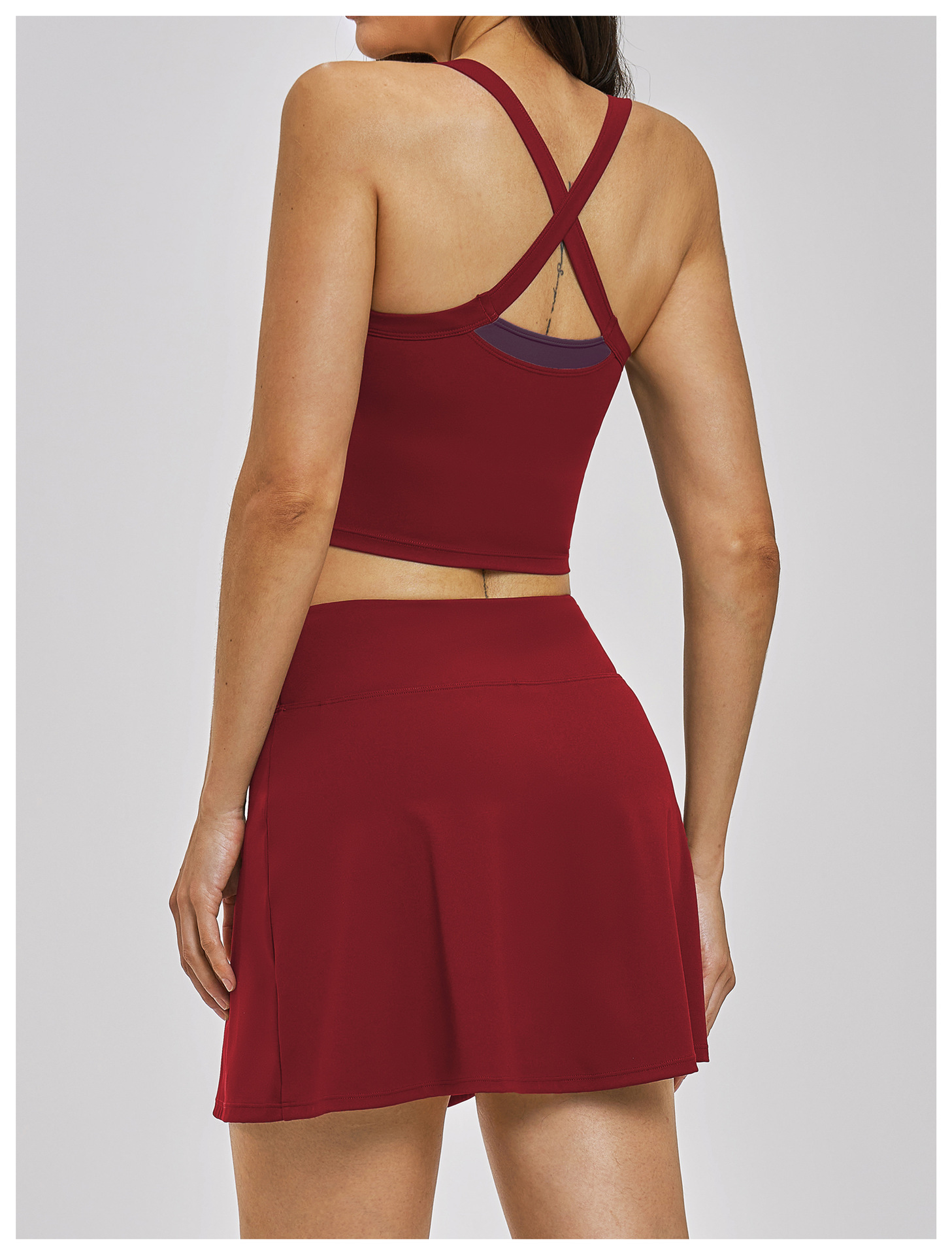 Women’s Fake Two-Piece Yoga Tank Top Set Crisscross Beauty Back Color Block Sports Shorts Active Wear: This women’s fake two-piece yoga set features color block design and crisscross beauty back tank top with matching sport shorts. High-stretch, breathable and moisture-wicking fabric ensures comfort for yoga, gym, fitness and daily workouts. Stylish color matching and body-shaping cut show your perfect curve. Support custom logo, color and size. Omi Apparel Limited provides bulk customization with stable quality, competitive price and on-time delivery. Ideal for wholesale and brand orders.