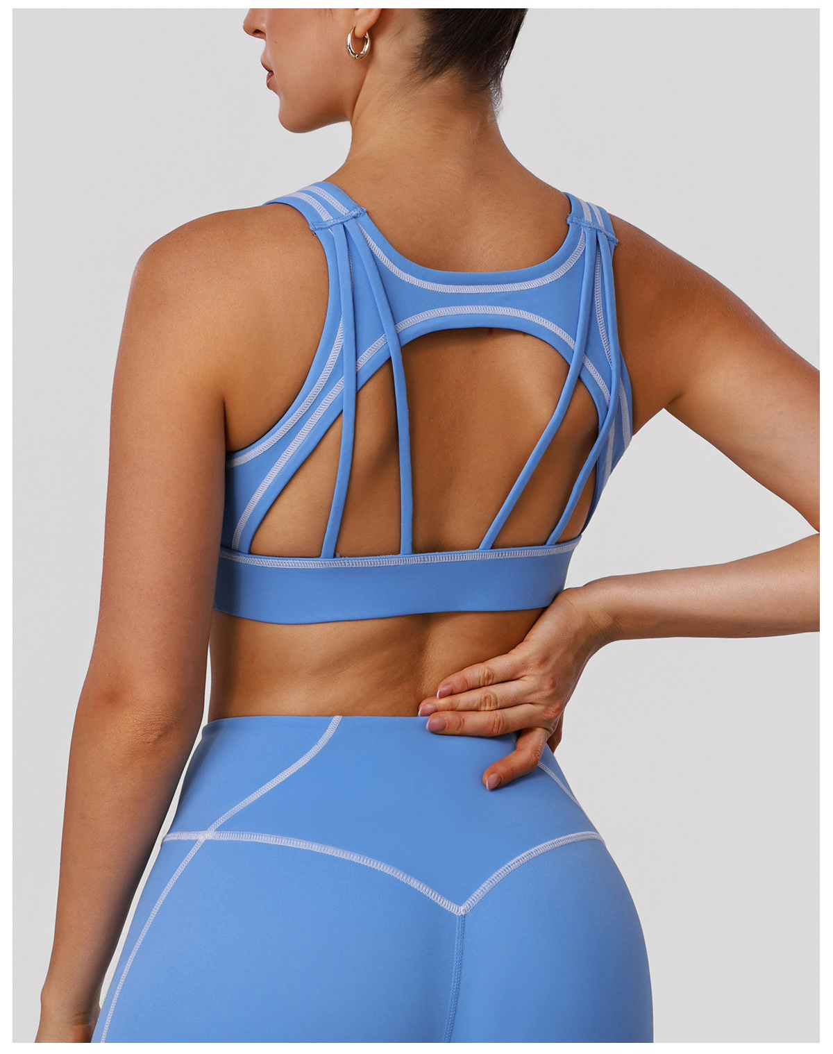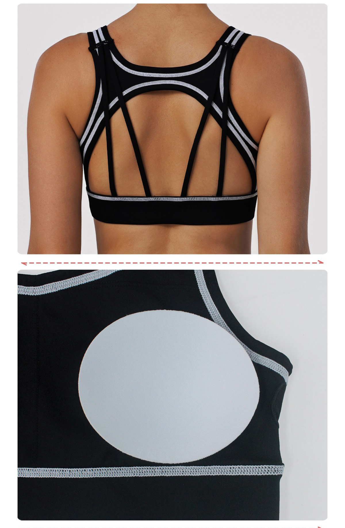 Bulk Custom Padded Sports Bra - Color Block Shockproof Cutout Open Back Yoga Tank: Factory Direct Bulk Custom Available! Elevate your activewear line with this color block yoga sports bra, featuring a trendy cutout open back design and built-in padding for comfort and support. The shockproof construction ensures stability during intense workouts, while the color block details add a stylish touch. Support custom logos, colors and sizes with flexible MOQ—ideal for wholesalers and brand partners!