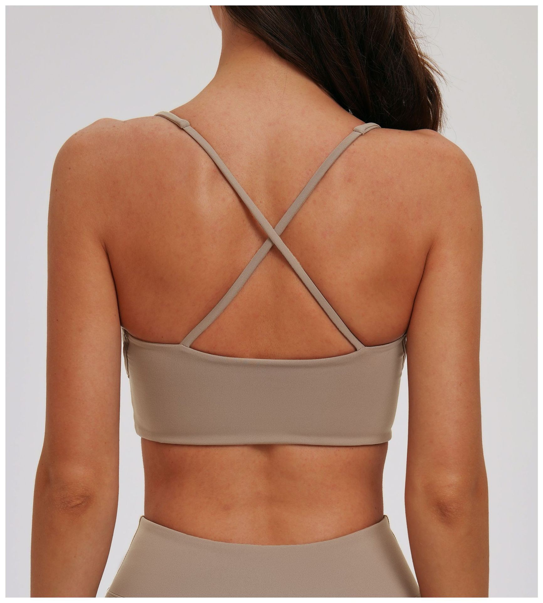 Custom Cross Cutout Yoga Sports Bra – Women’s Open Back Tight Shockproof Running Bra