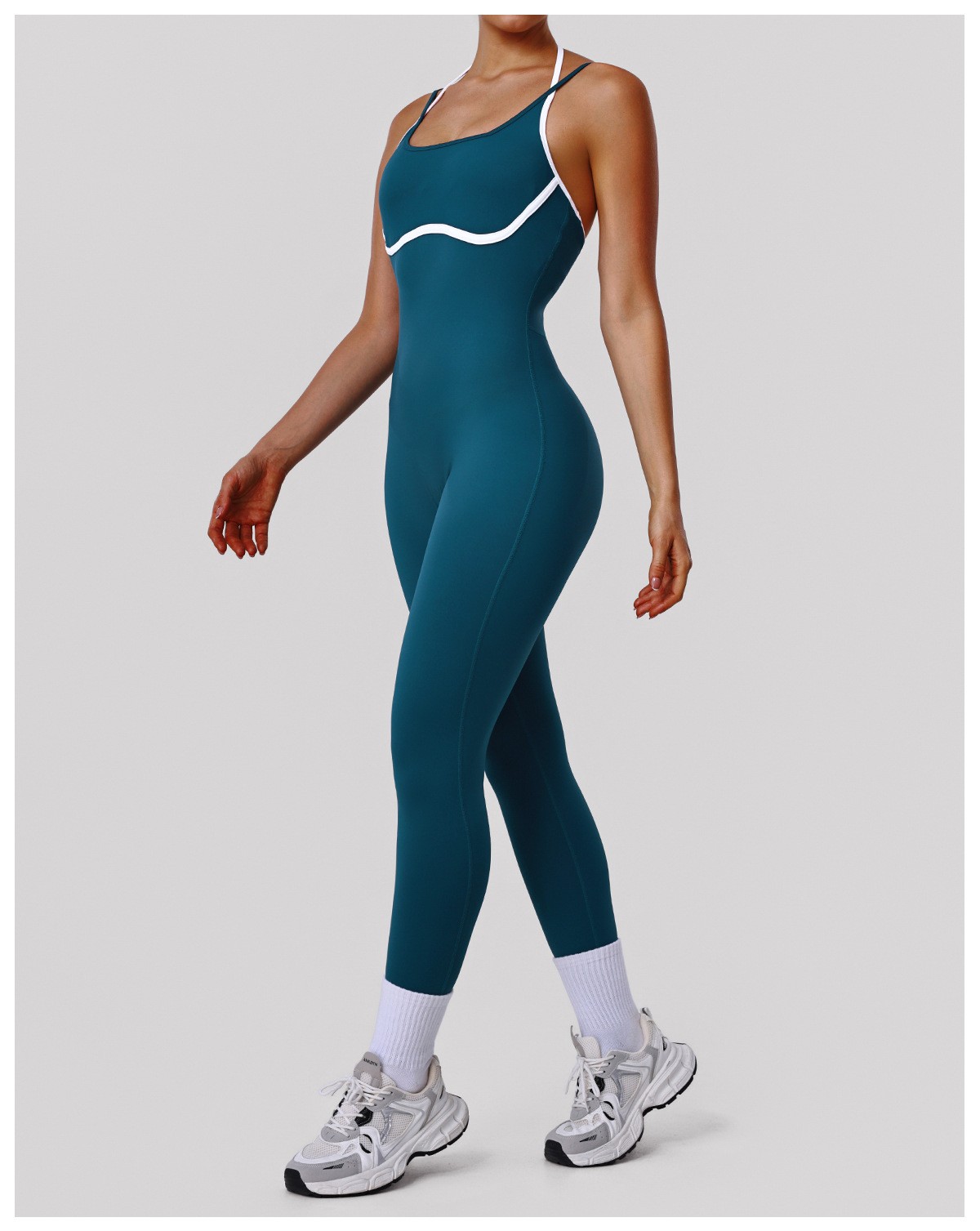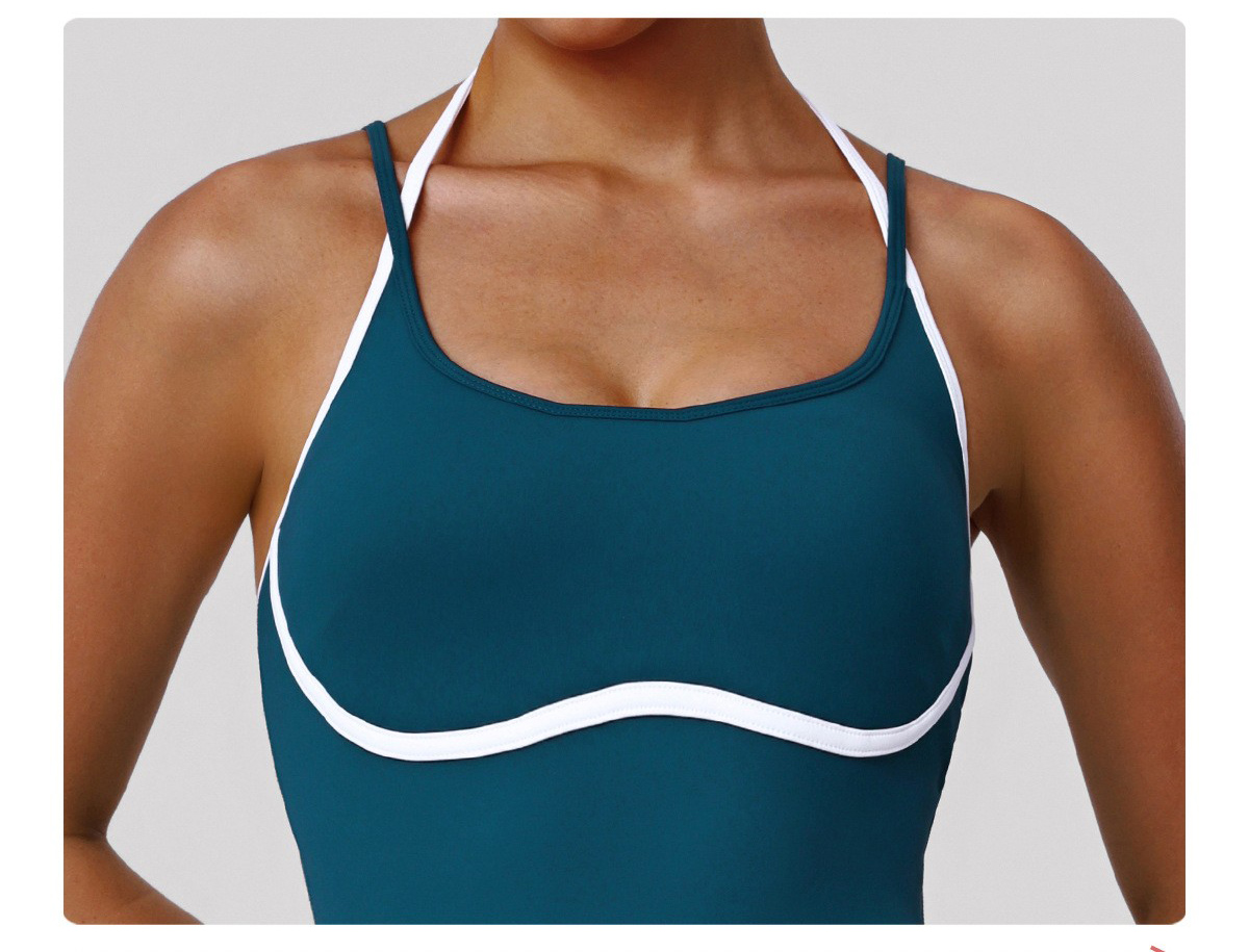 Custom European-American Style Yoga Bodysuit – Women’s Thin-Strap Open Back Slim Fit Running Workout Leotard