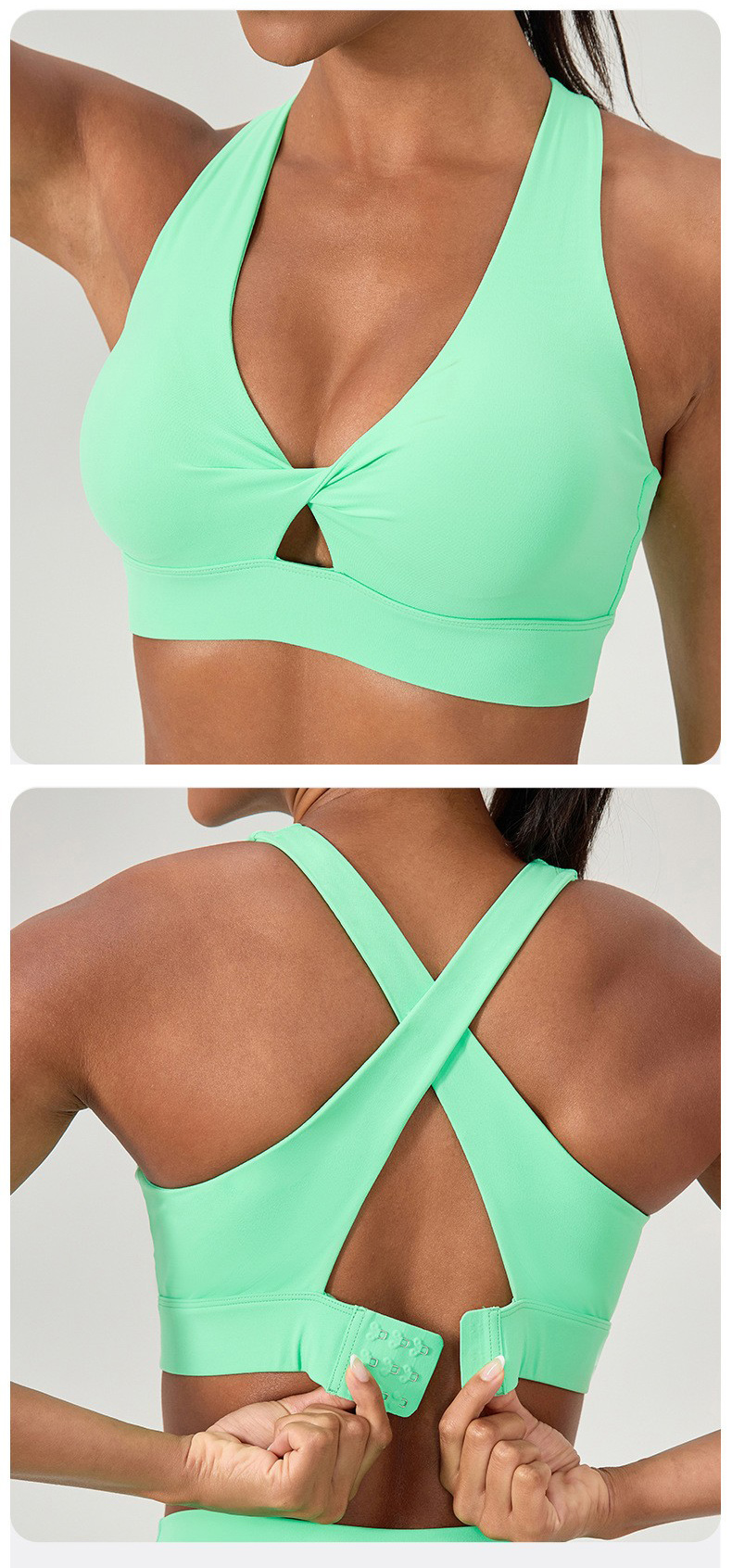 Need bulk-custom EU/US style sports bras? Omi Apparel Limited—direct factory customization—delivers high-performance yoga bras! Our design focuses on practicality & comfort: removable soft pads for flexible support, quick-dry fabric that wicks sweat fast, and durable buckle closure for a secure fit. The shockproof structure reduces bounce during running, gym training or intense yoga sessions.