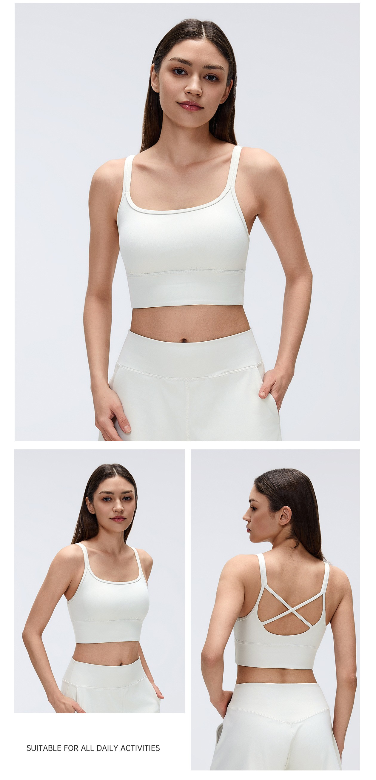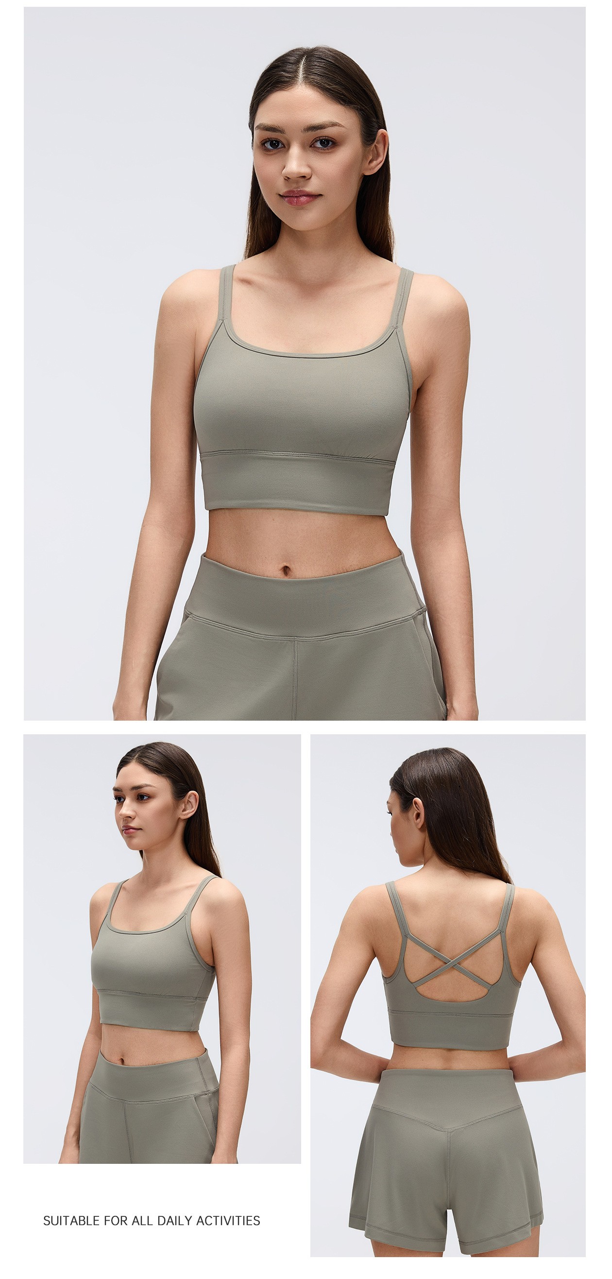 OMI Custom High Support Yoga Bra - Women Cross Thin Strap Beauty Back Pilates Fitness Sports Bra: OMI Factory Direct Custom! Women high support sports bra with cross thin strap beauty back design. Built with high elastic breathable quick-dry fabric, medium to high support for shockproof and stability, perfect for yoga, pilates, gym training, running and high intensity workout. Removable pads, soft against skin, no chafing. Stylish cross back shows beautiful back line. Support custom logo, color, size XS-5XL, flexible MOQ for wholesale.