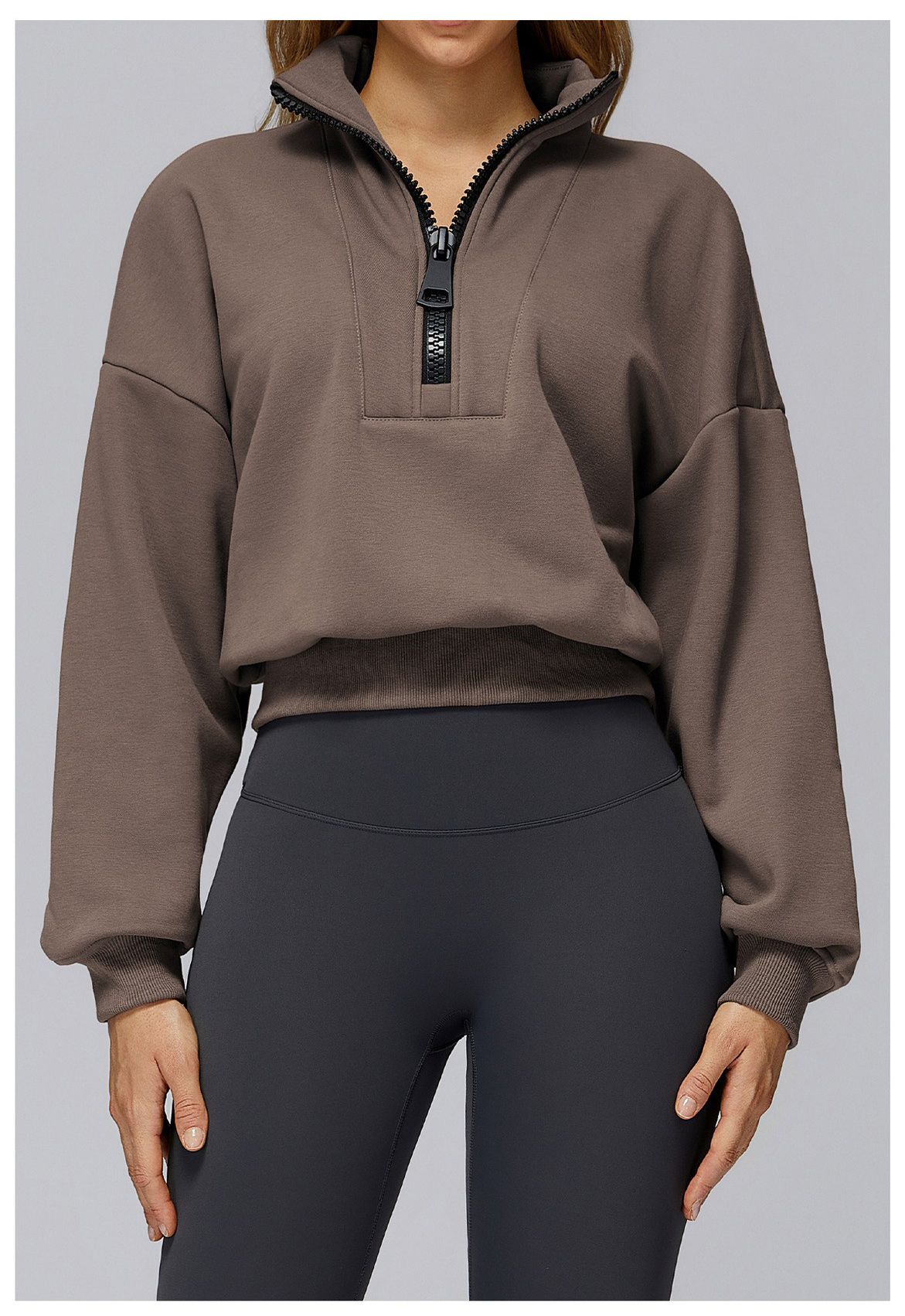 Custom Loose-Fit Stand Collar Sweatshirt for Women – Windproof Warm Versatile Outdoor Sports Top, Casual Daily Wear