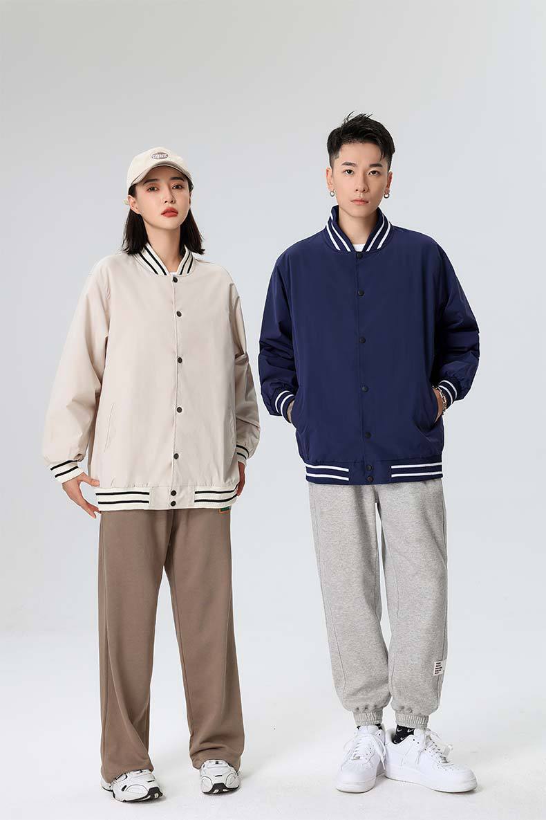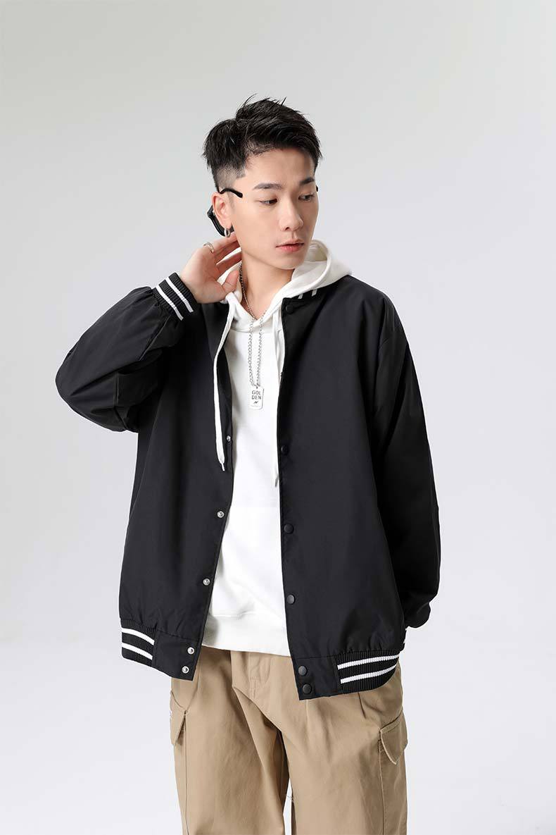 Custom men baseball jacket solid casual loose button coat stripe sportswear Factory OEM Low MOQ