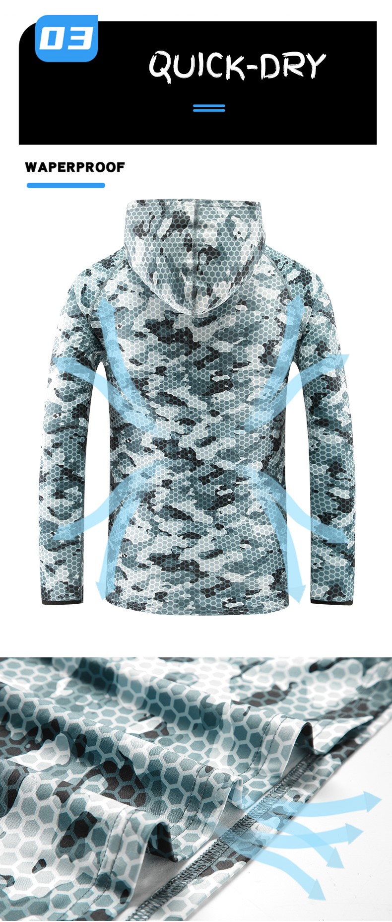 Custom men new outdoor camouflage finishing coat hooded climbing UPF50+ sun-proof jacket