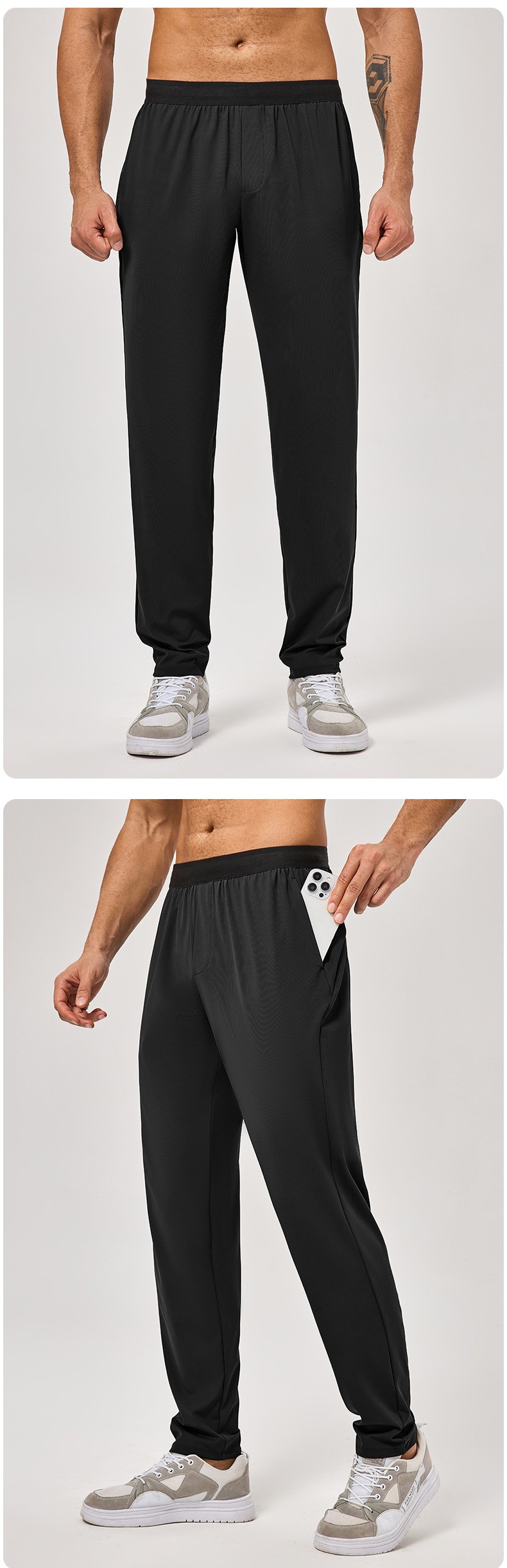 Omi Apparel Limited’s men’s sports pants: loose straight fit with great draping. High elastic, breathable, quick-dry—ideal for fitness, training & running. Factory-direct bulk customization, blending comfort and functionality for casual & sports scenes.
