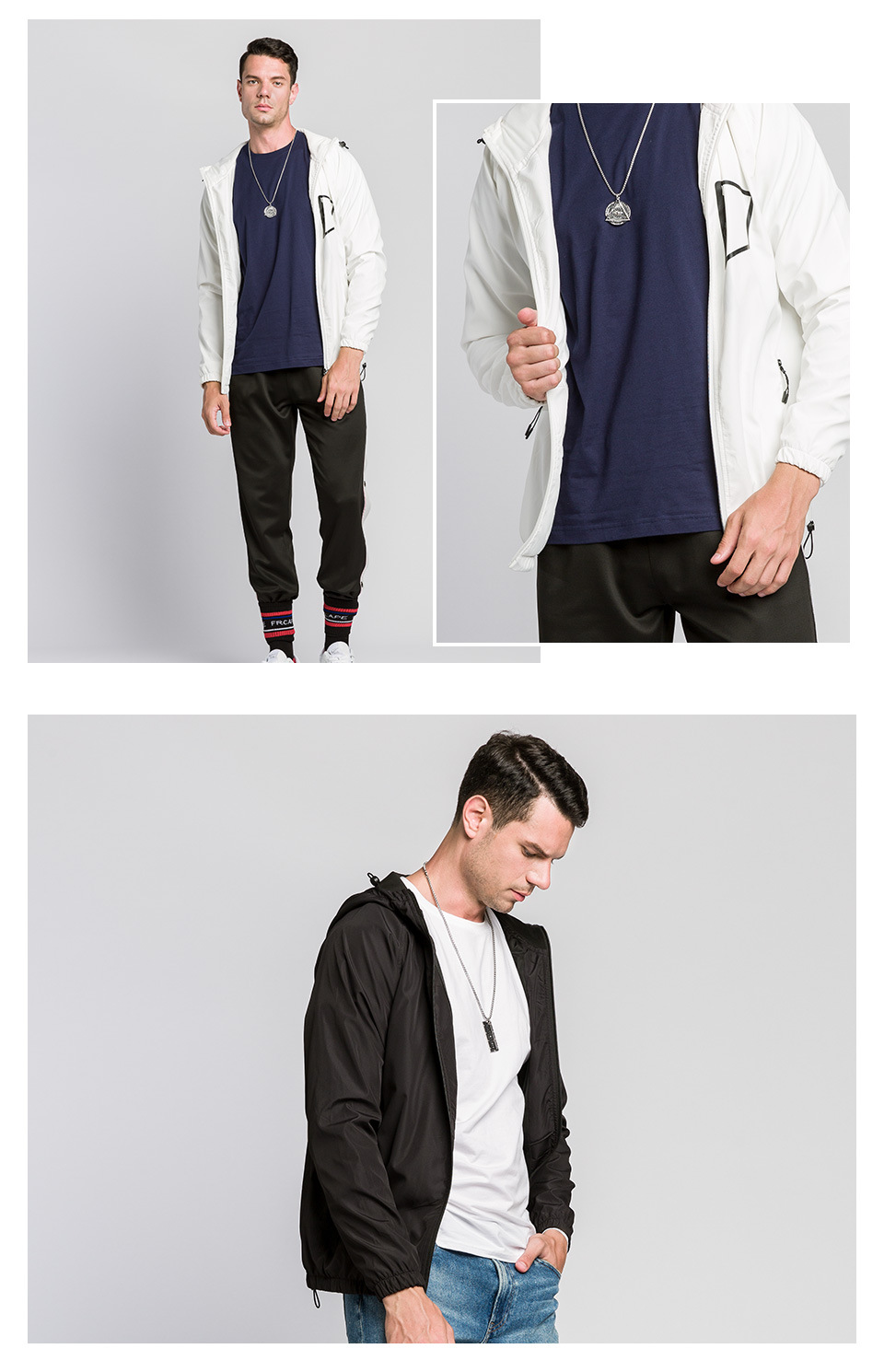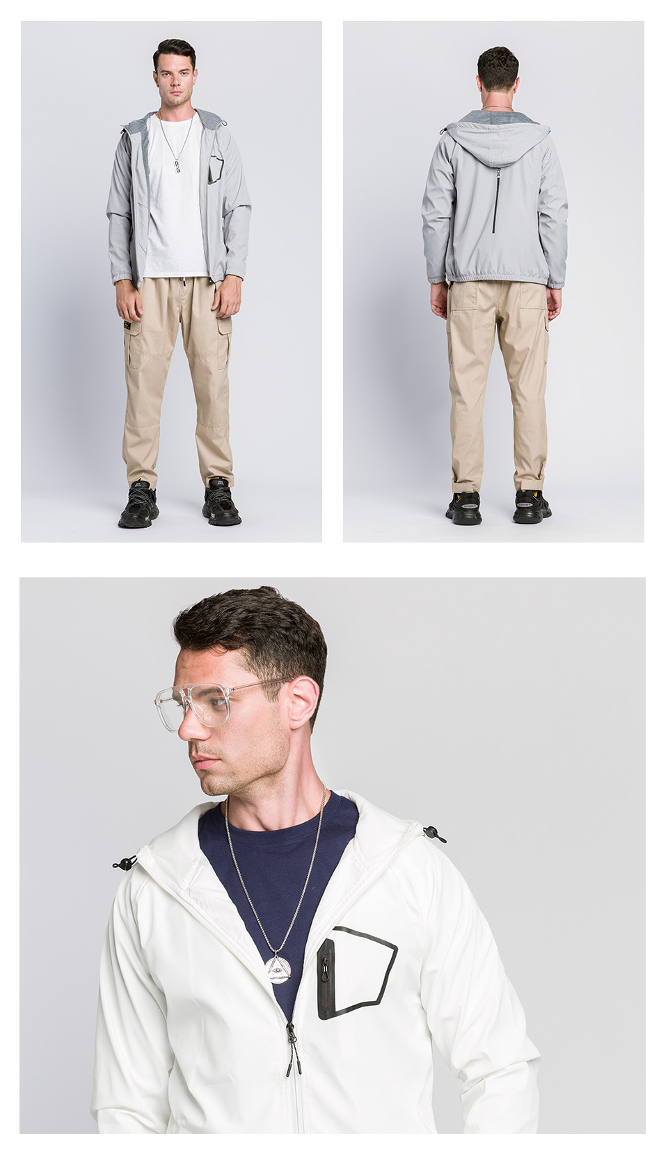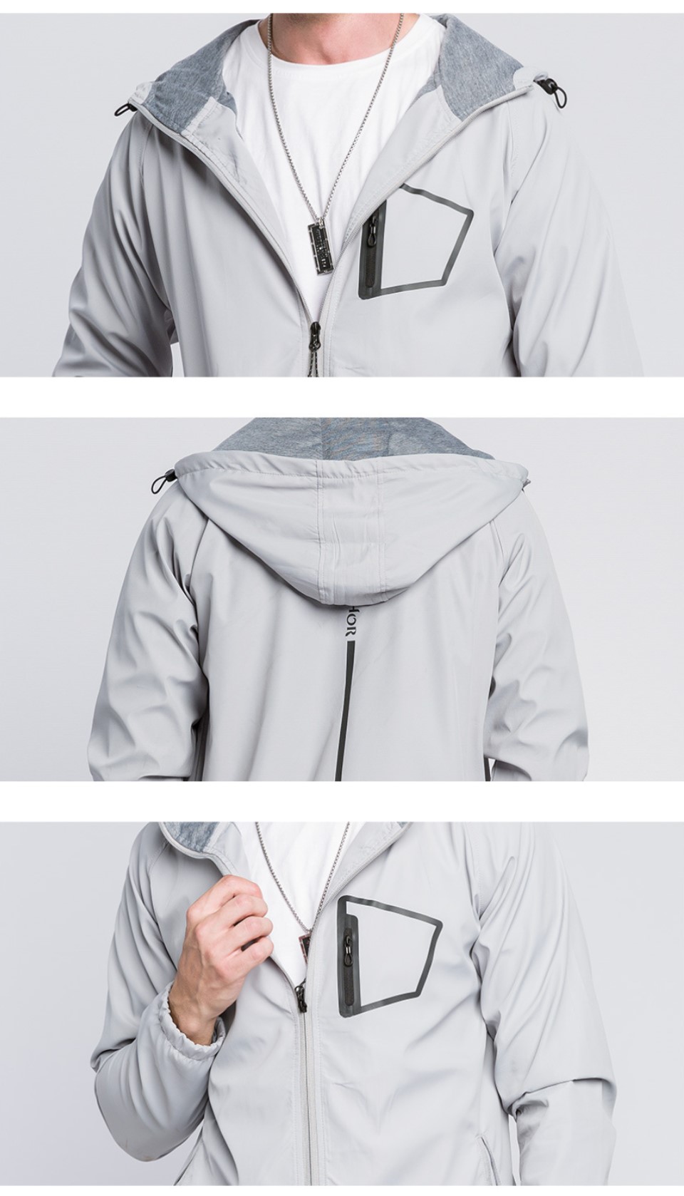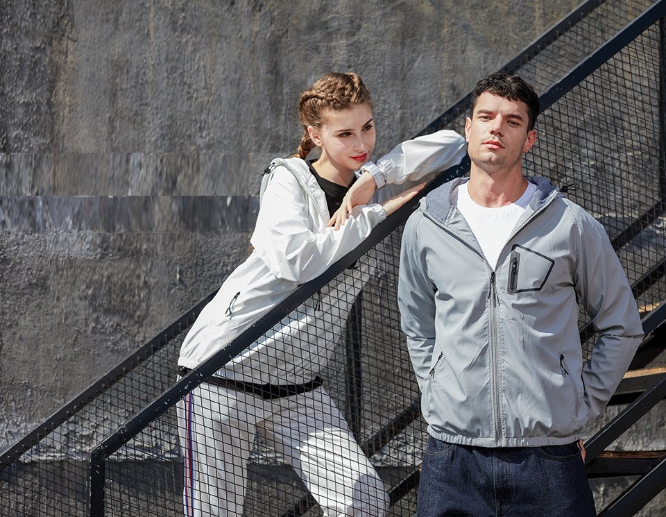 Custom men’s zip up hooded jacket outdoor sports casual woven coat