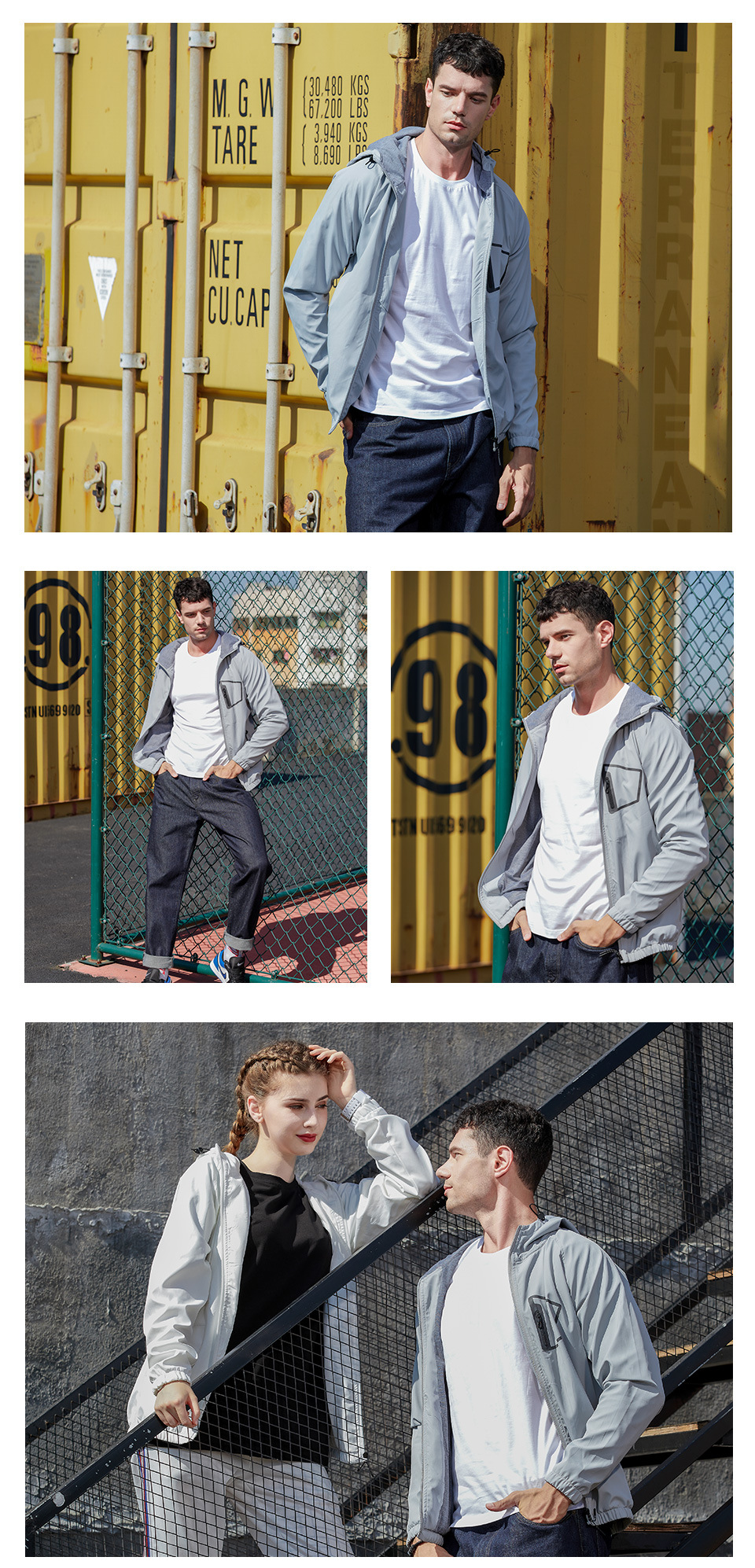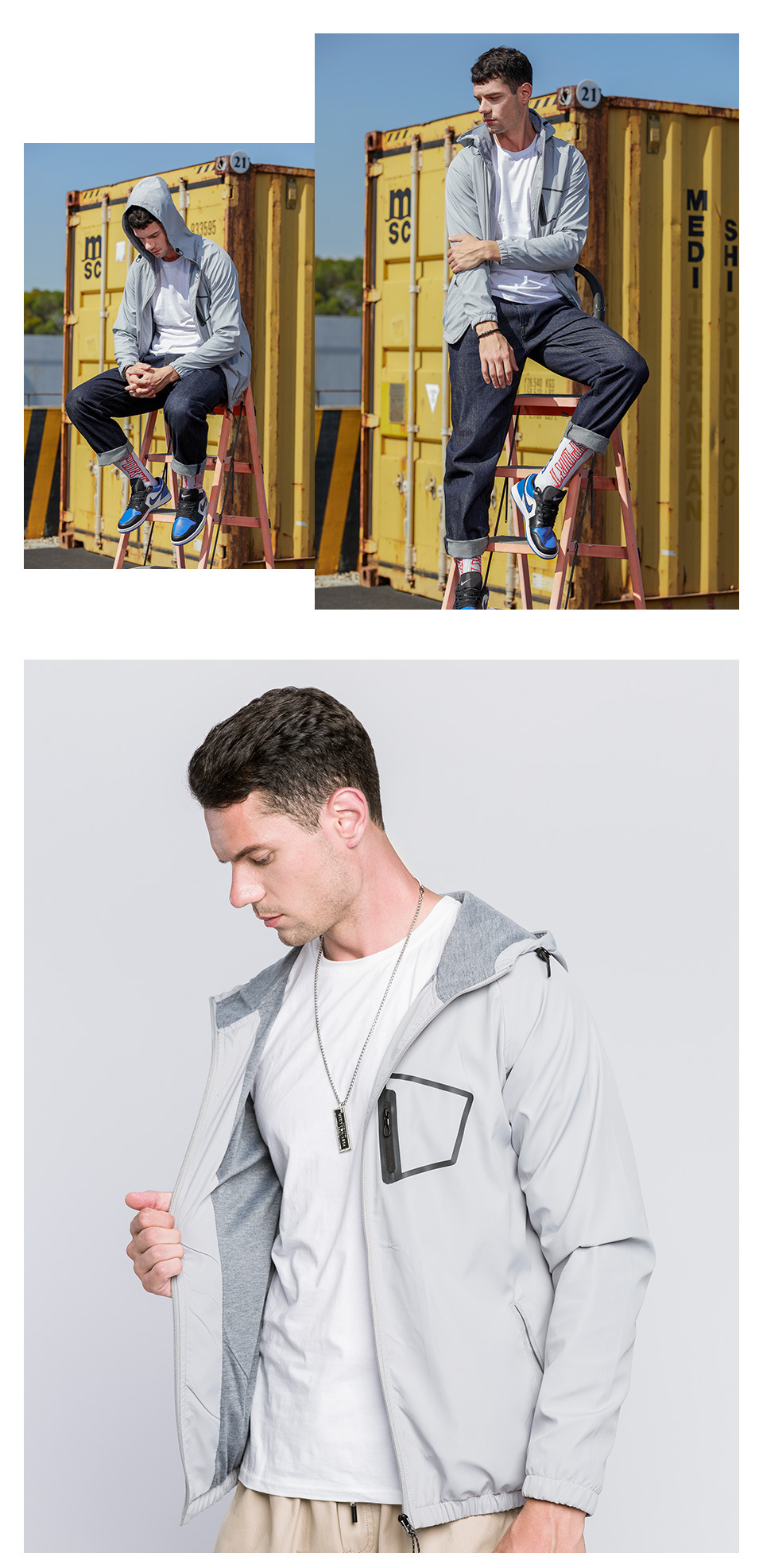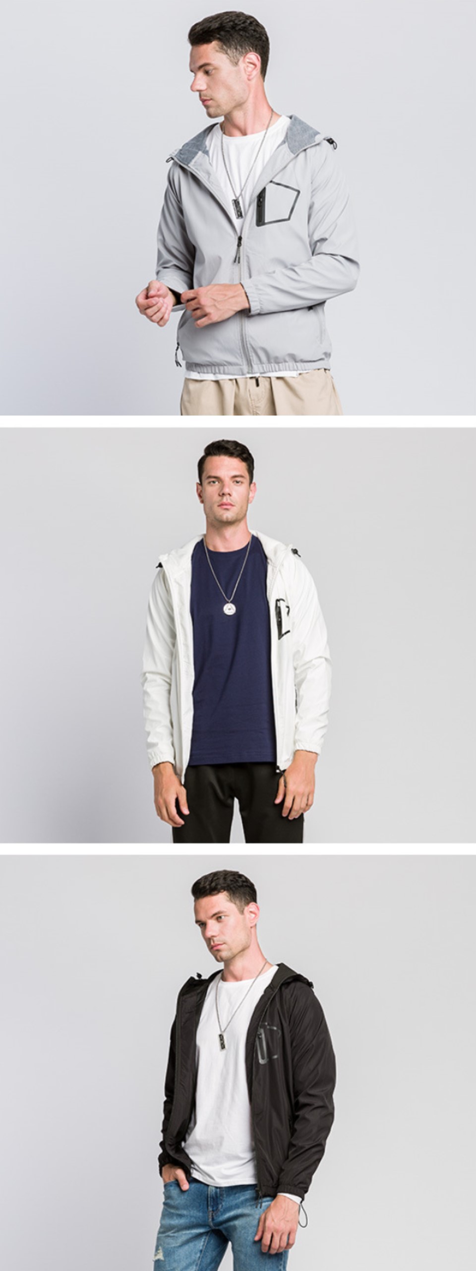 Custom men’s zip up hooded jacket outdoor sports casual woven coat