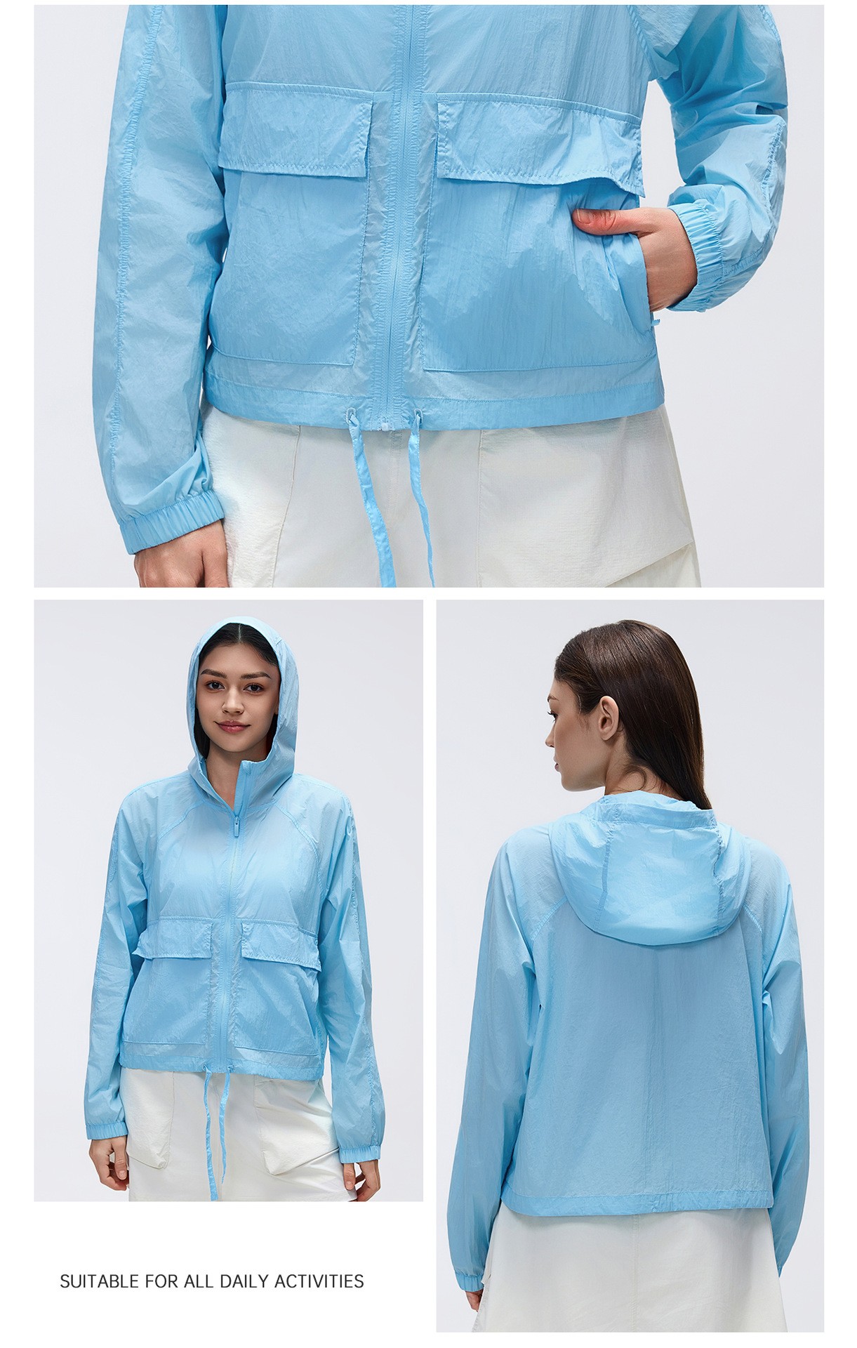 Bulk Custom UV Protection Hooded Top - Women's Lightweight Water-Resistant Loose Long Sleeve Sports Outerwear: OMI Factory Direct Bulk Custom! This women's outdoor sun protection jacket features lightweight breathable fabric with UV protection & water-repellent performance, loose hooded design ensures unrestricted movement, open cardigan style for easy layering. Ideal for hiking, running and daily outdoor activities. Support custom colors, logos and plus sizes up to 5XL with flexible MOQ—perfect for activewear wholesale!
