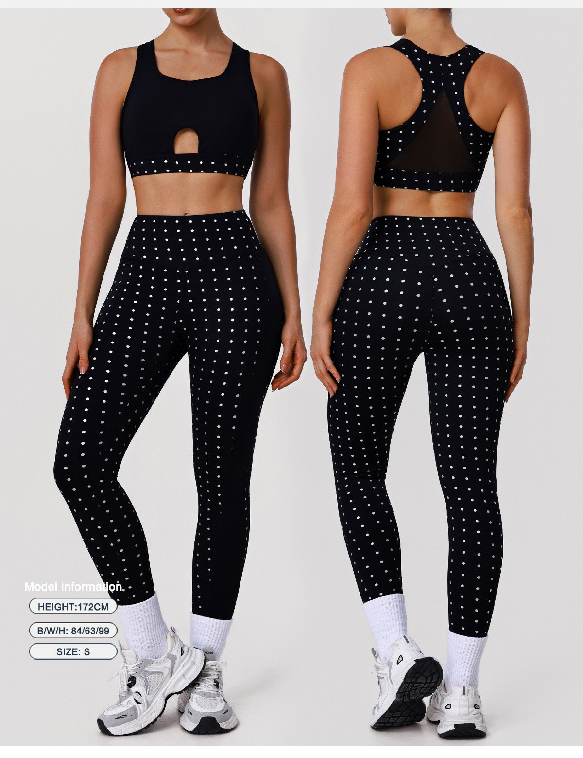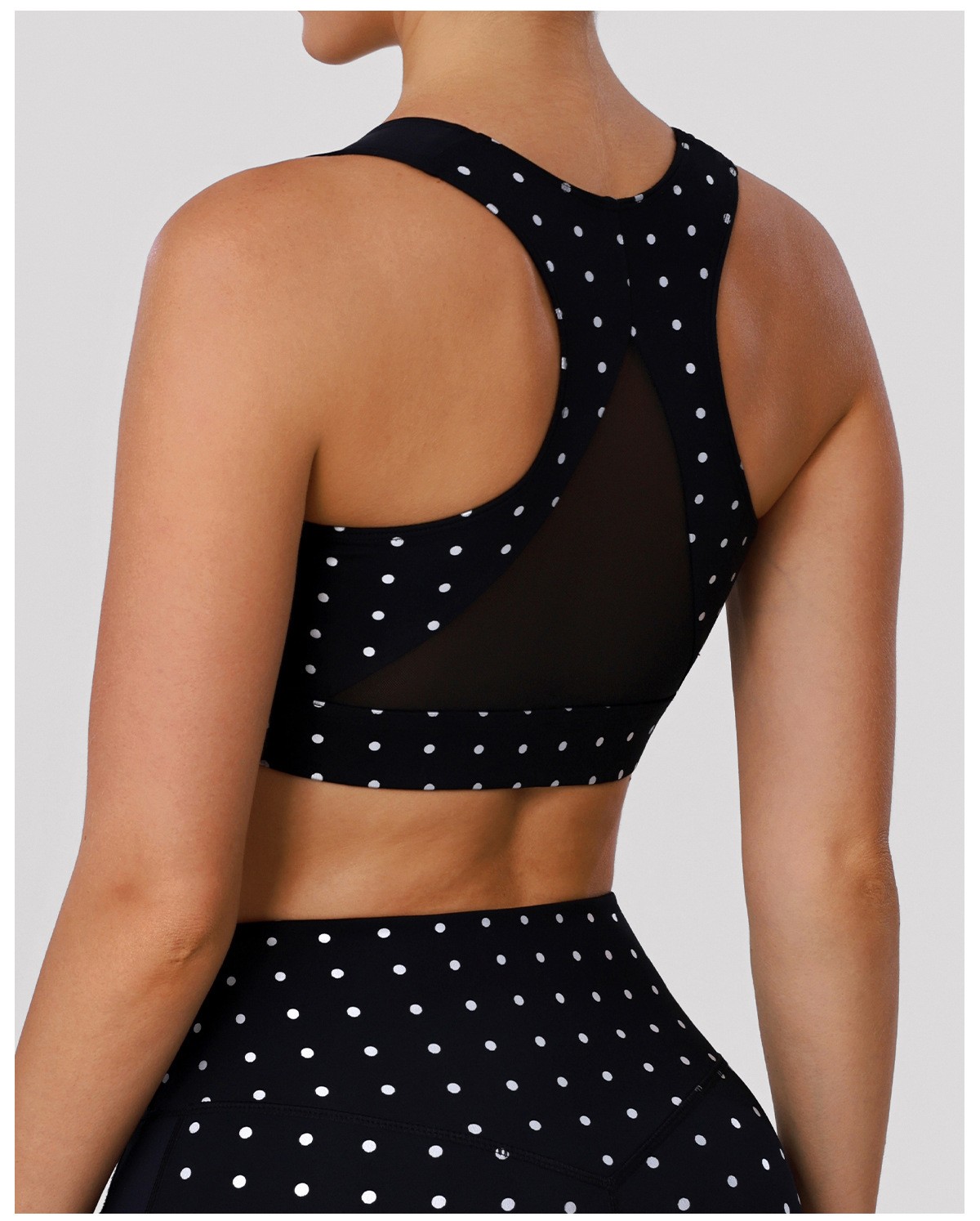 Custom Polka Dot Yoga Set – Women’s Open Back Sports Bra & High-Waisted Butt-Lifting Workout Leggings