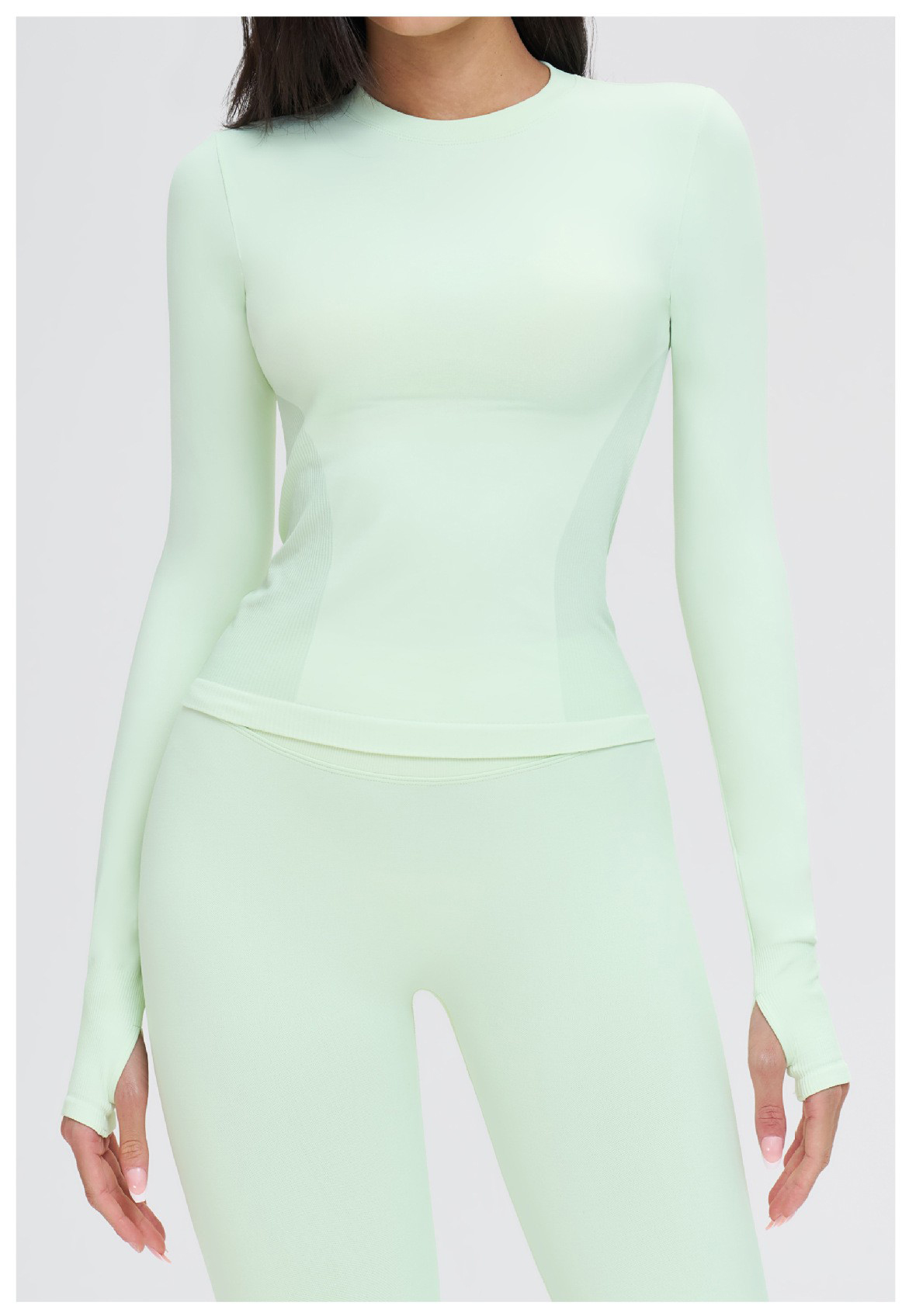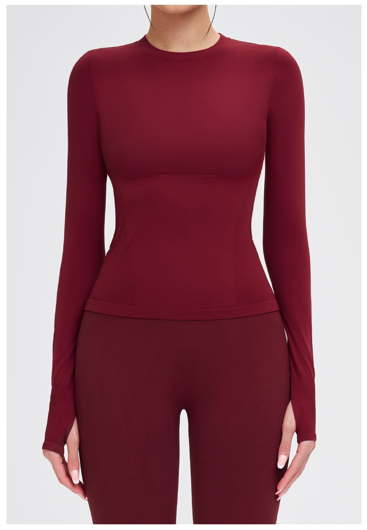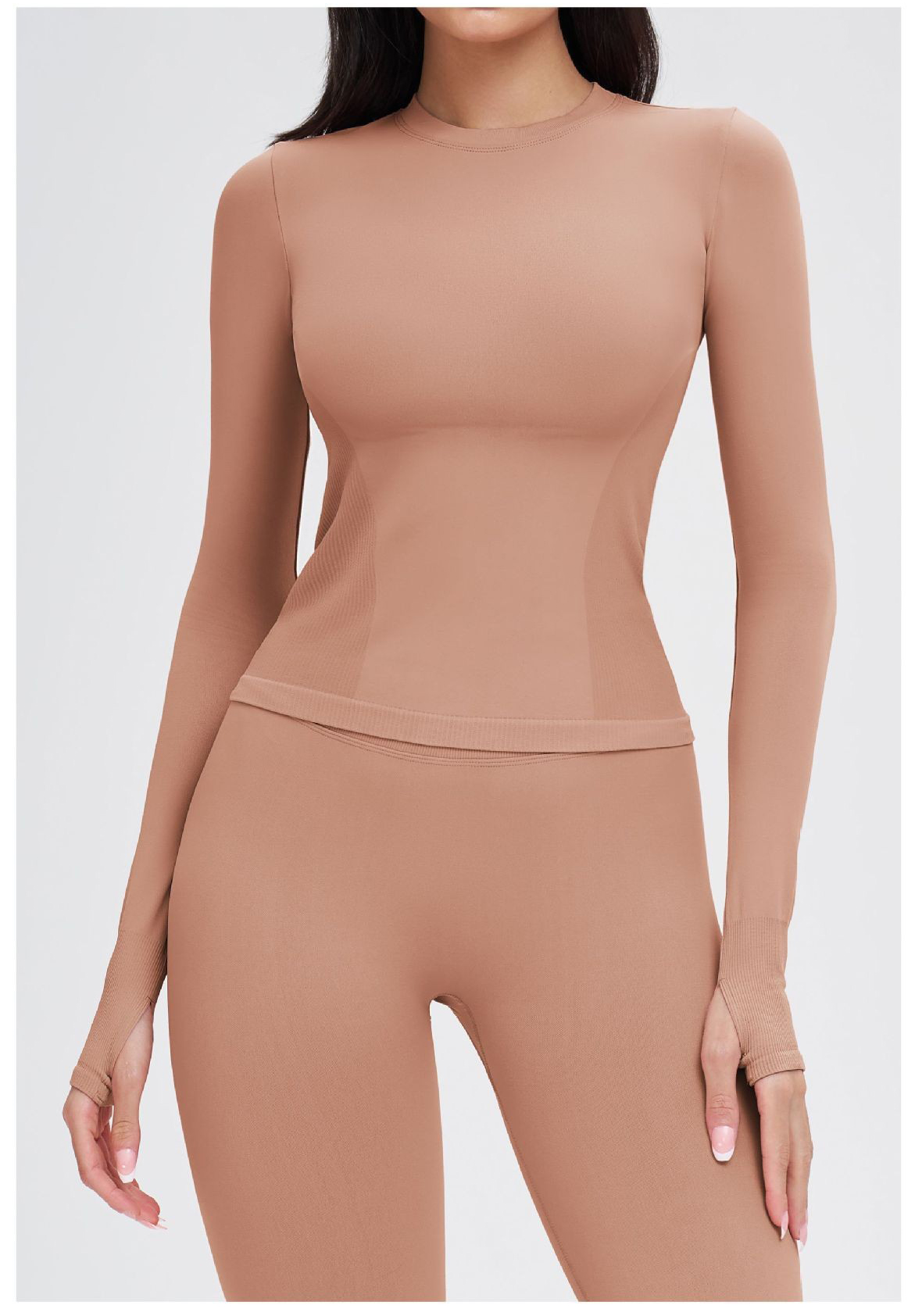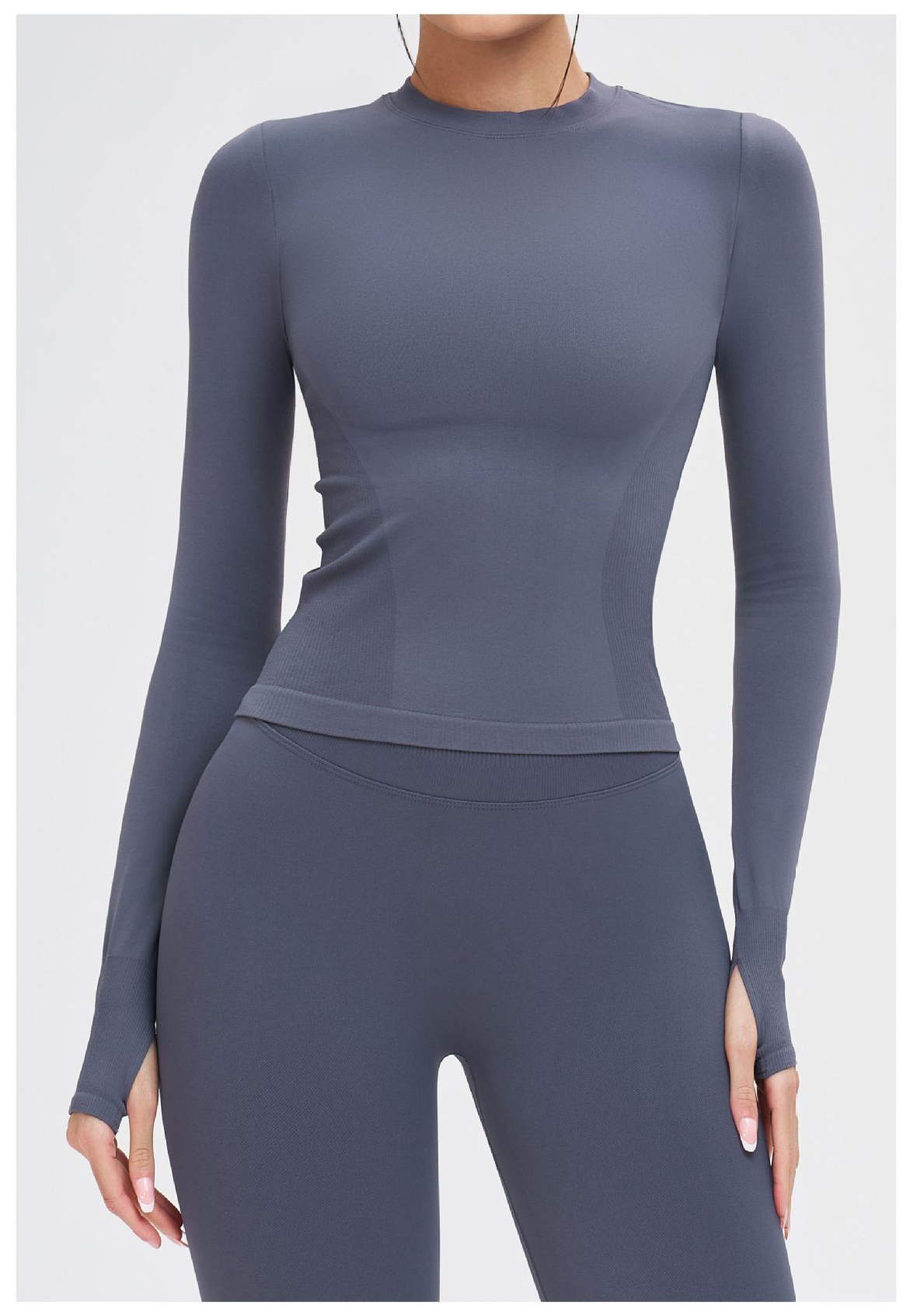 Custom Seamless Yoga Long Sleeve – Women’s Crew Neck Tight High-Stretch Running Fitness T-Shirt