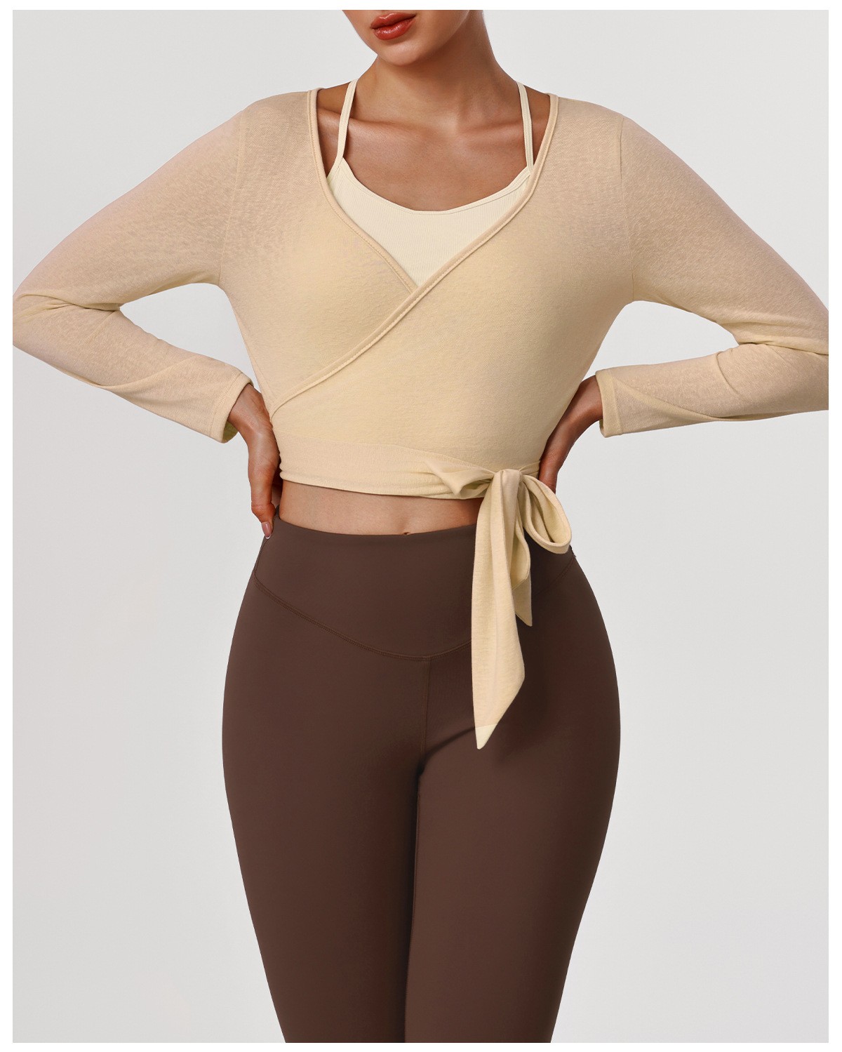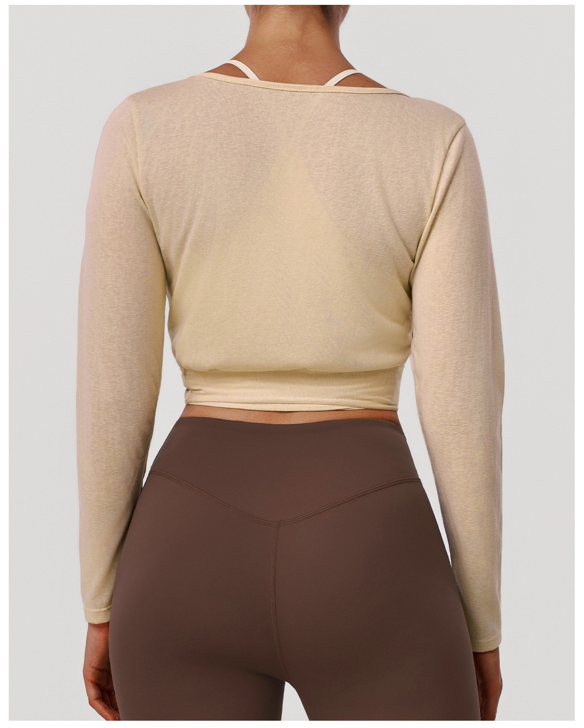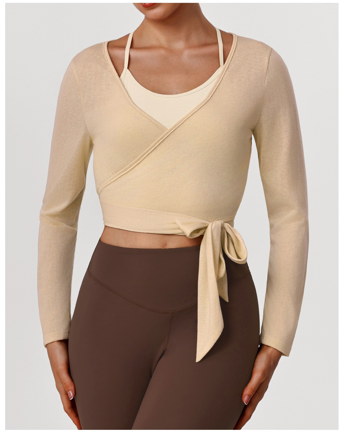 Custom Spring-Summer Yoga Two-Piece Set – Slim Long Sleeve Cover Up & Padded Camisole for Dance Training