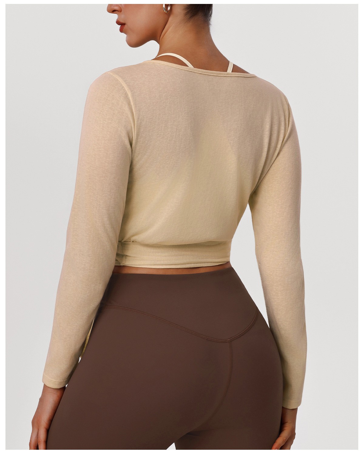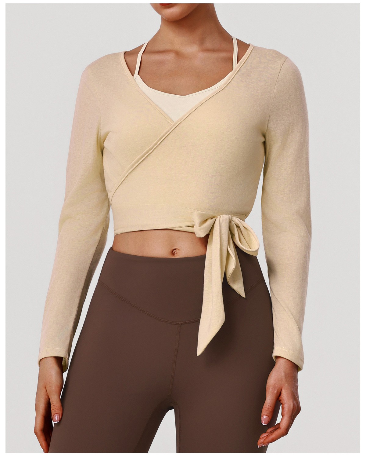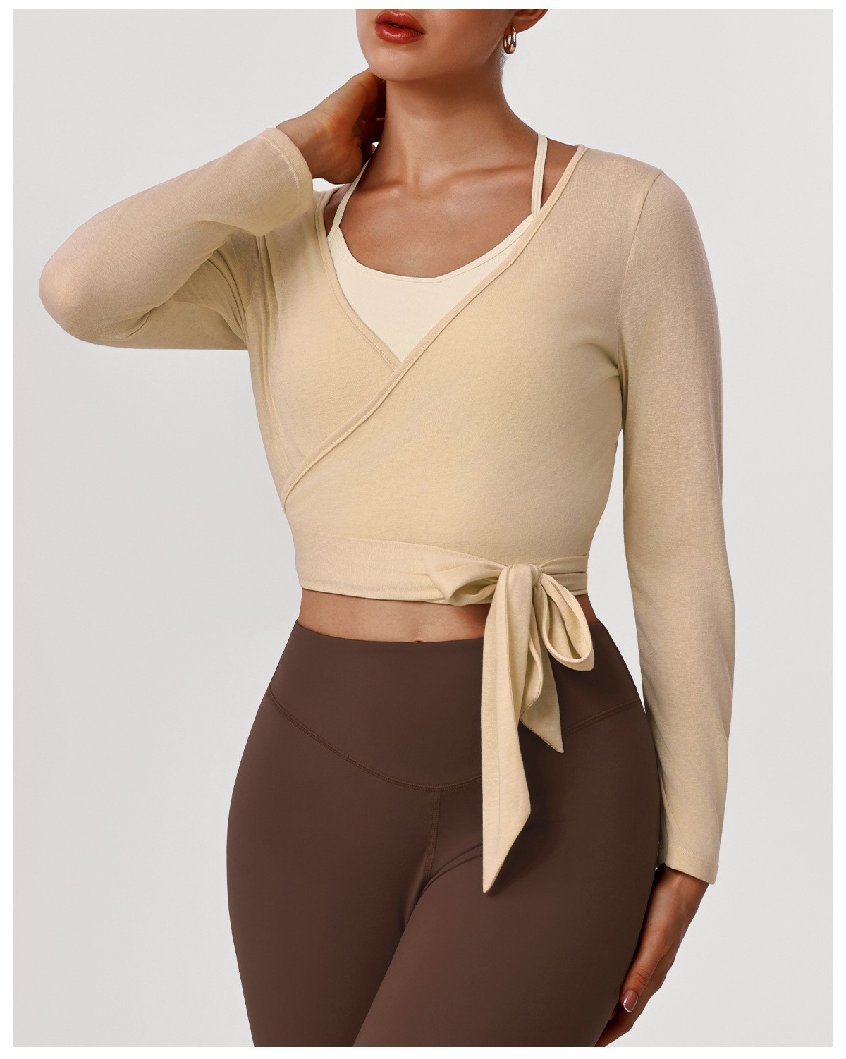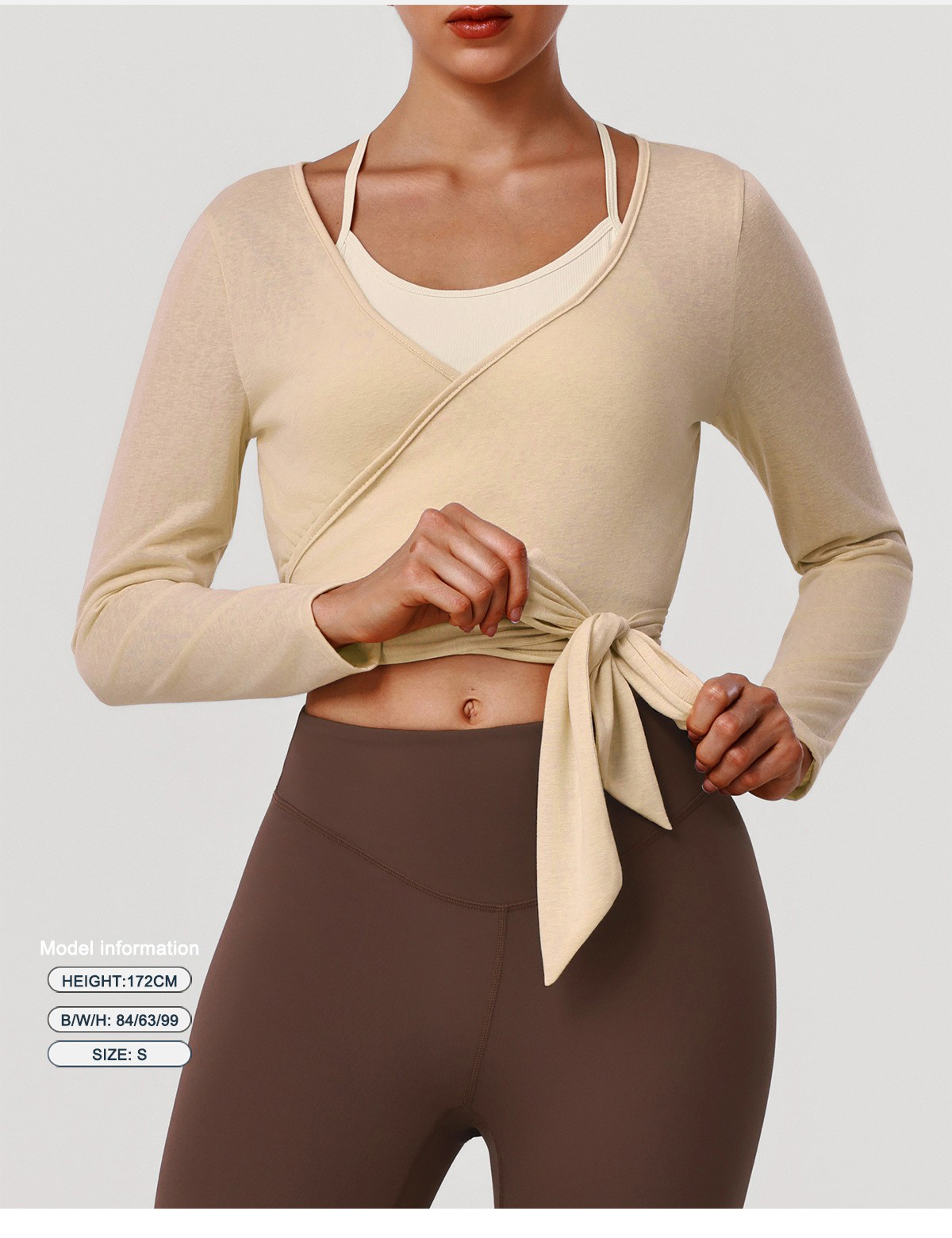 Custom Spring-Summer Yoga Two-Piece Set – Slim Long Sleeve Cover Up & Padded Camisole for Dance Training
