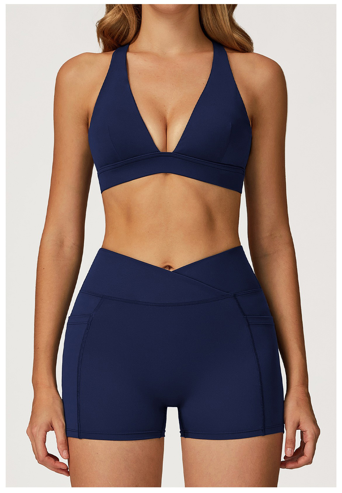 Omi Apparel Limited – direct factory for bulk-custom women’s V-neck yoga bras! Our design features a flattering V-neck, sexy back, push-up 聚拢 support, and high elasticity for comfort during yoga, fitness, or sports.