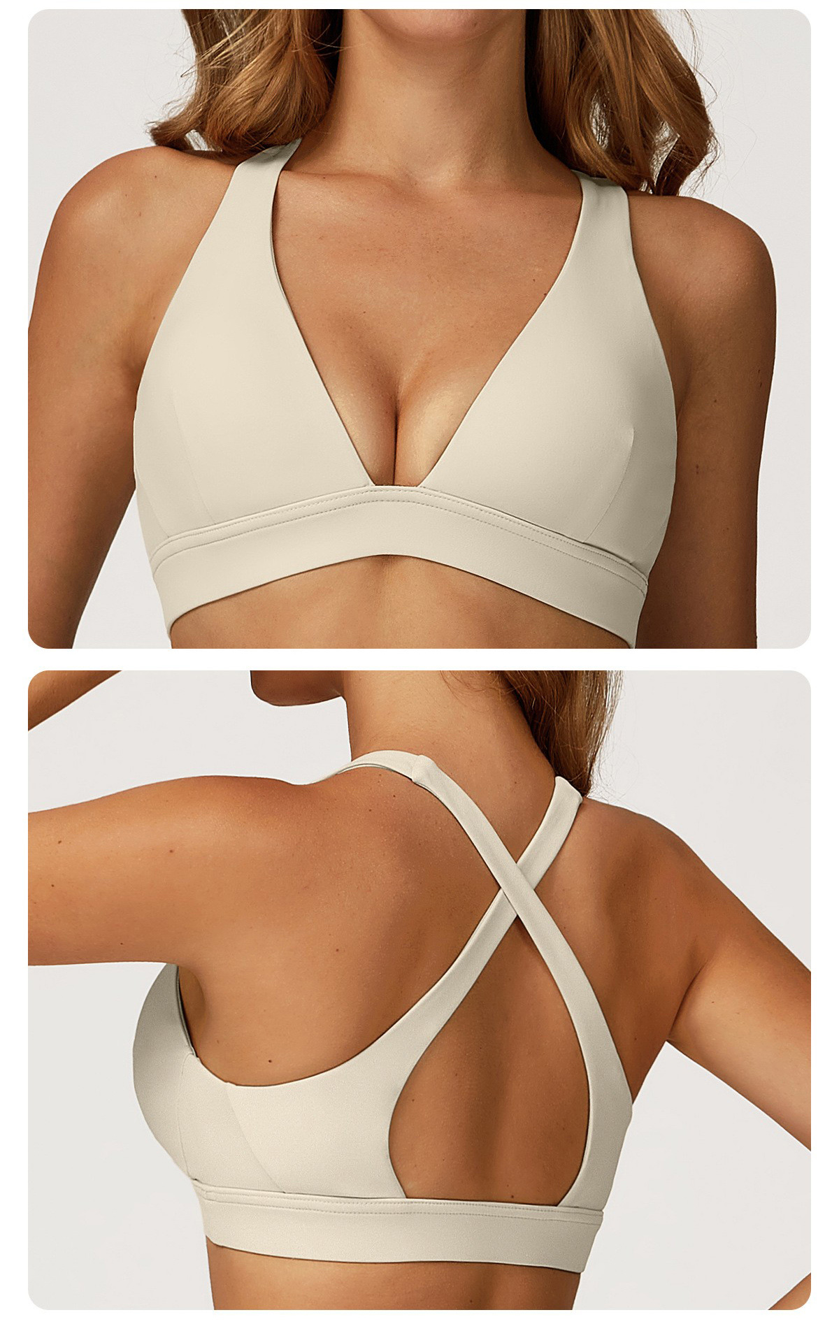 Custom V-Neck Yoga Bra – Women’s Sexy Back Push-Up High-Elastic Fitness Sports Top