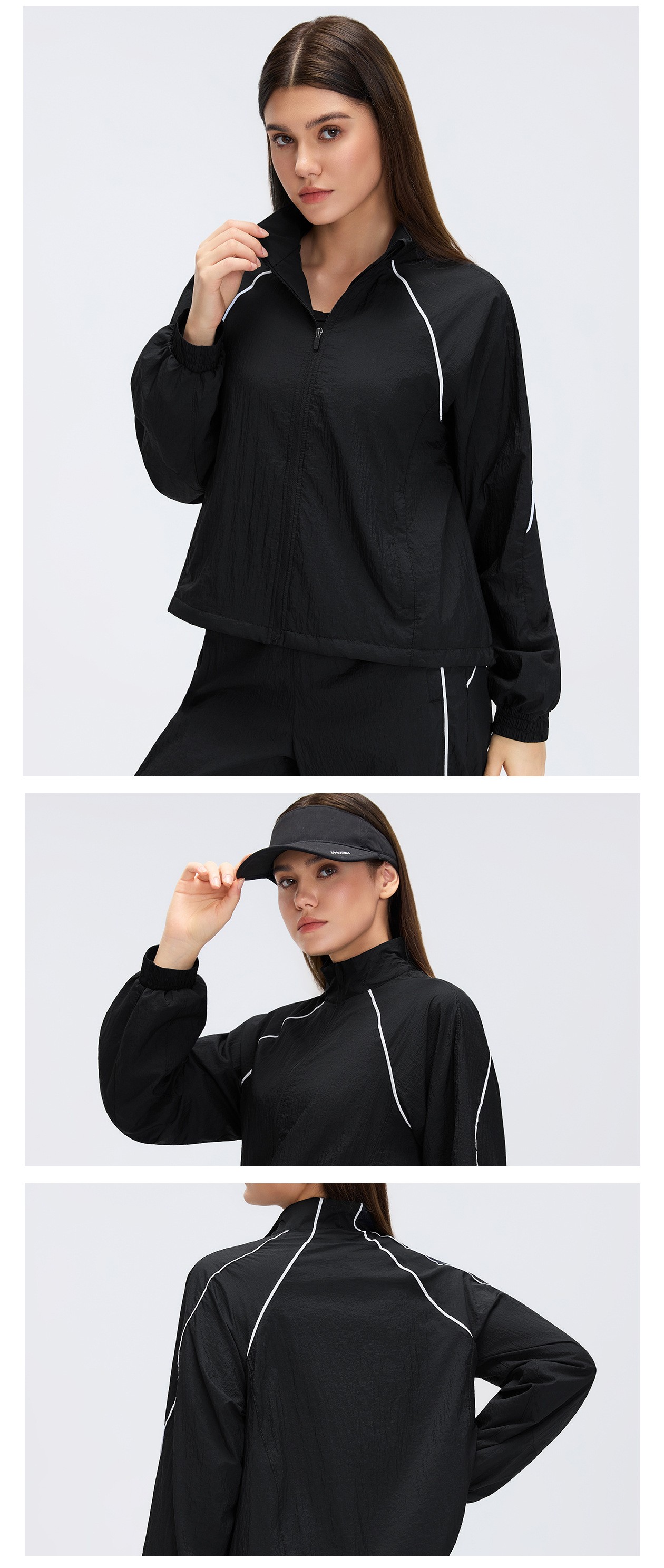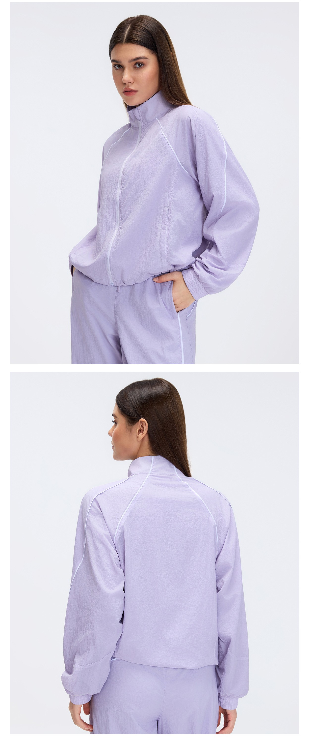 Custom Windproof Stand Collar Jacket – Women’s Loose Casual Short Outdoor Sports Trench Coat
