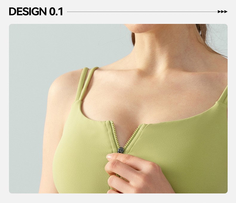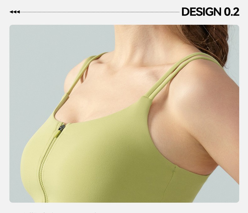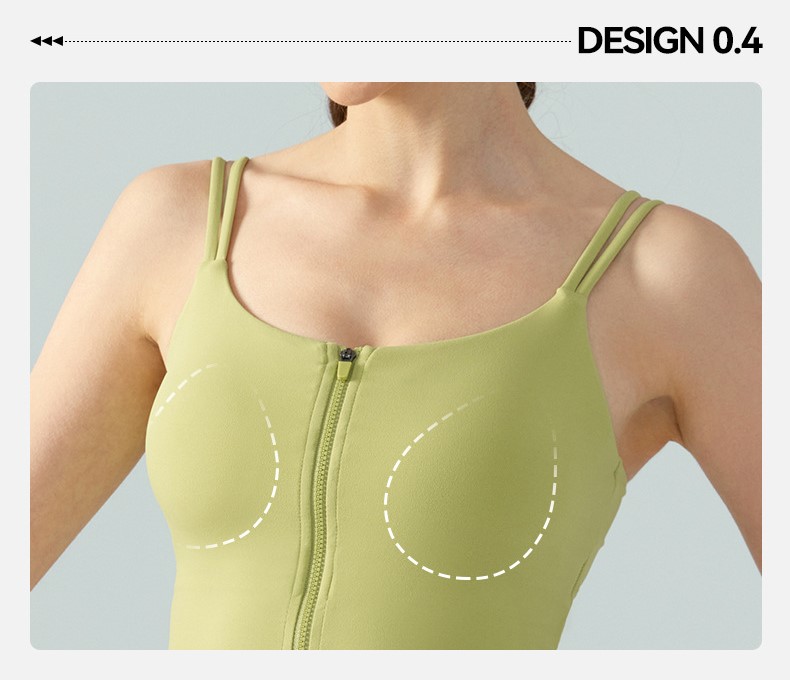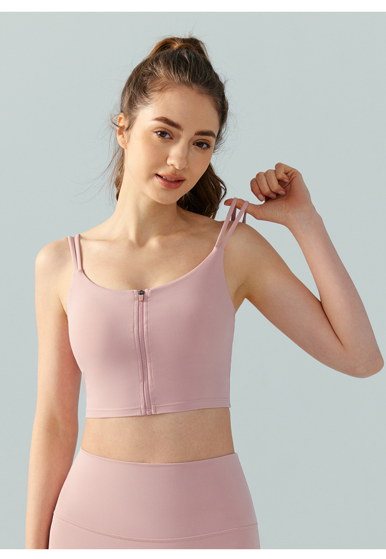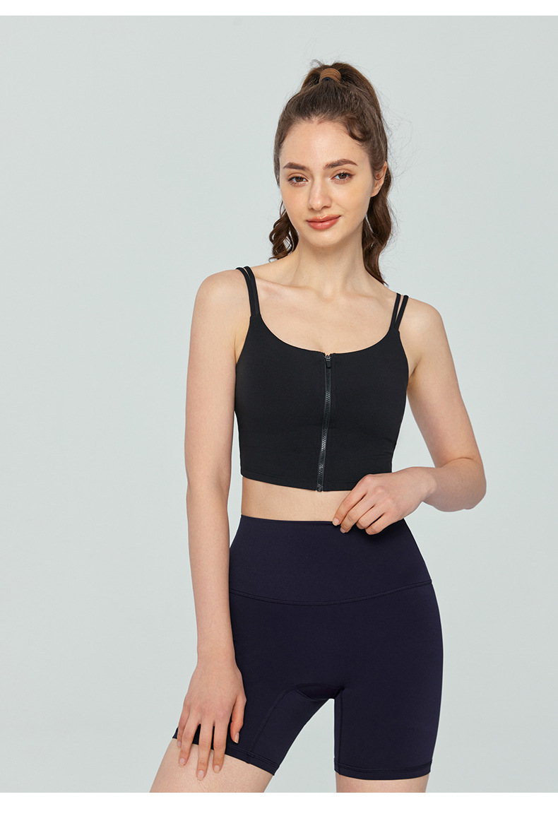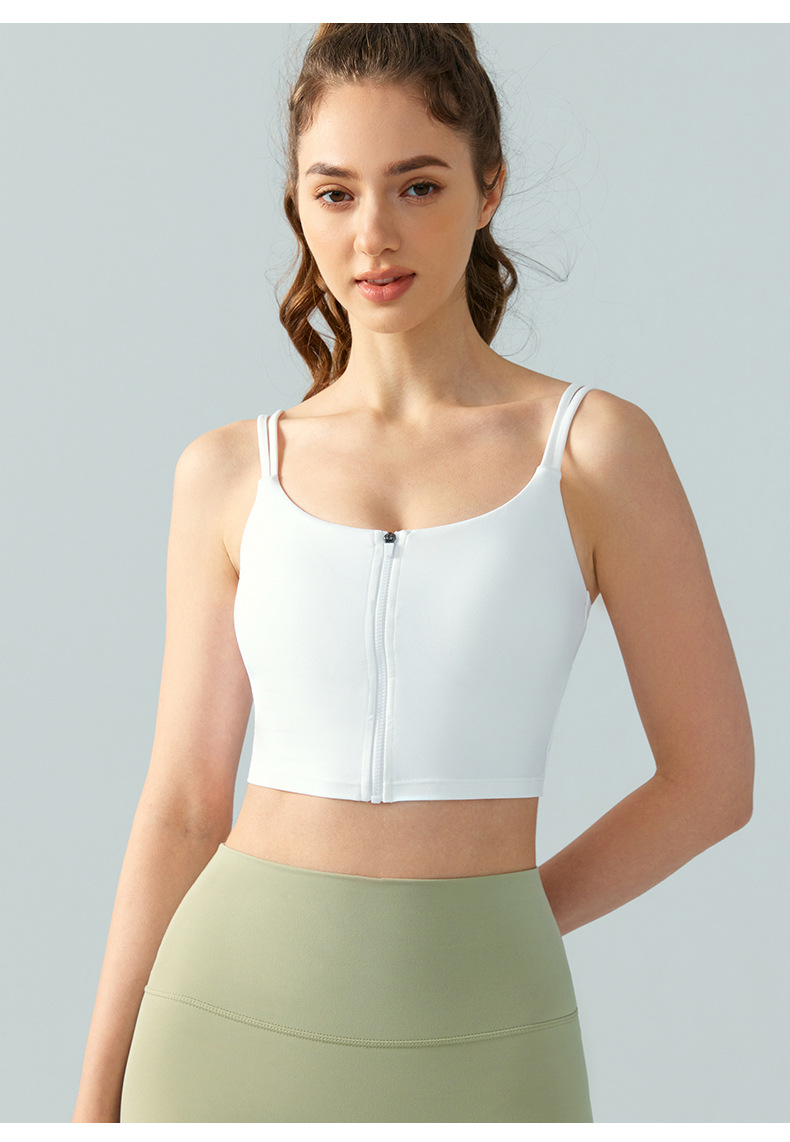 Custom women double spaghetti strap zip front crop tank top padded sports bra OEM Low MOQ