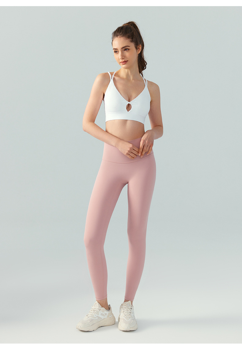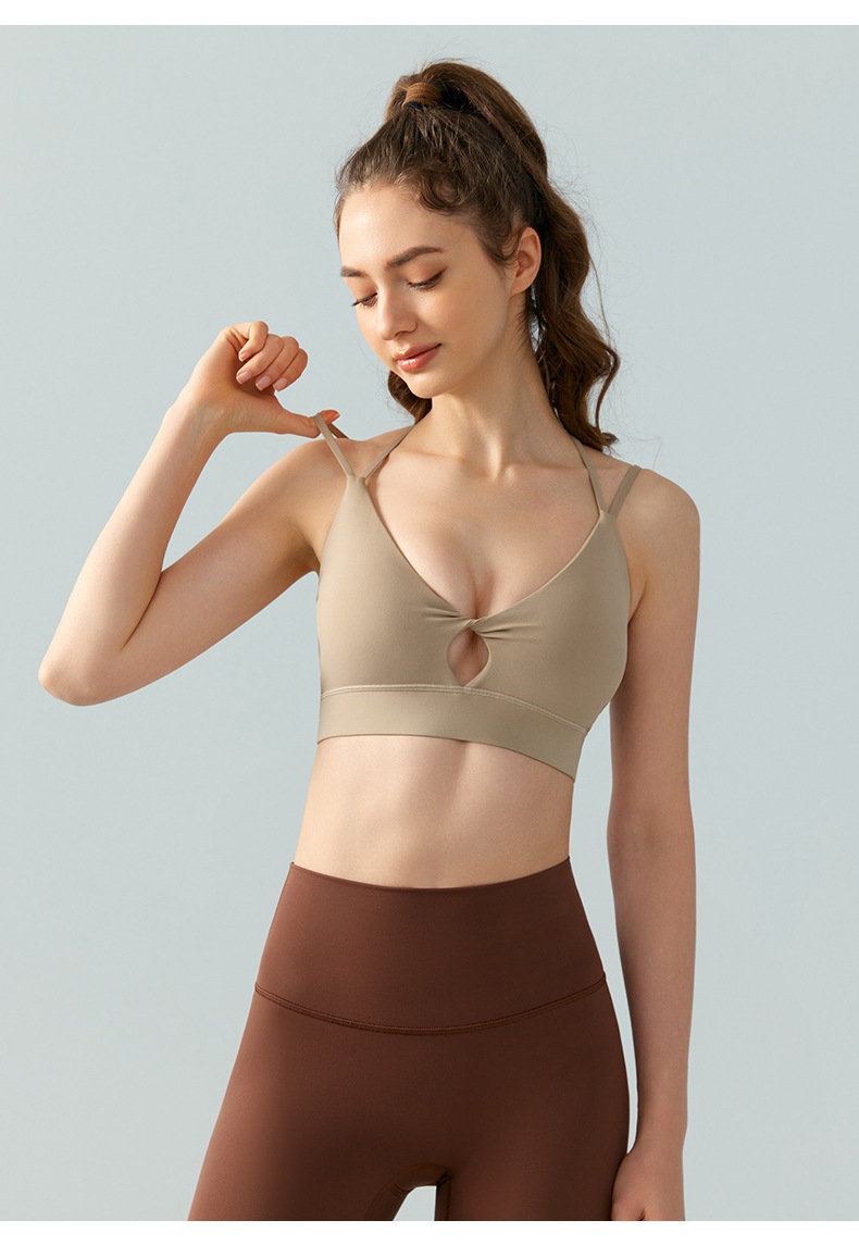 Custom women double spaghetti straps sports bra breathable hollow out padded top Low MOQ