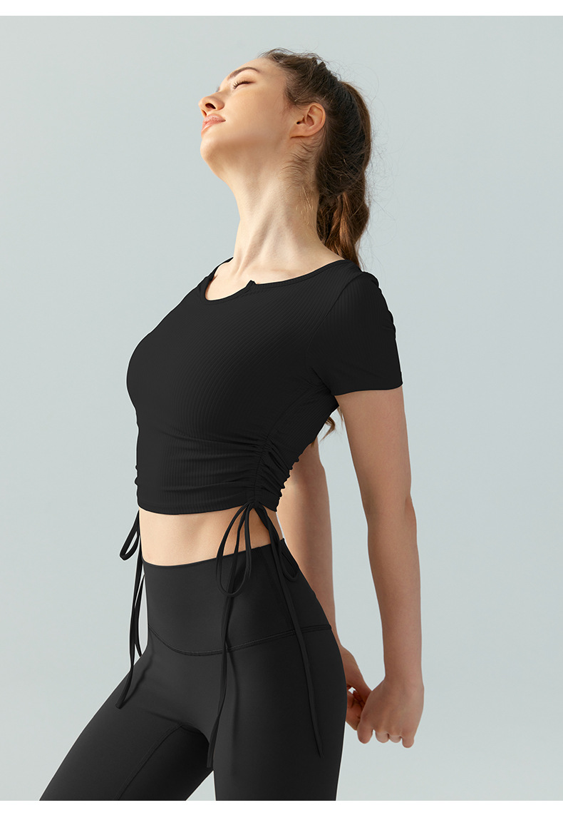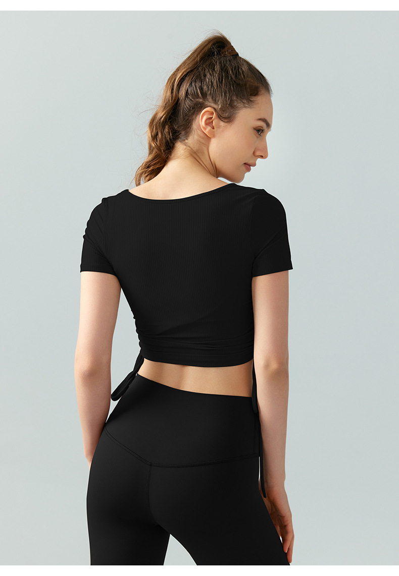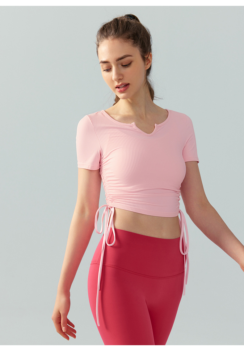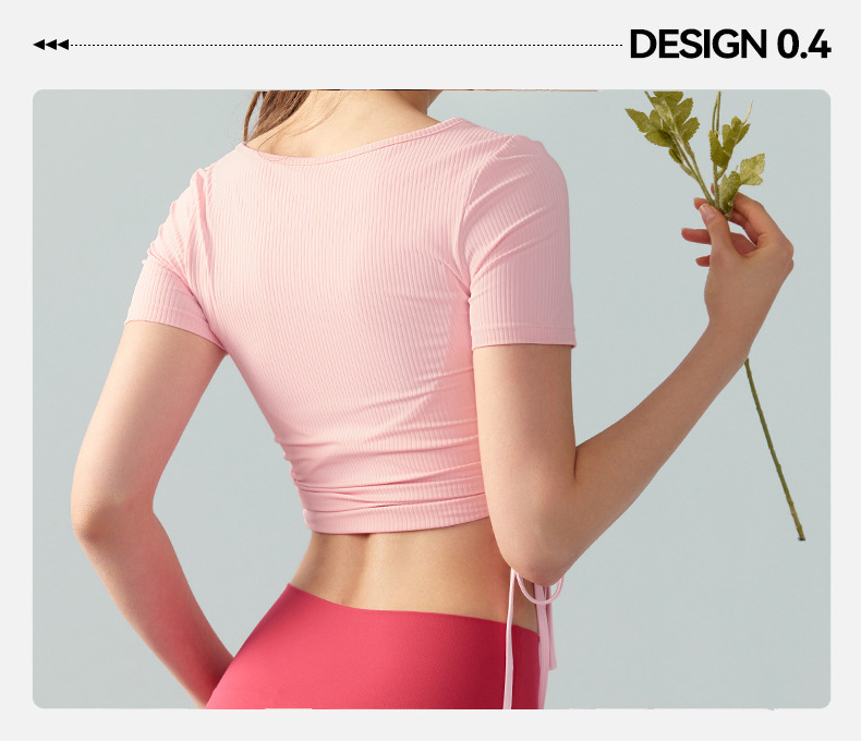 Custom women drawstring yoga top running short sleeve tshirt OEM Low MOQ Fast Delivery