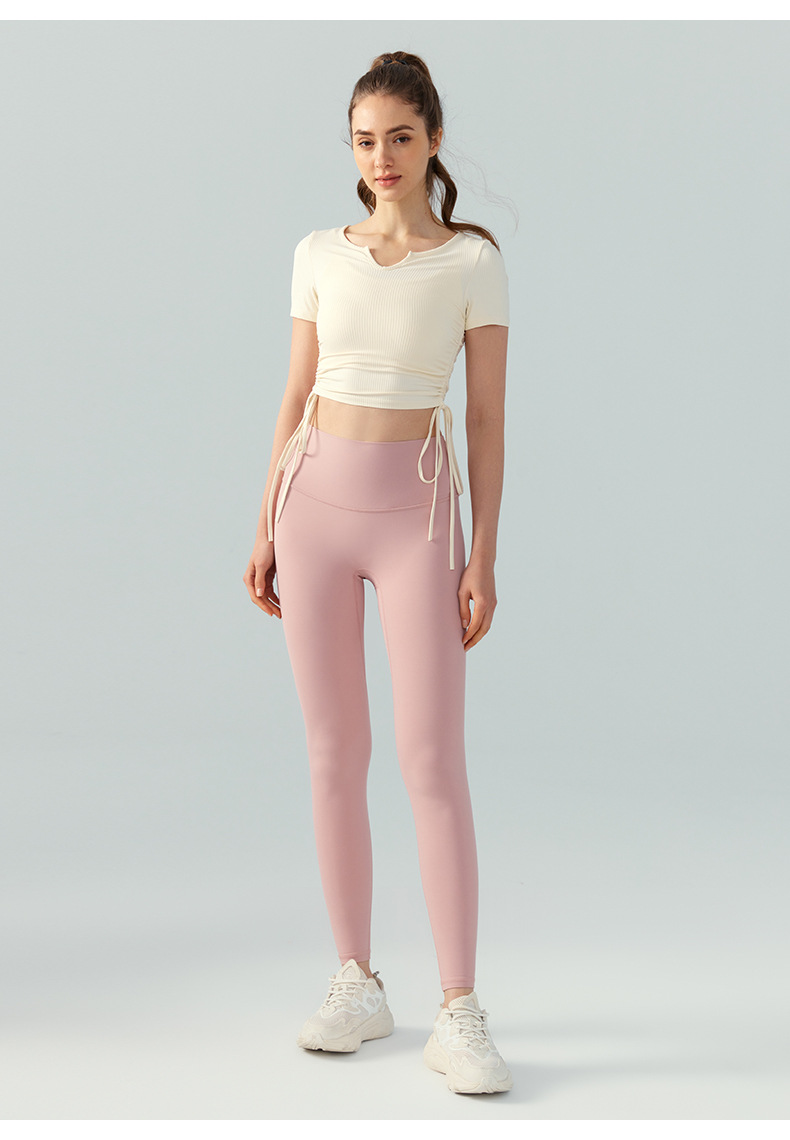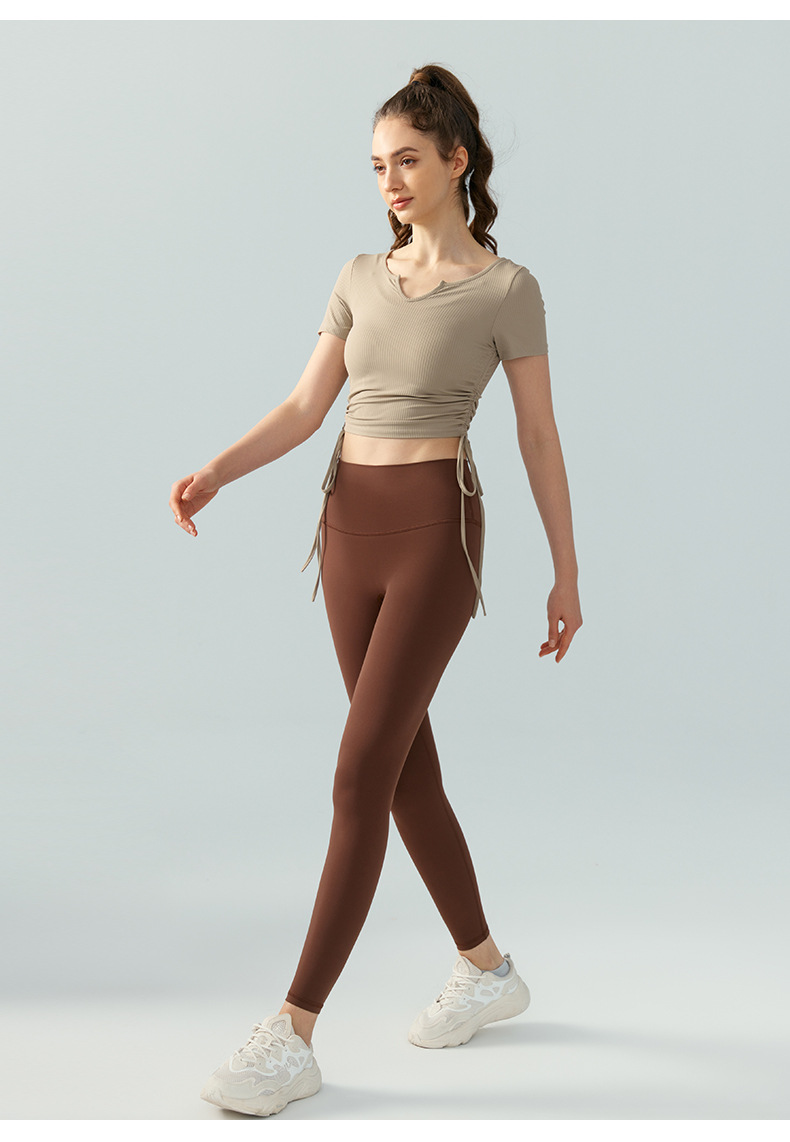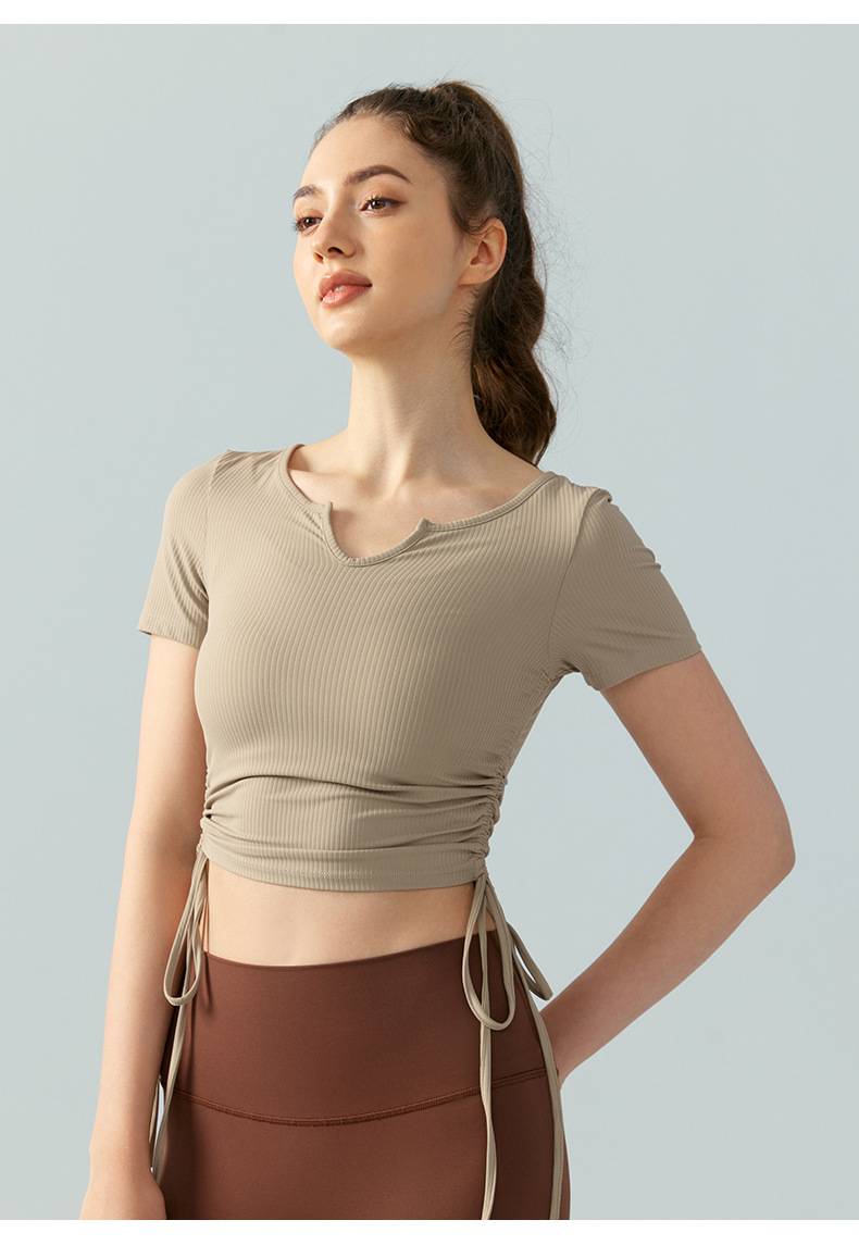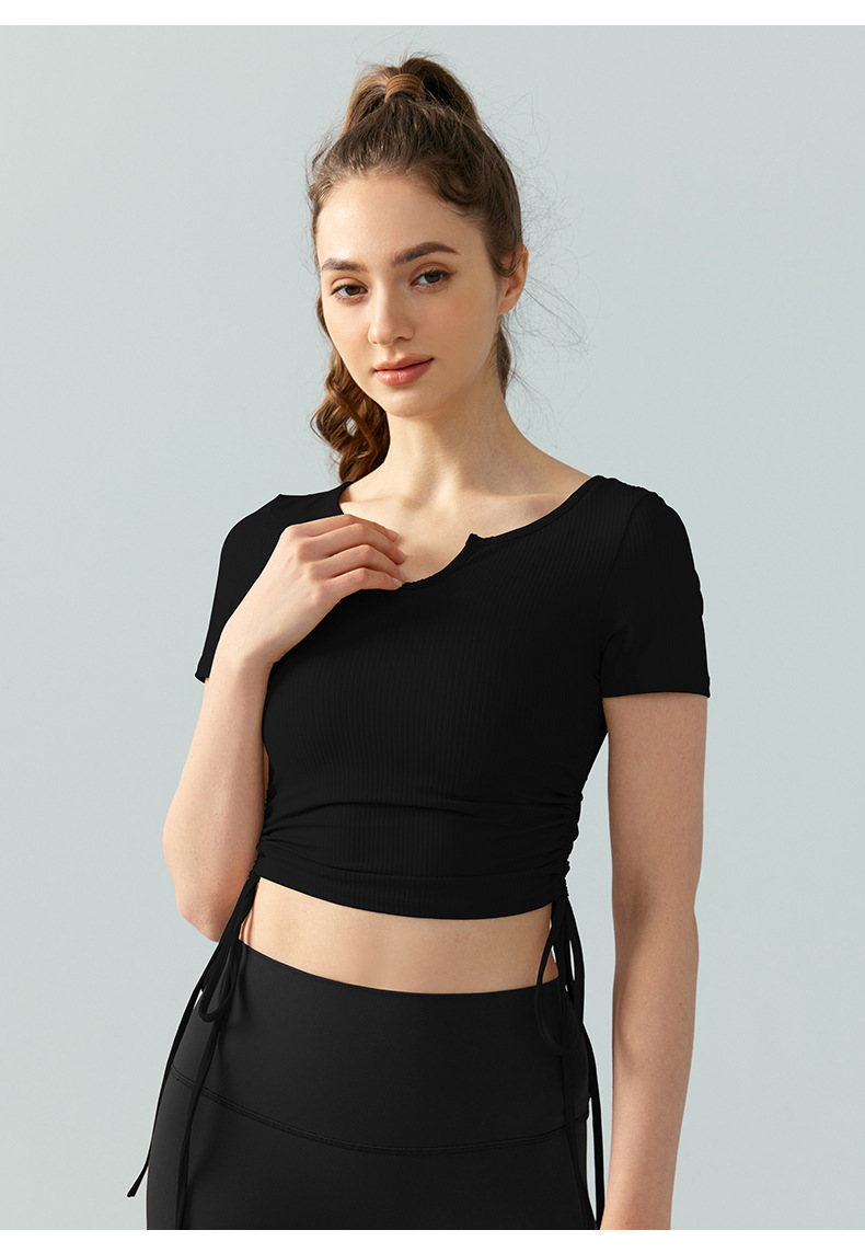 Custom women drawstring yoga top running short sleeve tshirt OEM Low MOQ Fast Delivery
