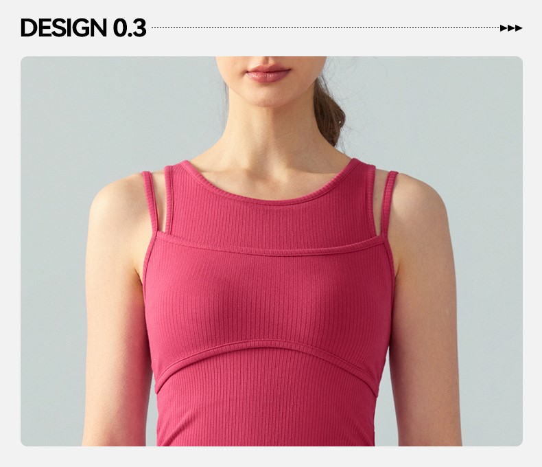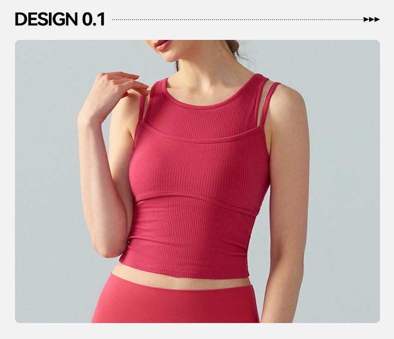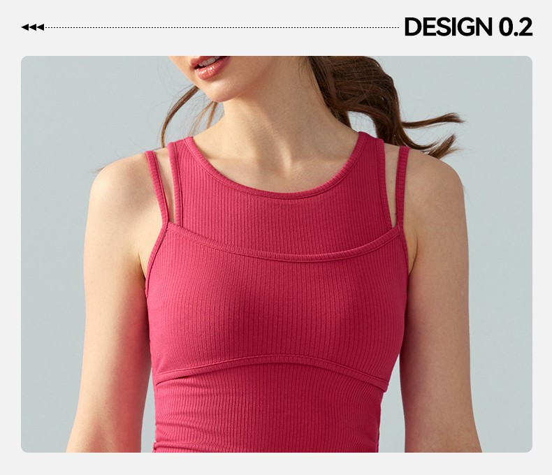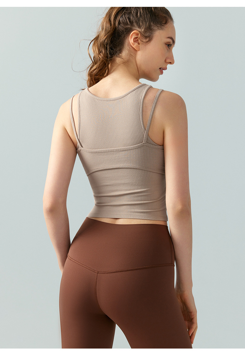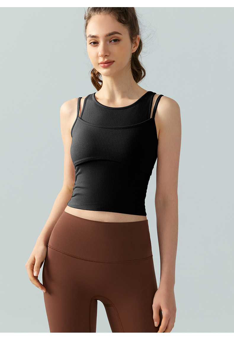 Custom women fake 2 piece tank top padded breathable running yoga top Factory Low MOQ