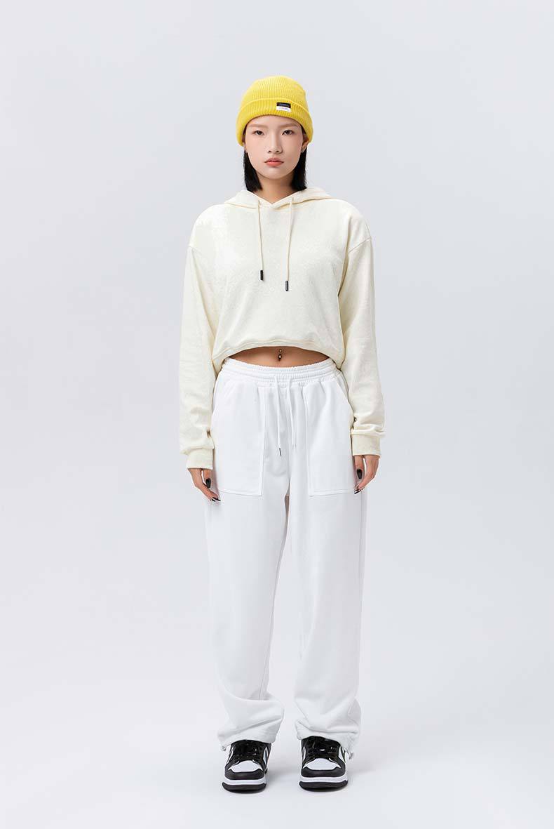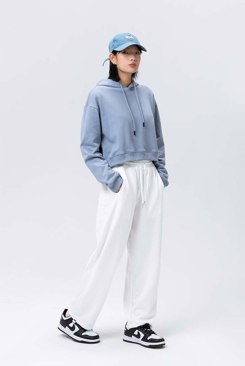 Custom women frenth terry hoodies loose quick dry long sleeve crop pullover sweatshirt OEM
