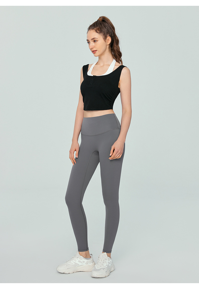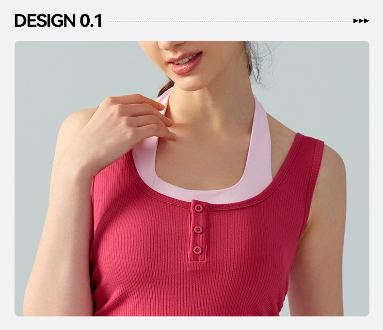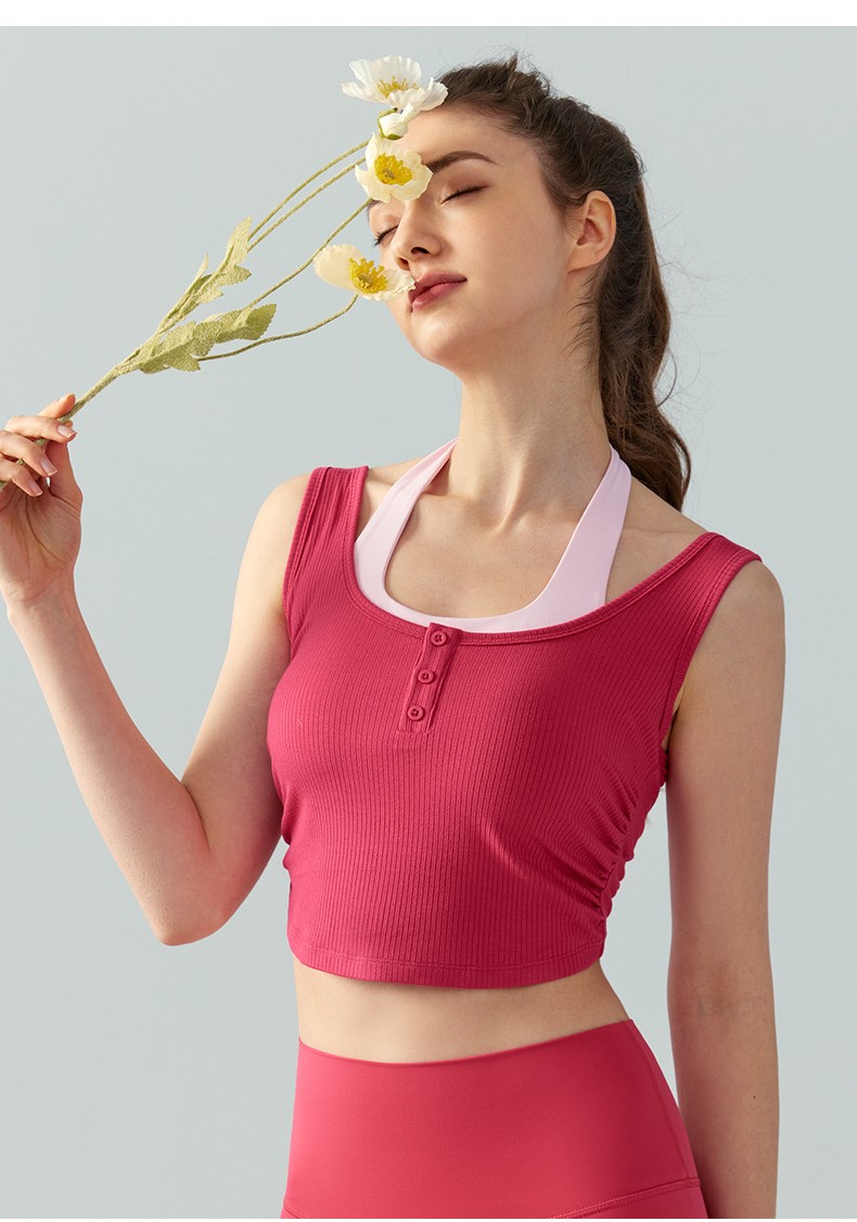 Custom women halter tank top sex U back padded fake 2 piece yoga crop top Factory Low MOQ
