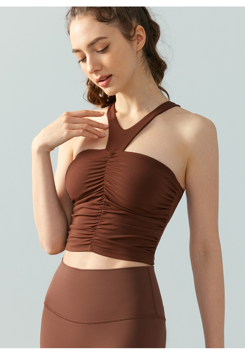Custom women halter tank top V back front pleats sleeveless padded tube top Factory Low MOQ