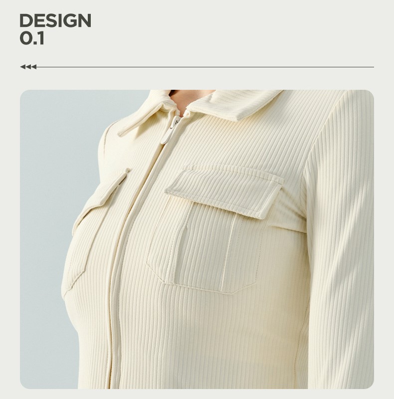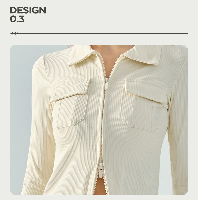 Custom women lapel double zipper ribbed jacket long sleeve fitness running coat Factory OEM