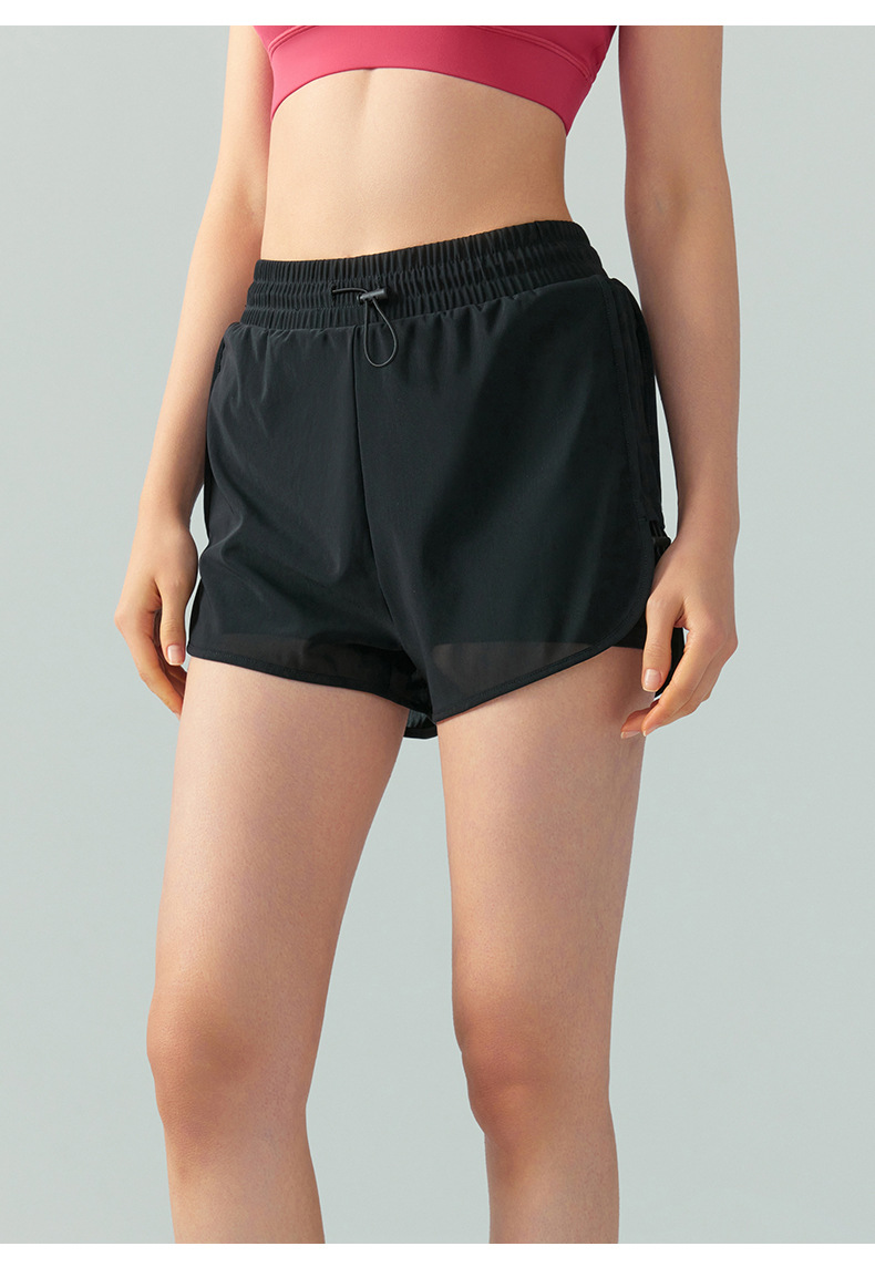 Custom women mesh fake 2 pcs drawstring sports shorts running 2 in 1 shorts OEM Low MOQ