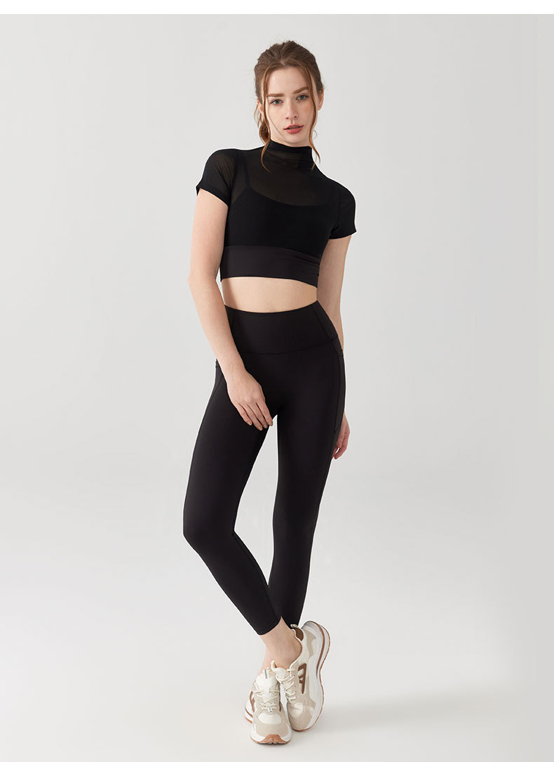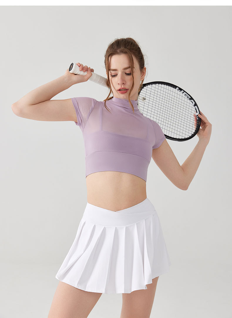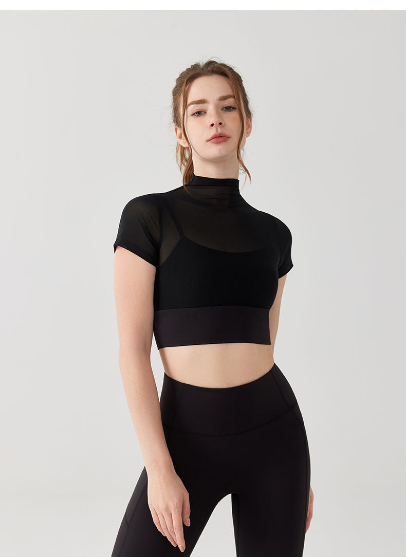 Custom women mesh short sleeve crop tshirt padded quick dry yoga fitness top OEM Low MOQ