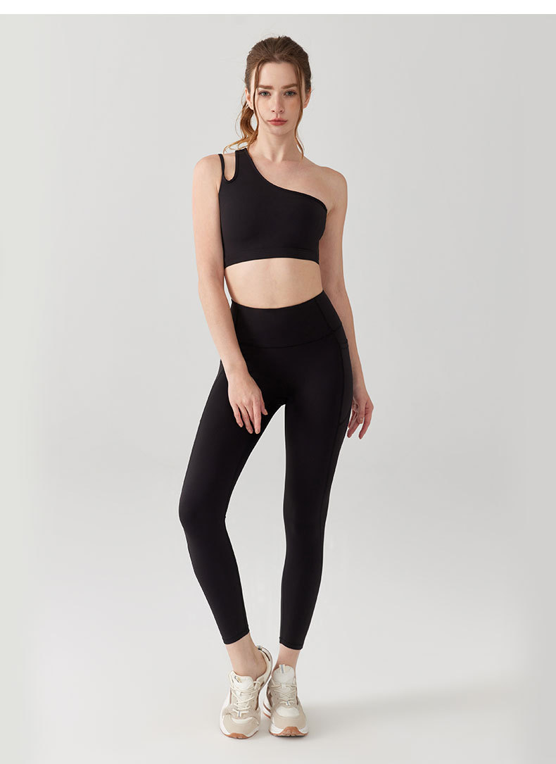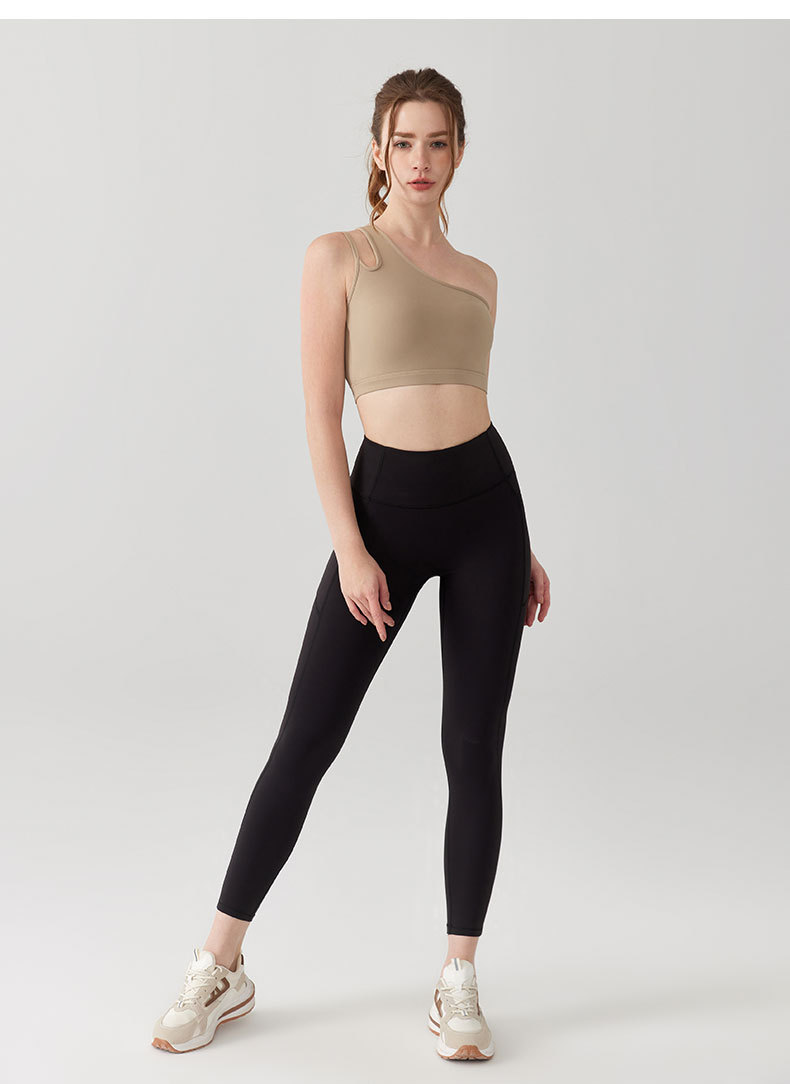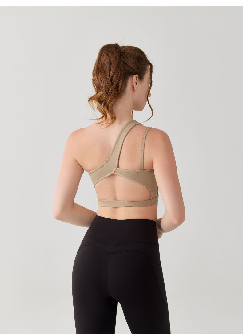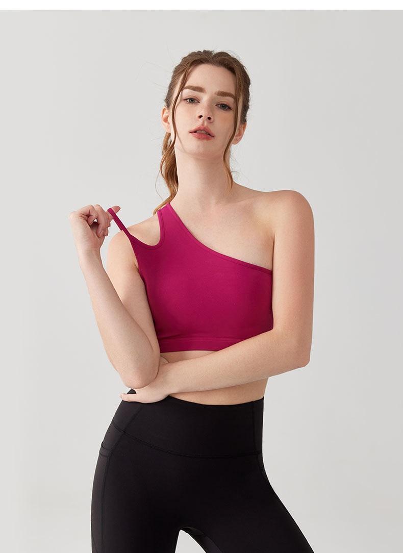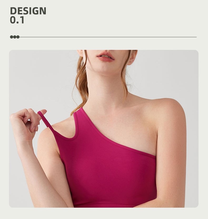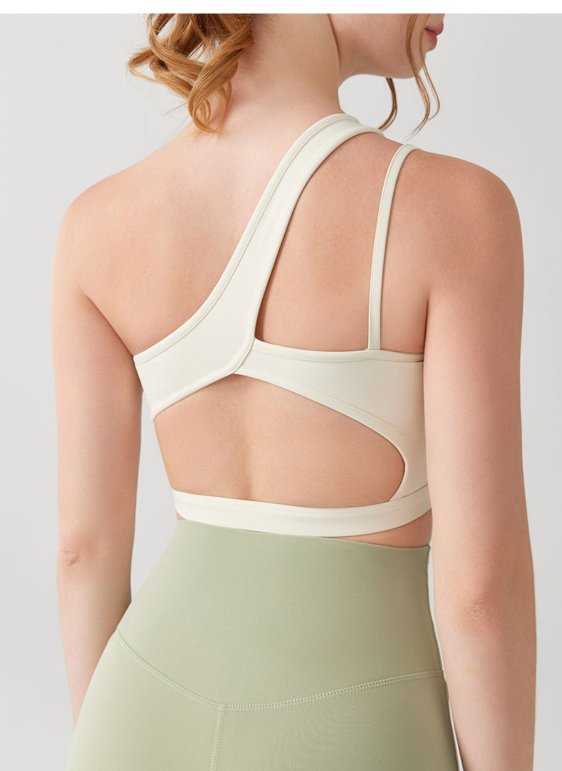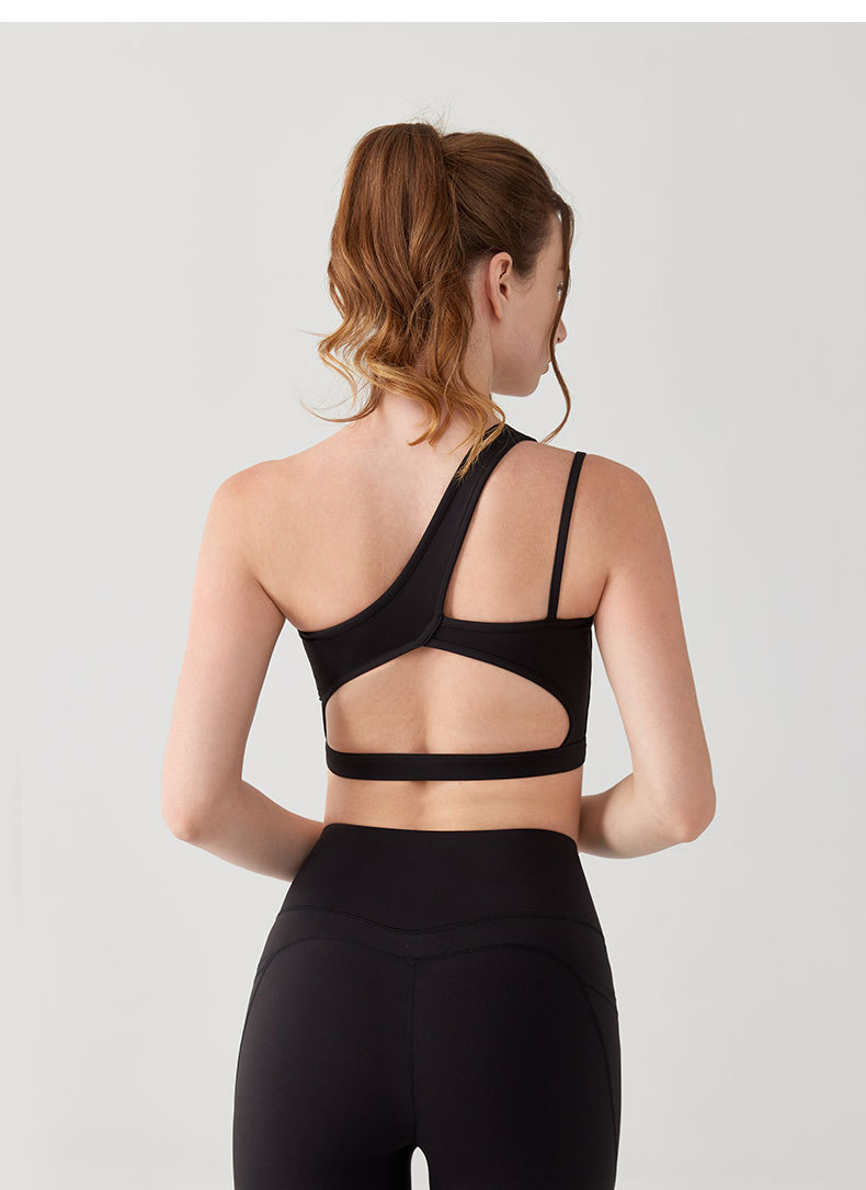 Custom women one shoulder sports bra hollow out Irregular strap running top OEM Low MOQ