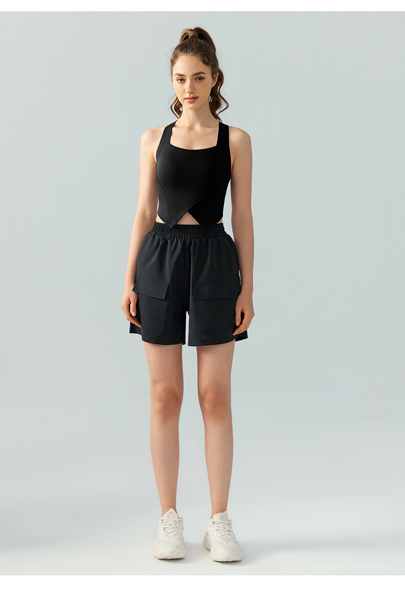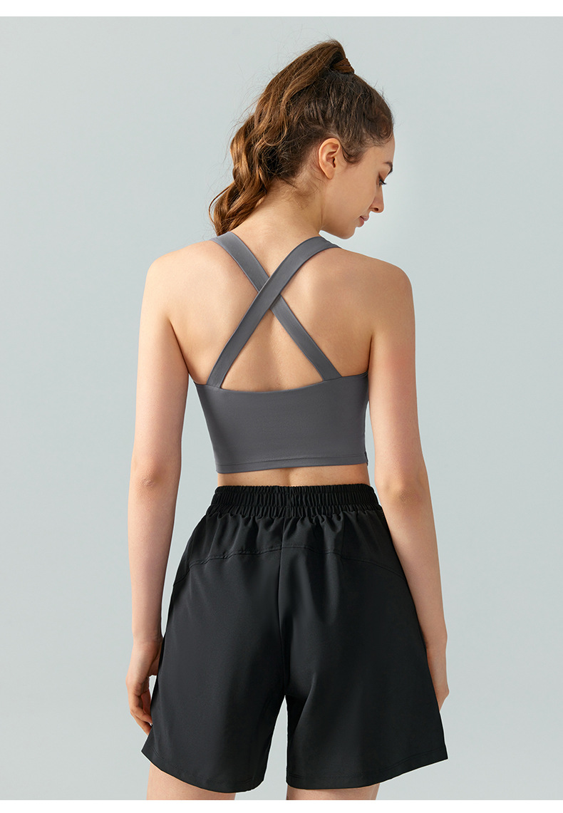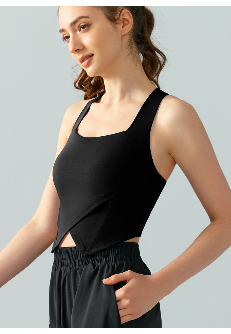 Custom women padded tank top cross back Irregular hem fitness yoga top Factory Low MOQ